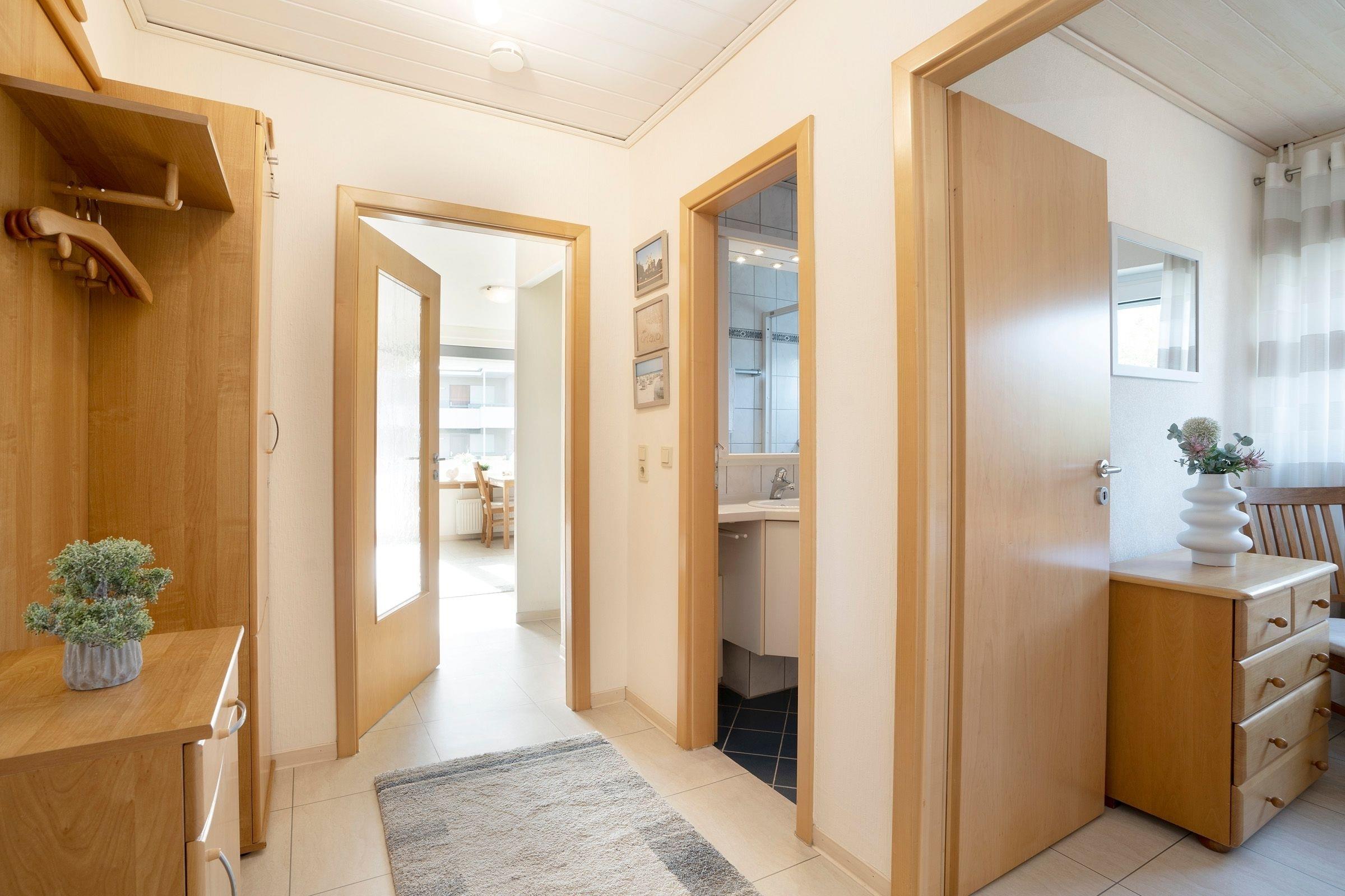 Diese helle und freundlich eingerichtete Wohnung mit ca. 51 m² liegt in der 1. Etage und bietet bequem Platz für 4 Personen. Sie ist geräumig und großzügig geschnitten .