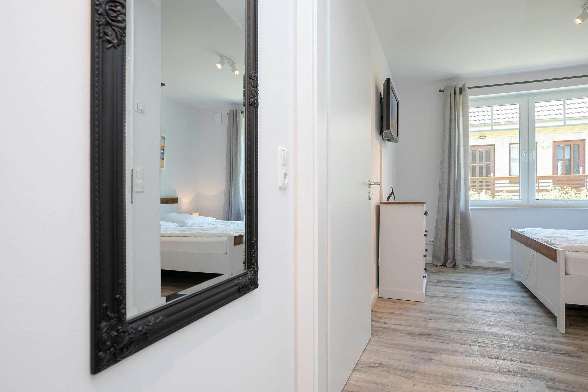 Treten Sie ein in diese schöne und helle ca. 63 m² große Erdgeschoss-Wohnung. Ausgelegt für 2 Personen haben Sie im Schlafzimmer ein großes, rückenfreundliches Doppelbett (2x 90x200 cm) und elektrische Außenrollos, die für geruhsame Nächte sorgen.