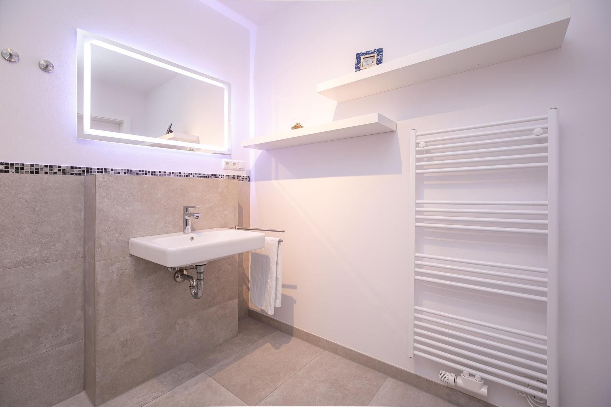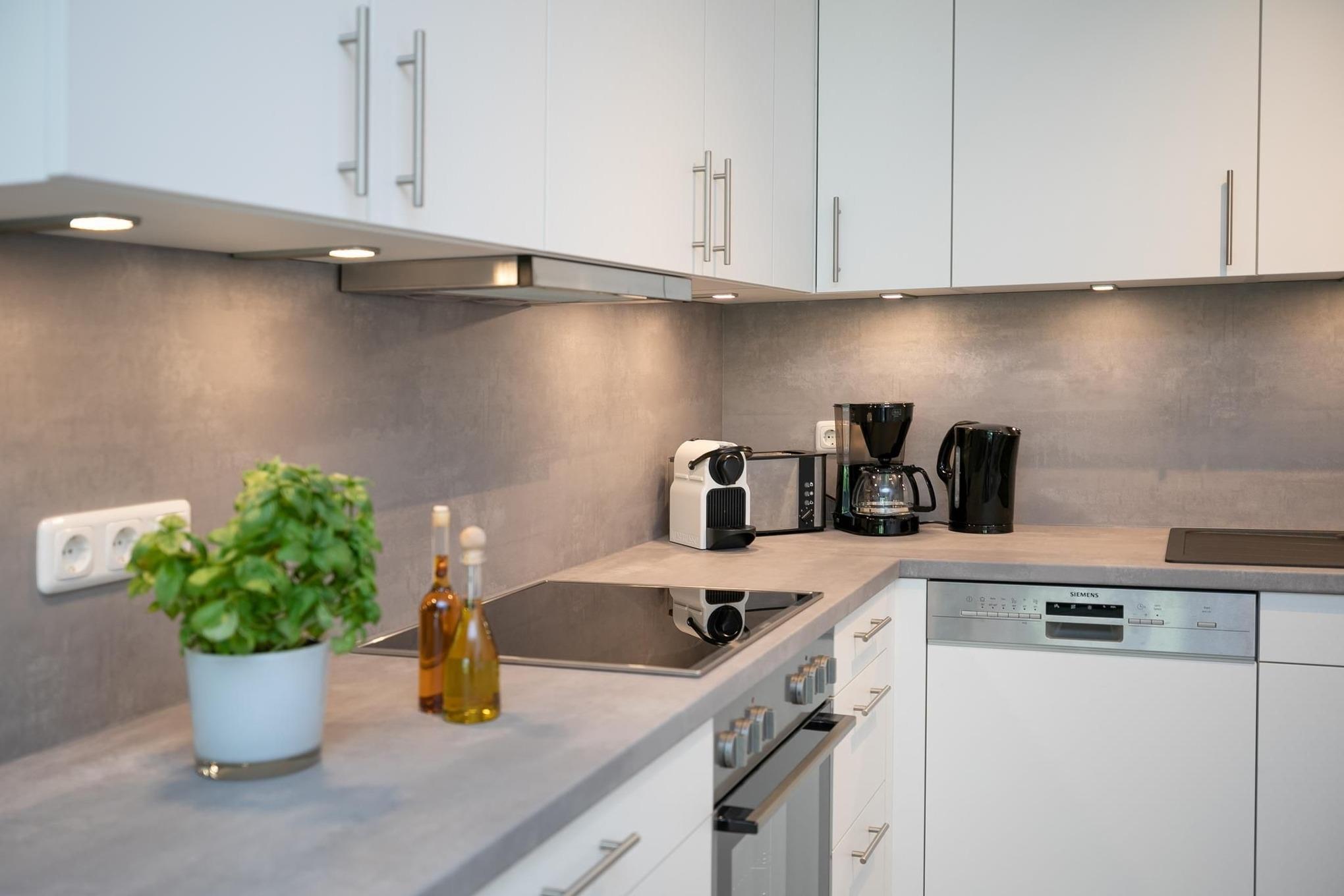 Über das Wohnzimmer gelangen Sie auf die möblierte Terrasse. Hier steht Wohlfühlen im Mittelpunkt... ein ausgiebiges Frühstück oder ein gemütlicher Abend mit Wein und Käse, lassen Sie den Alltag vergessen. Im offen gestalteten Wohnraum fügt sich die moderne Küche optimal ein. Ausgestattet mit Backofen, Herd, Kühl – und Gefrierschrank, Spülmaschine und Nespresso Kaffee-Kapselmaschine lassen sich hier zahlreiche Gerichte zaubern. Das Badezimmer überzeugt mit Fußbodenheizung, beheizbarem Handtuchhalter und Dusche mit bodentiefem Einstieg. Lassen Sie es sich in dieser Ferienoase gut gehen...