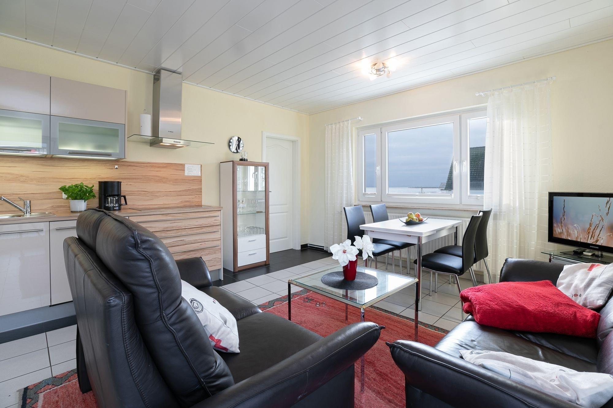 Das helle und großzügige Wohnzimmer mit offener und voll ausgestatteter Wohnküche lädt Sie ein, regionale Gerichte zuzubereiten und zu verköstigen. Von hier haben Sie Zutritt zum Balkon mit Markise und Teilmeerblick, genießen Sie ein ausgiebiges Frühstück während Ihnen die warme Ostseeluft um die Nase weht. Wie könnte ein Tag besser beginnen? Das Badezimmer mit Dusche, WC und Fenster vervollständigt diese Ferienoase.