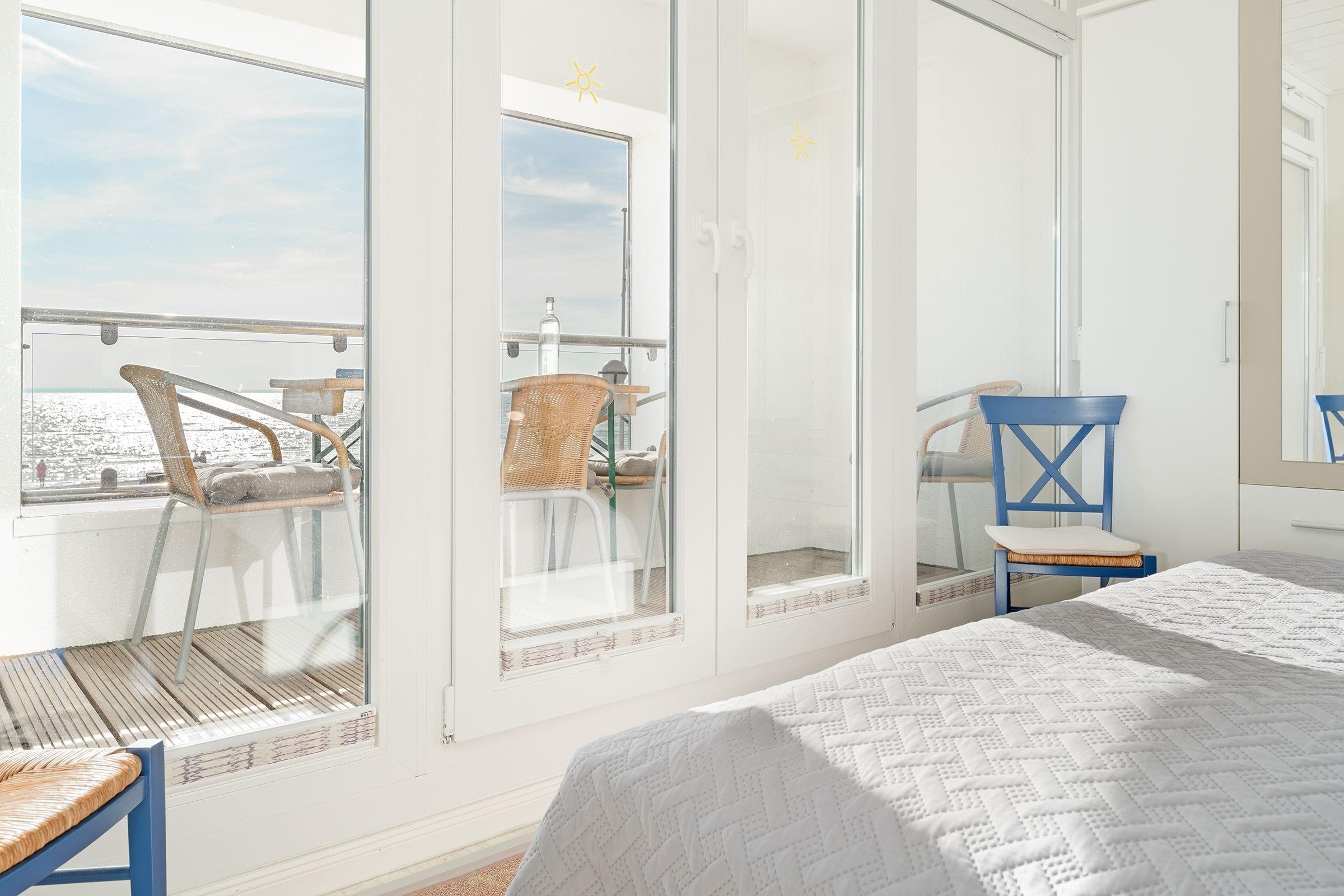 Vom Flur gelangen Sie in alle Räume. Zu Ihrer Linken liegen das Badezimmer mit Dusche und extra großem Waschbecken, die helle und voll ausgestattete Küche und das erste Schlafzimmer mit Doppelbett (2x 90x200 cm). Zu Ihrer Rechten befinden sich zuerst das Kinderzimmer mit 2 Einzelbetten (je 90x200 cm) und dahinter das Masterschlafzimmer mit Doppelbett (2x 90x200 cm). Von hier haben Sie Zutritt zum Balkon mit einmaligem Blick auf die Ostsee, spätestens hier vergessen Sie alle Sorgen. Der offen gestaltete Wohnraum ebenfalls mit traumhafter Aussicht auf die Promenade und den Strand, lädt mit einer warmen Atmosphäre zum Erholen uns Wohlfühlen ein.