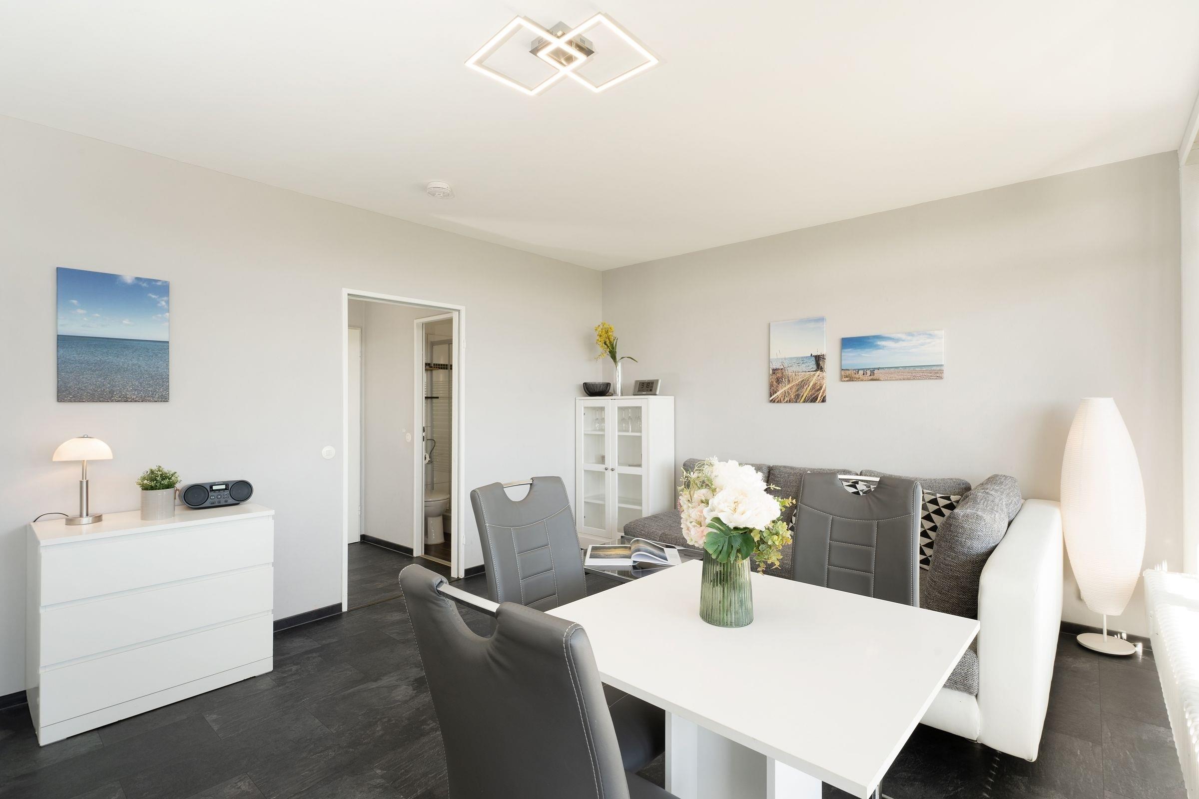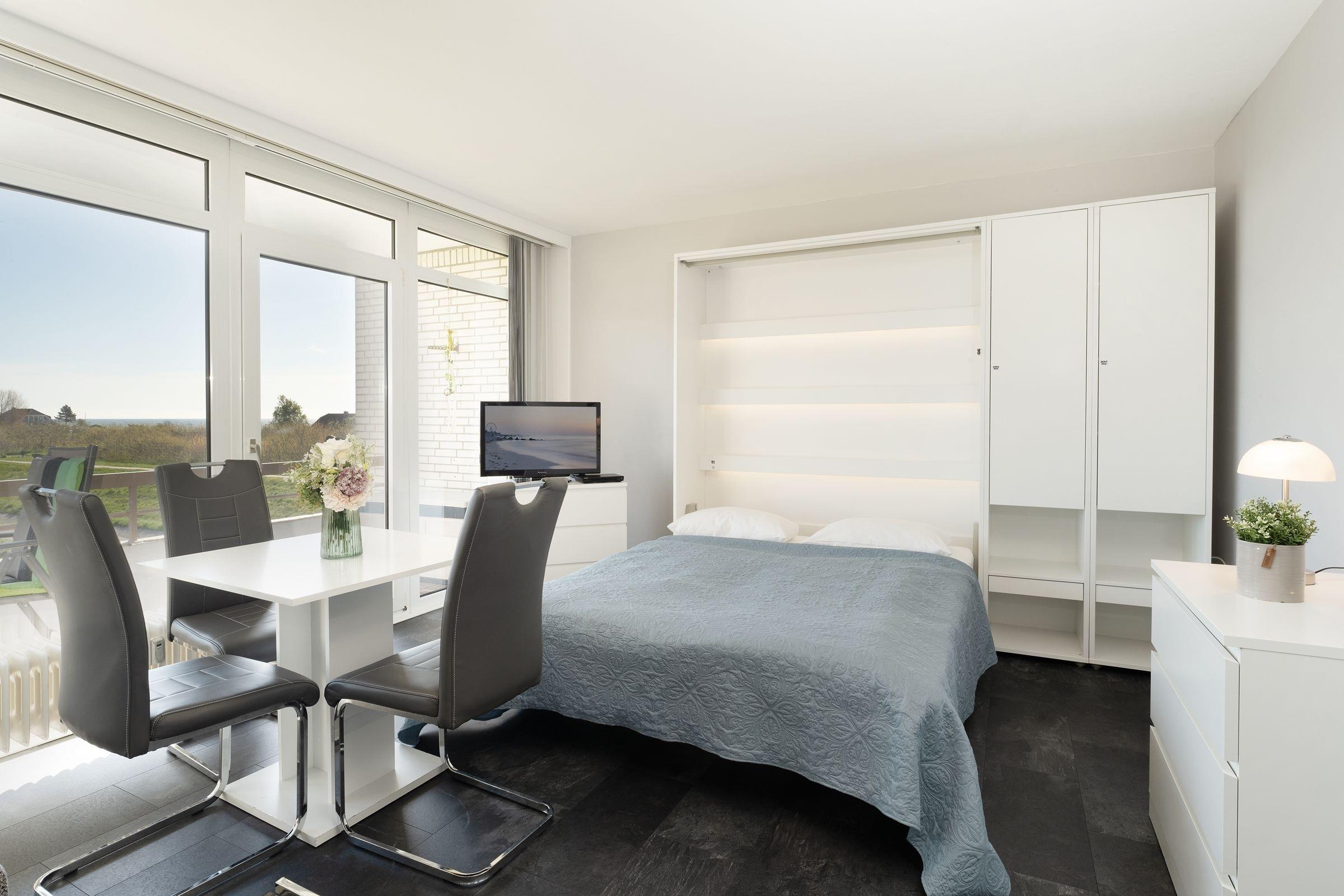 Die 1-Zimmer-Ferienwohnung mit einer Wohnfläche von ca. 33 m² und Balkon bietet Platz für max. 2 Erwachsene und 1 Kind. Meerblick - das ist wohl das Highlight dieser kleinen, aber feinen Ferienwohnung in Grömitz.