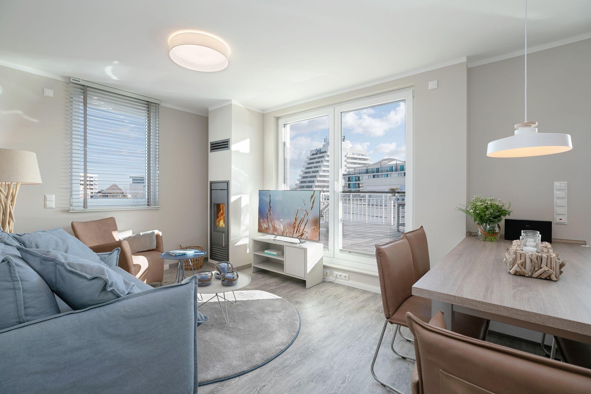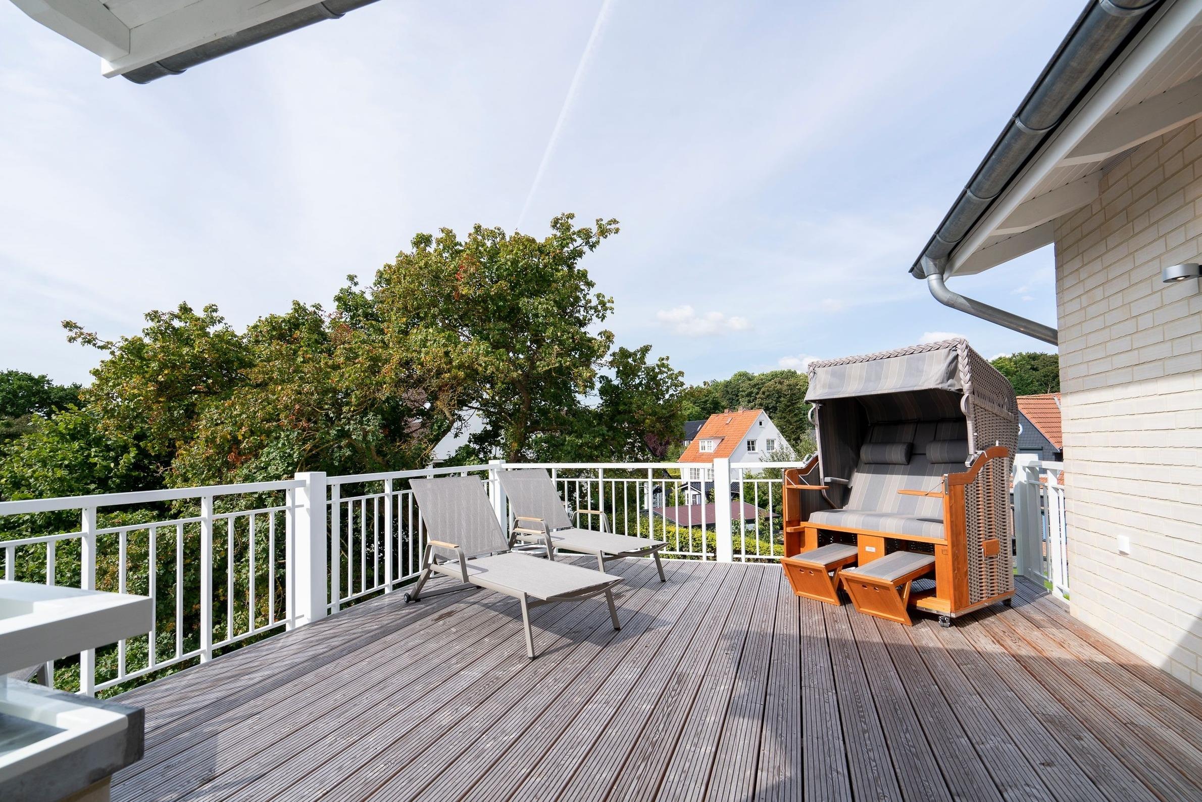 Verbringen Sie die schönste Zeit des Jahres in diesem luxuriösen Penthouse am Kurpark. Die 3-Zimmer-Wohnung verfügt über ca. 57 m² Wohnfläche, eine eindrucksvolle 60 m² große Dachterrasse mit Strandkorb und ist für bis zu 5 Personen geeignet.