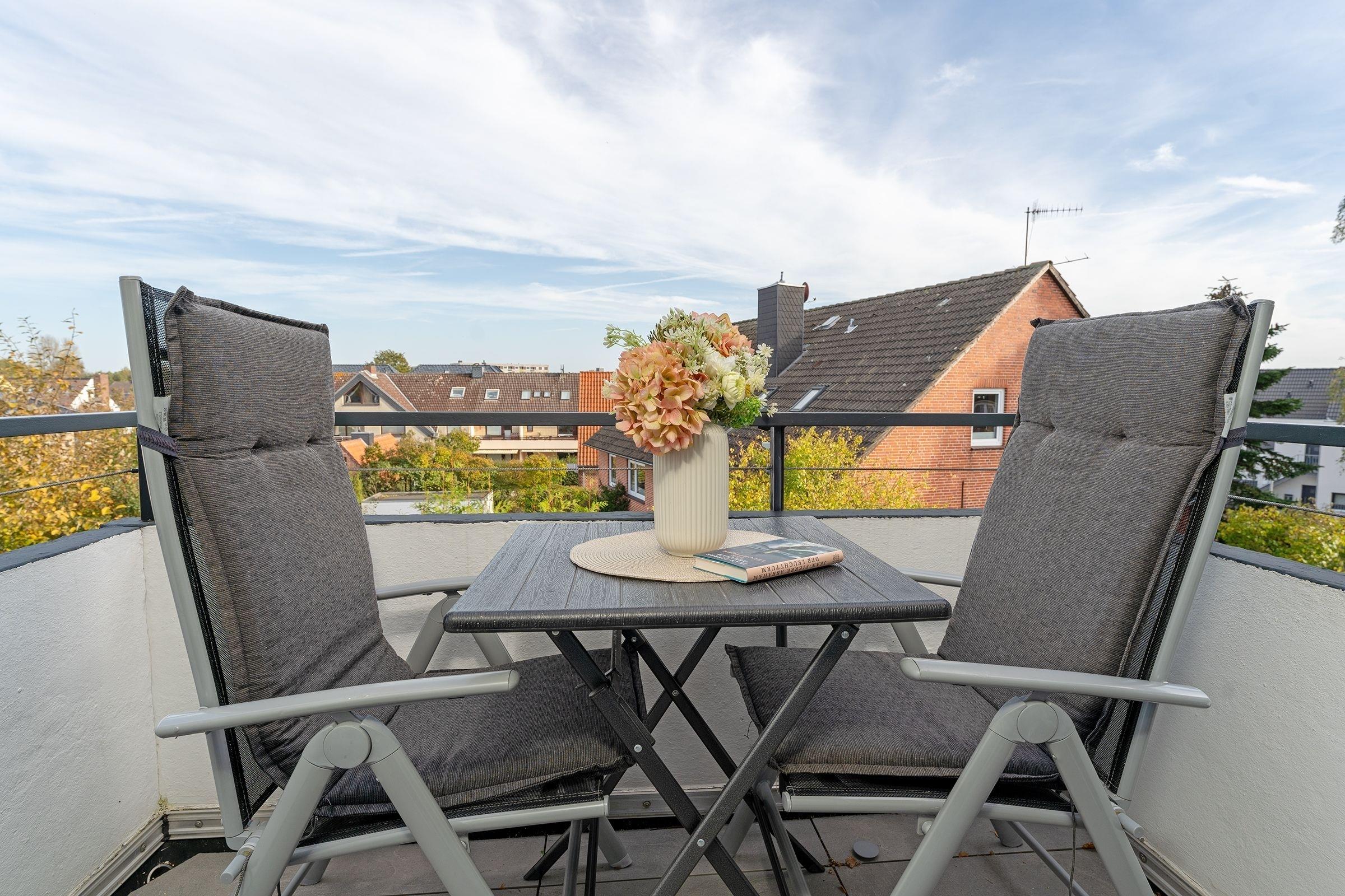 Gemütliche Ferienwohnung mit Balkon und Strandkorb in Grömitz, nur wenige Schritte zum Ostseestrand und Promenade.