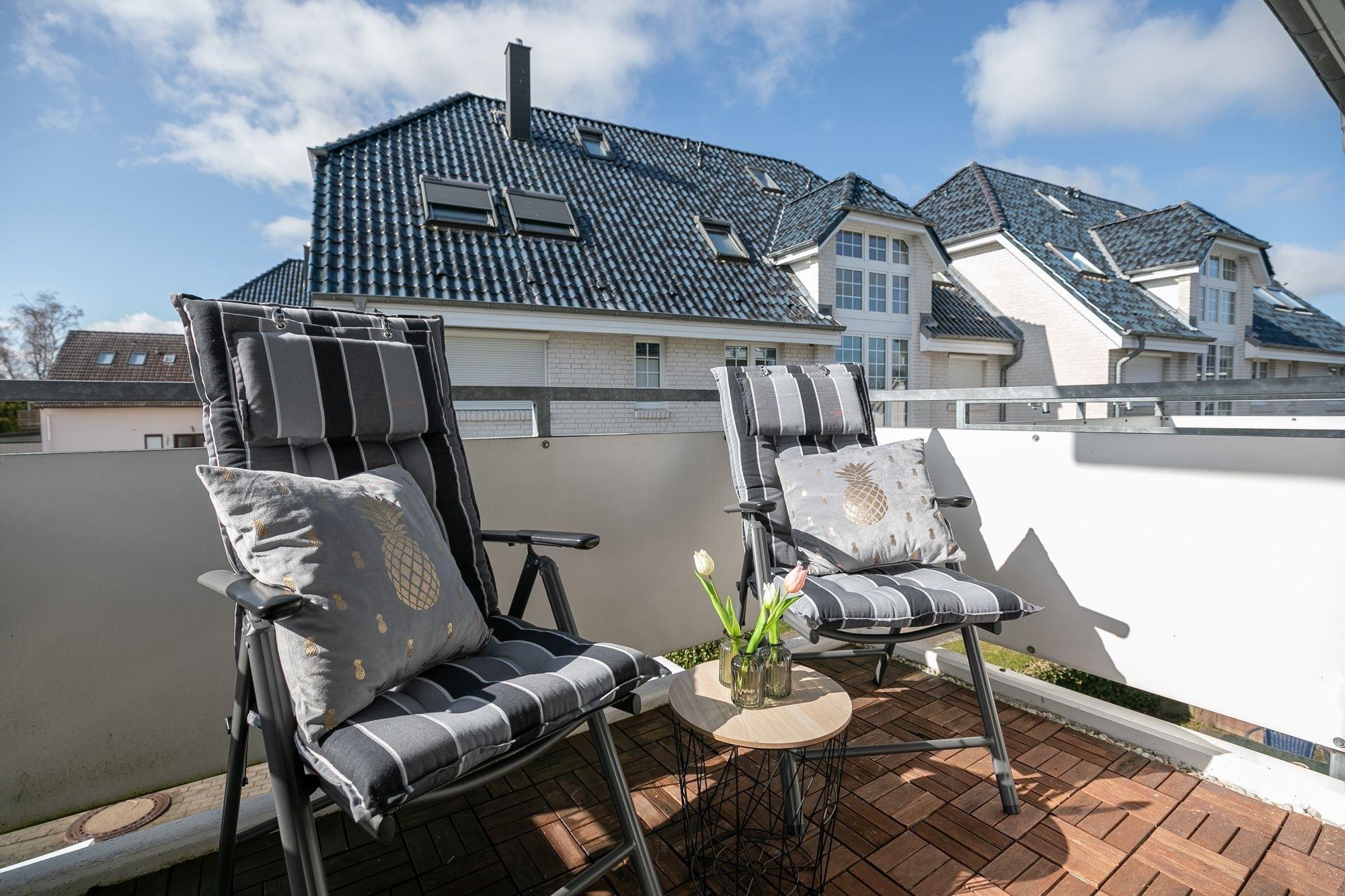 Moderne Ferienwohnung mit Balkon und Strandkorb