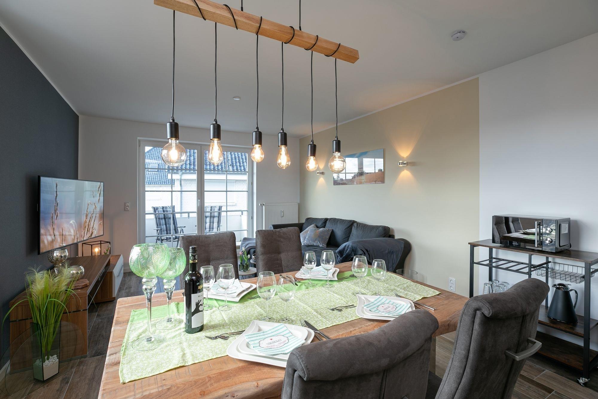 Herzlich willkommen in dieser geschmackvoll eingerichteten Ferienwohnung, welche auf ca. 58 m² Platz für max. 4 Erwachsene bietet. Es erwartet Sie ein hell und modern eingerichteter Wohn- und Essbereich mit offener Küche sowie 2 separate Schlafzimmer und ein Bad.