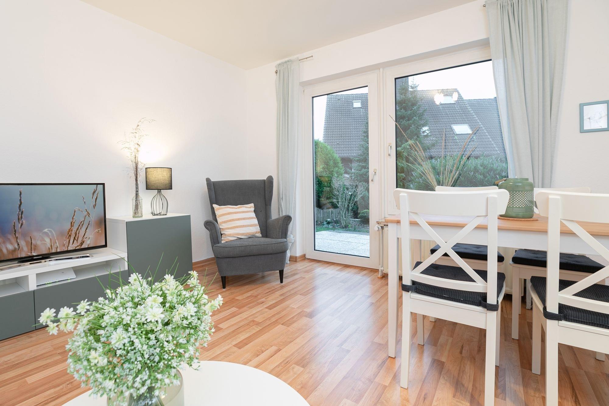 Gemütliche 3-Zimmer-Ferienwohnung in Grömitz mit Terrasse und Gartenblick, nur wenige hundert Meter vom Ostseestrand entfernt.