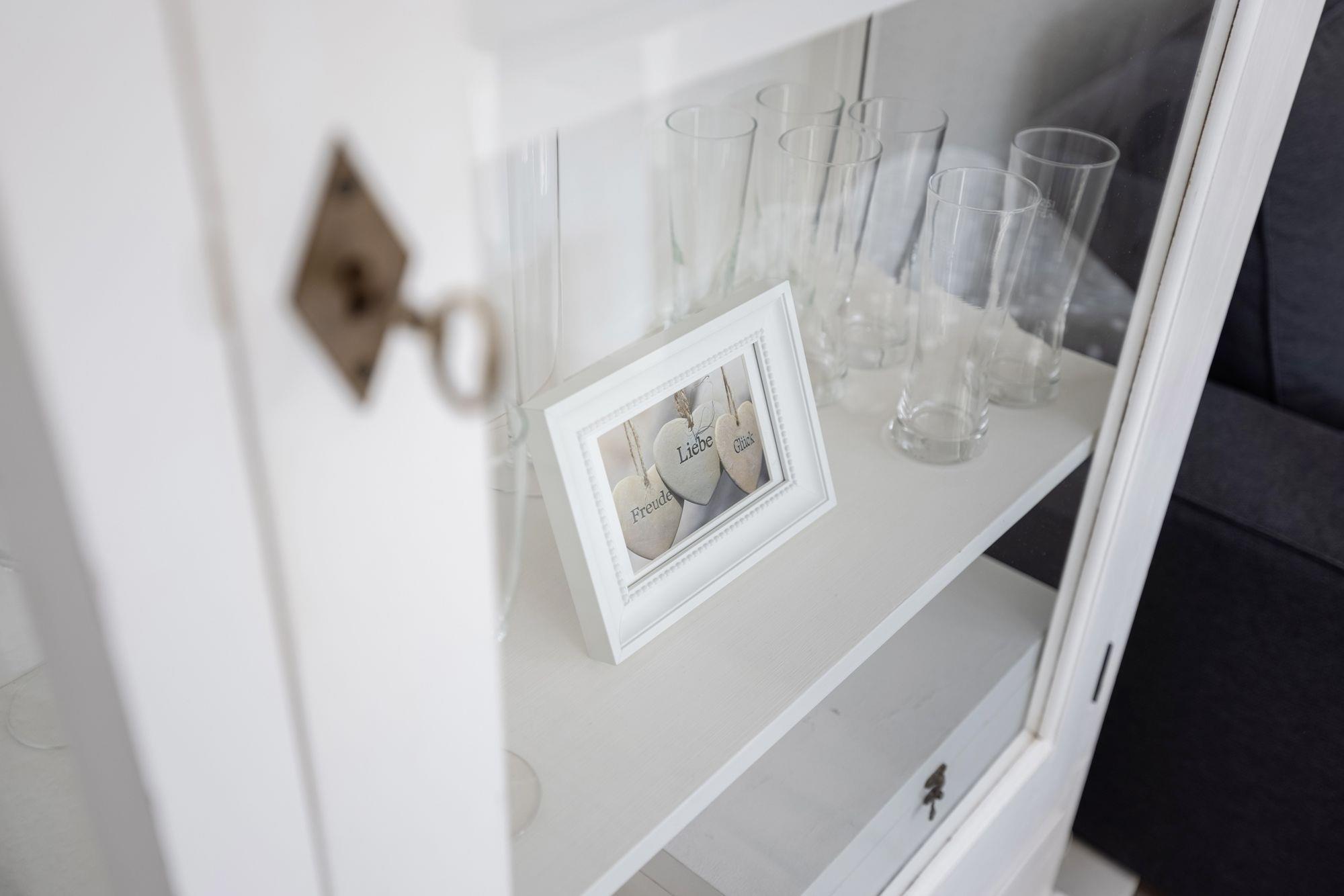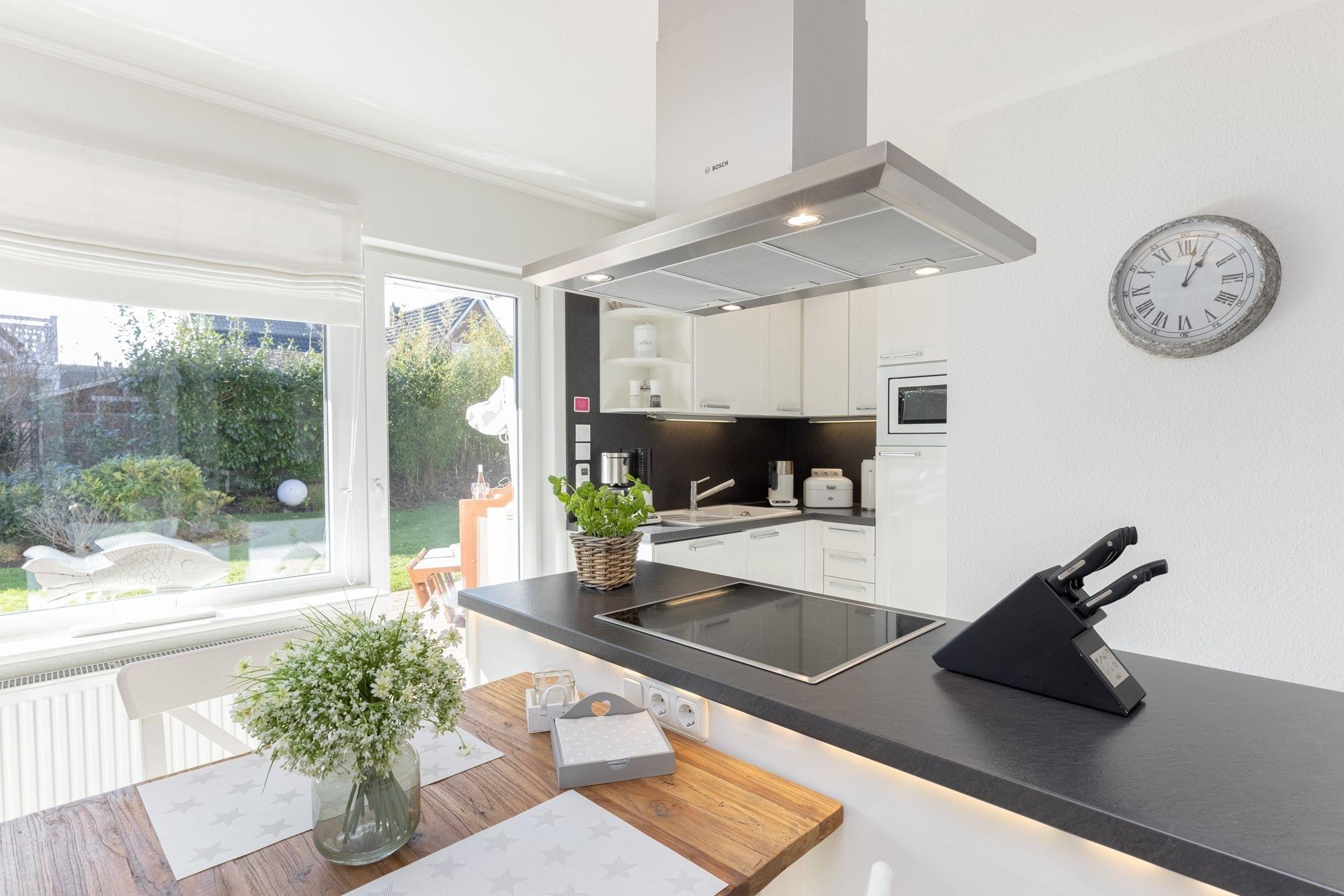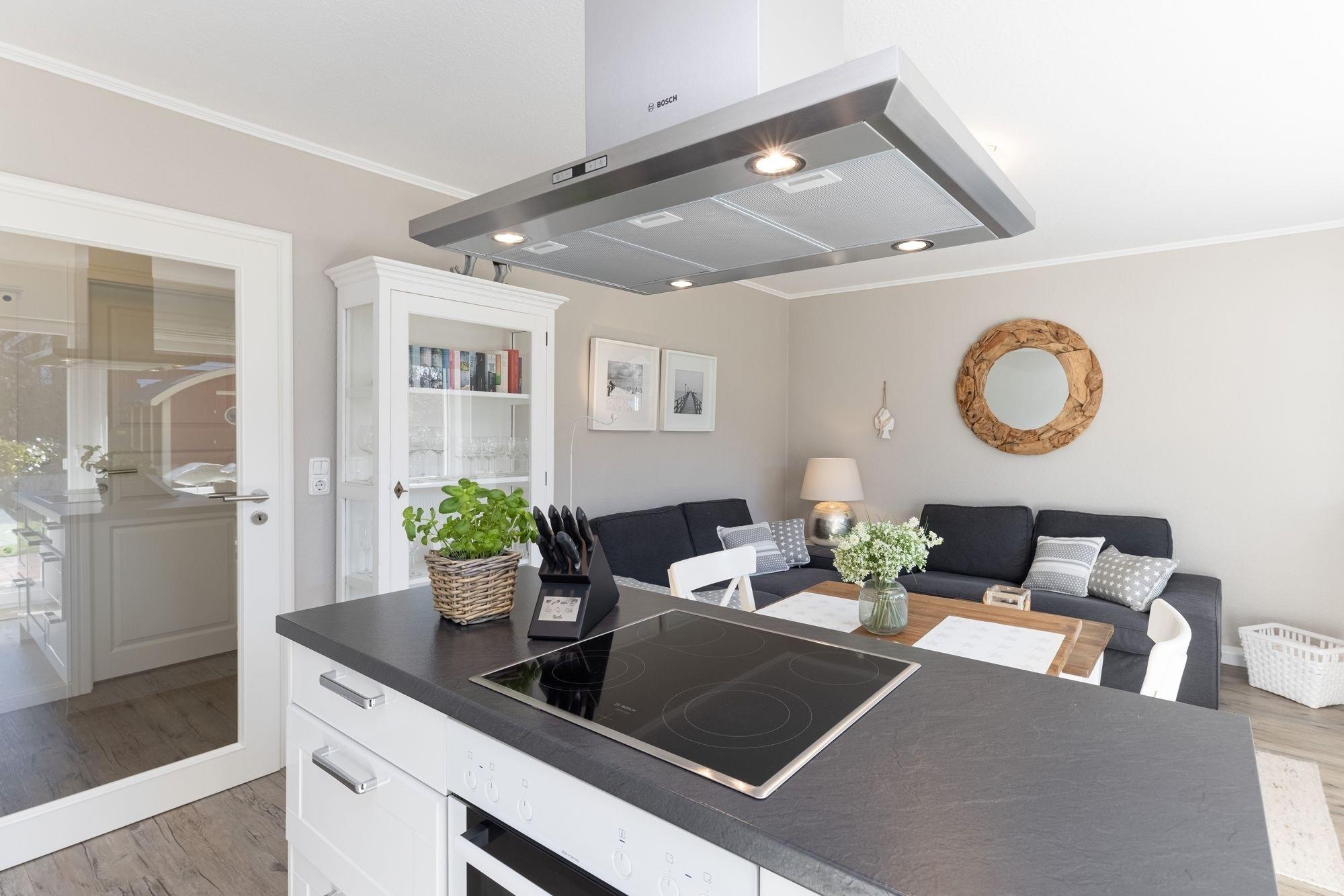 Im separaten Schlafzimmer erwartet Sie ein Doppelbett (2x 160x200), ein Kleiderschrank sowie ein Flachbildfernseher. Als Sichtschutz und Verdunklungsmöglichkeit wurden Plissees angebracht. Vom Flur aus gelangen Sie ins helle Badezimmer, welches über eine bodengleiche Dusche, ein Waschbecken und ein WC verfügt. Für ausreichend Stauraum wurde gesorgt, denn im Waschtischunterschrank haben Sie die Möglichkeit, Ihre Badutensilien zu versauen. Der offene Wohn- und Essbereich mit zwei komfortablen Sofas und einem Flachbildfernseher hat einen fantastischen Ausblick in den grünen Garten. Für ein exklusives Küchenambiente sorgt die voll ausgestattete, ebenfalls offene Küche. Vom Wohn- und Essbereich aus haben Sie Zugang zu einer geschützten Süd-West-Terrasse. Dort können Sie sich auf den Gartenmöbeln oder im eigenen Strandkorb erholen und zur Ruhe kommen. Und wenn es an heißen Sommertagen einmal zu viel Sonne ist, dann lassen Sie bequem die elektrische Markise ausfahren.