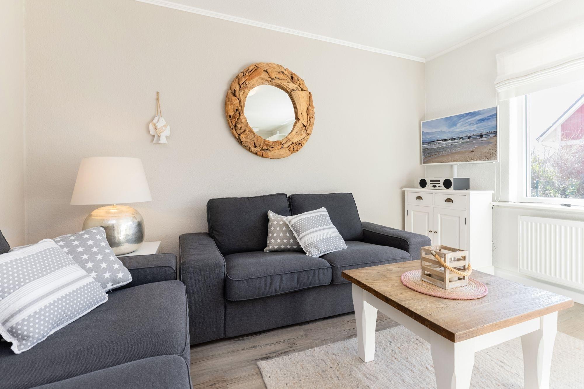 Moderne Ferienwohnung Meeresglitzern in Grömitz, ruhig gelegen und nur wenige Schritte vom Strand entfernt.