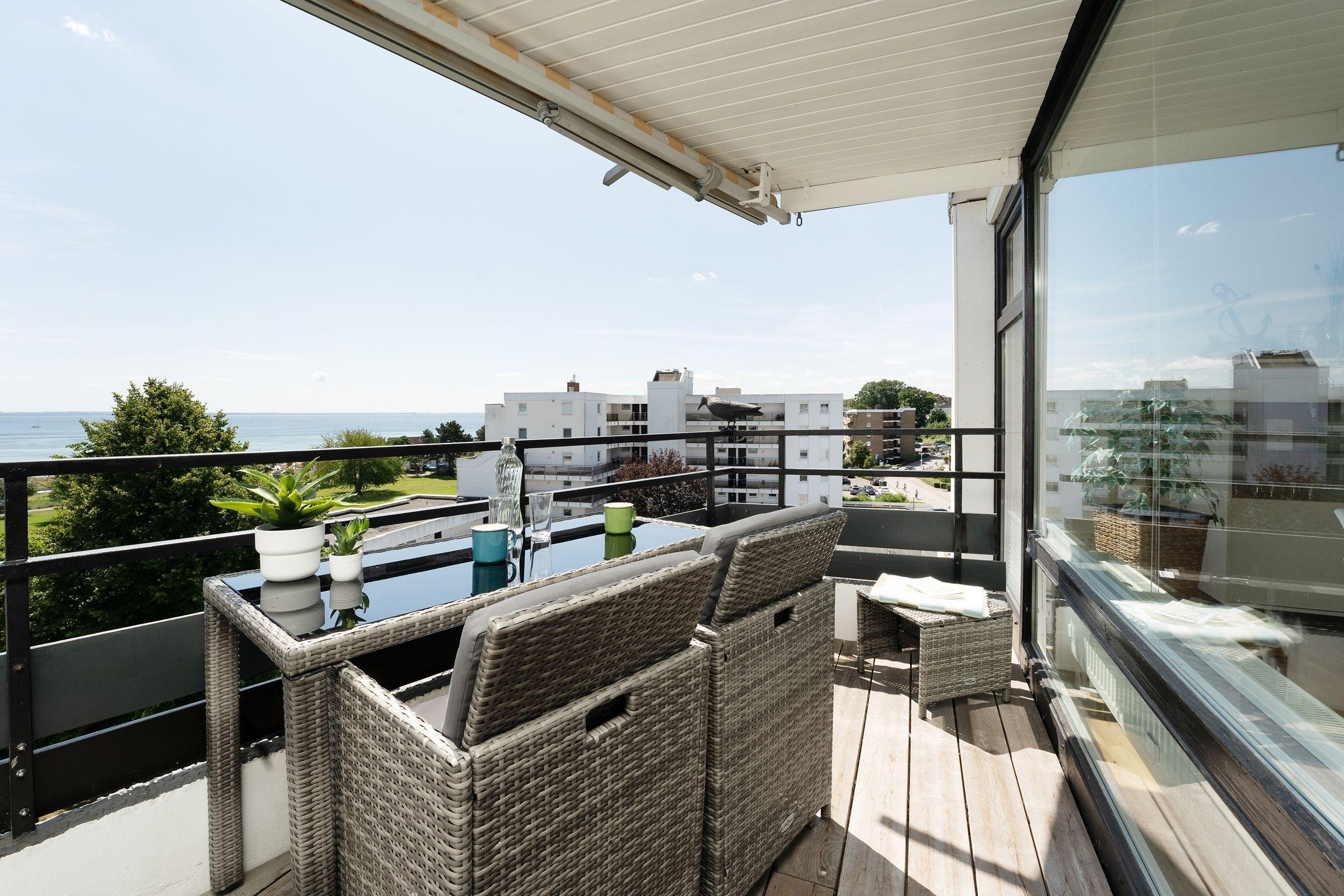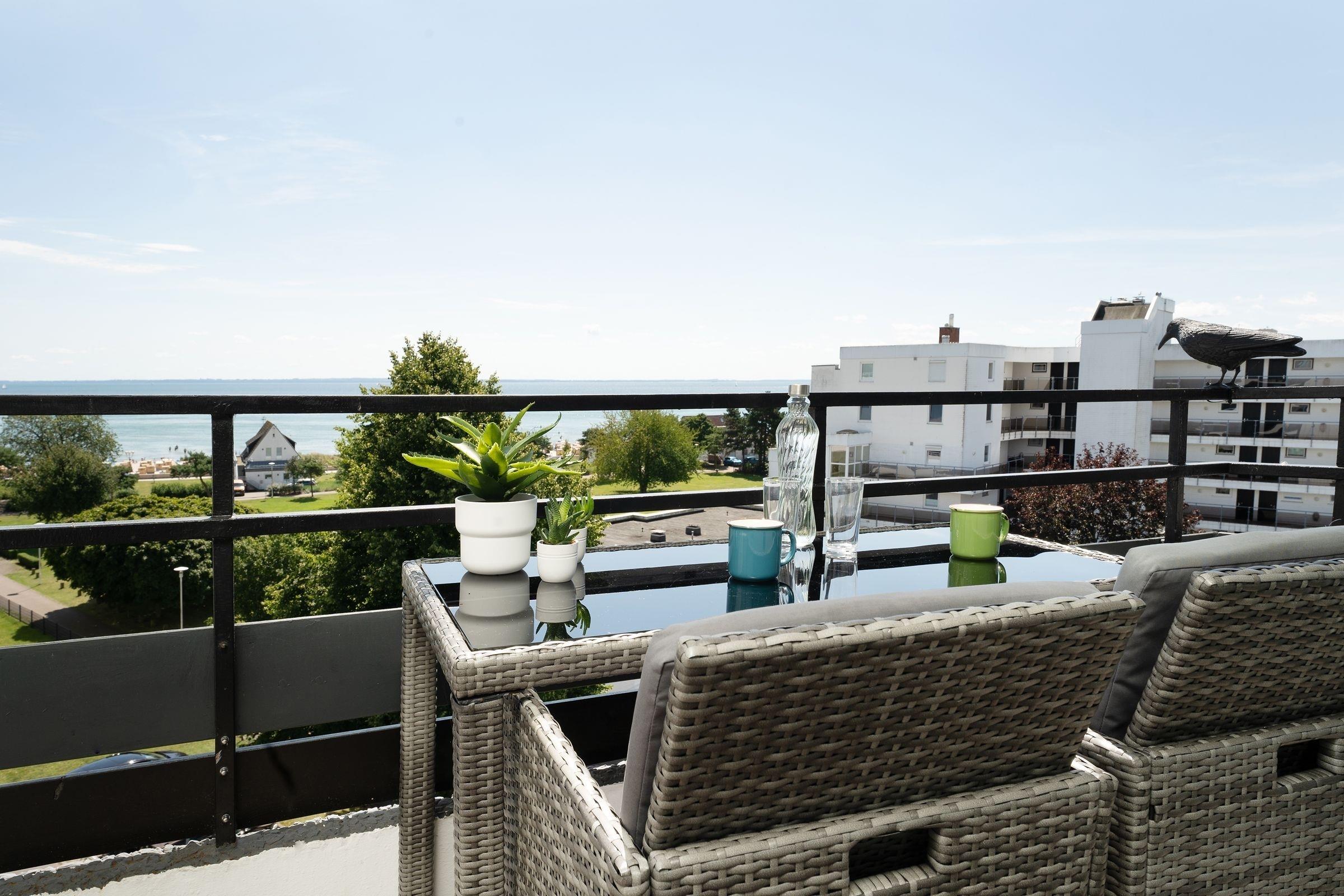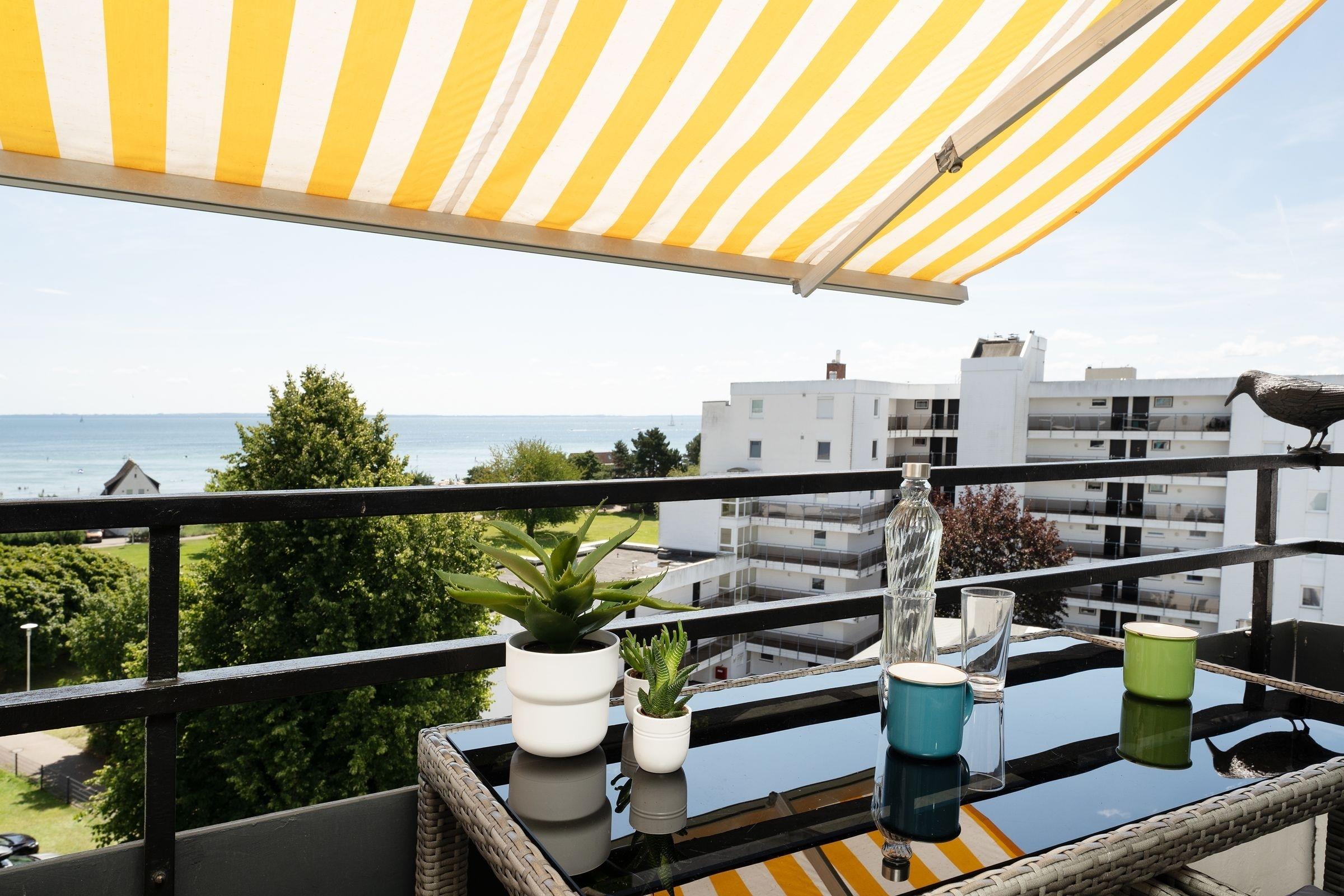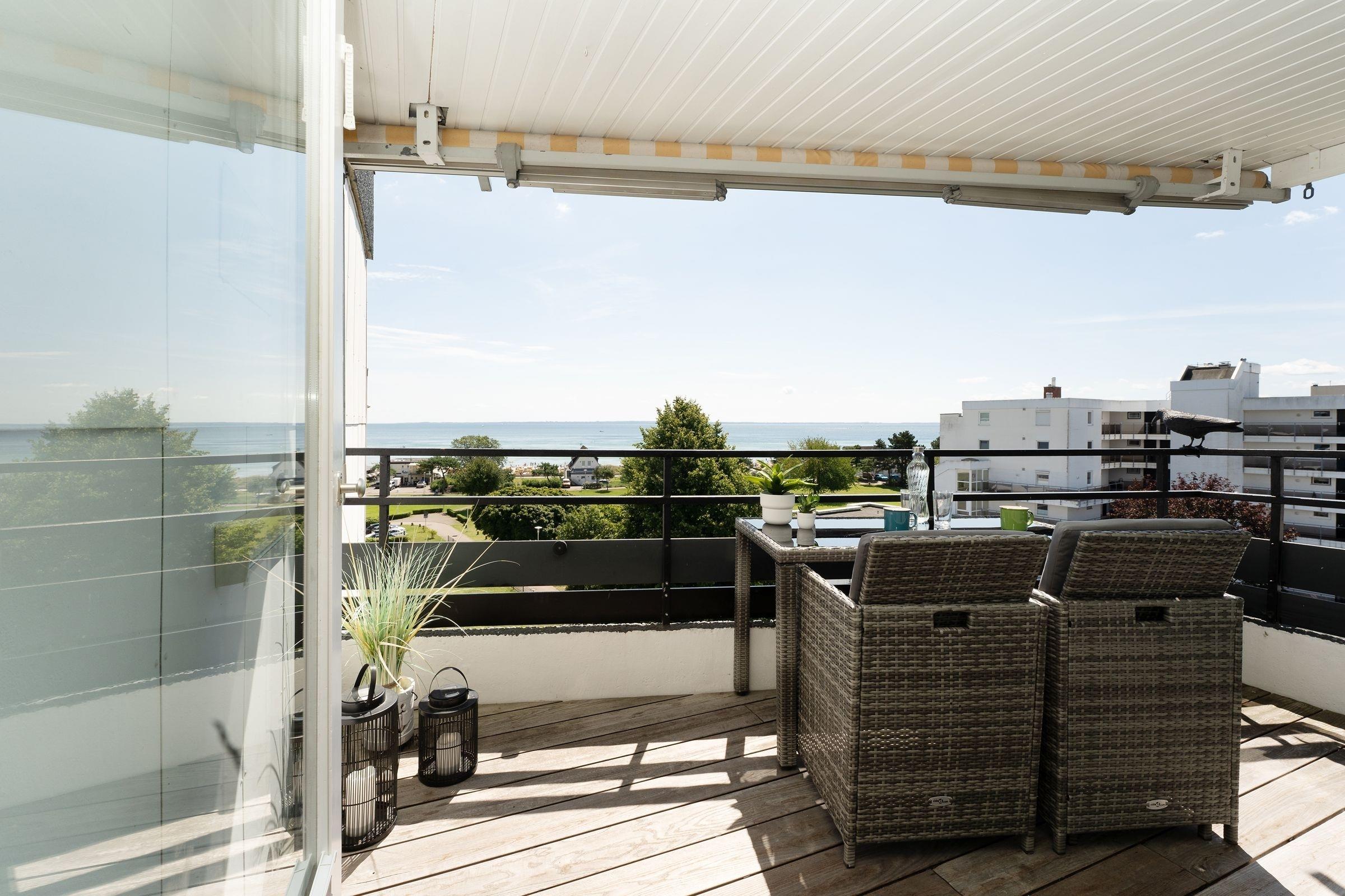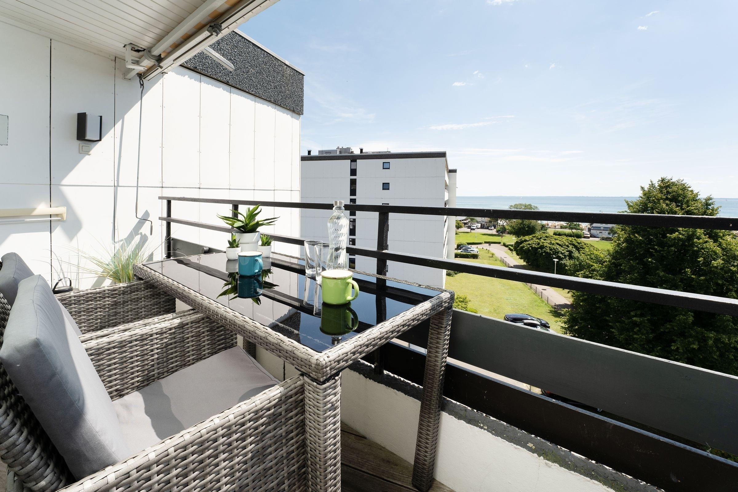 Moderne Ferienwohnung mit Meerblick und Balkon in Grömitz, ideal für erholsamen Ostseeurlaub.