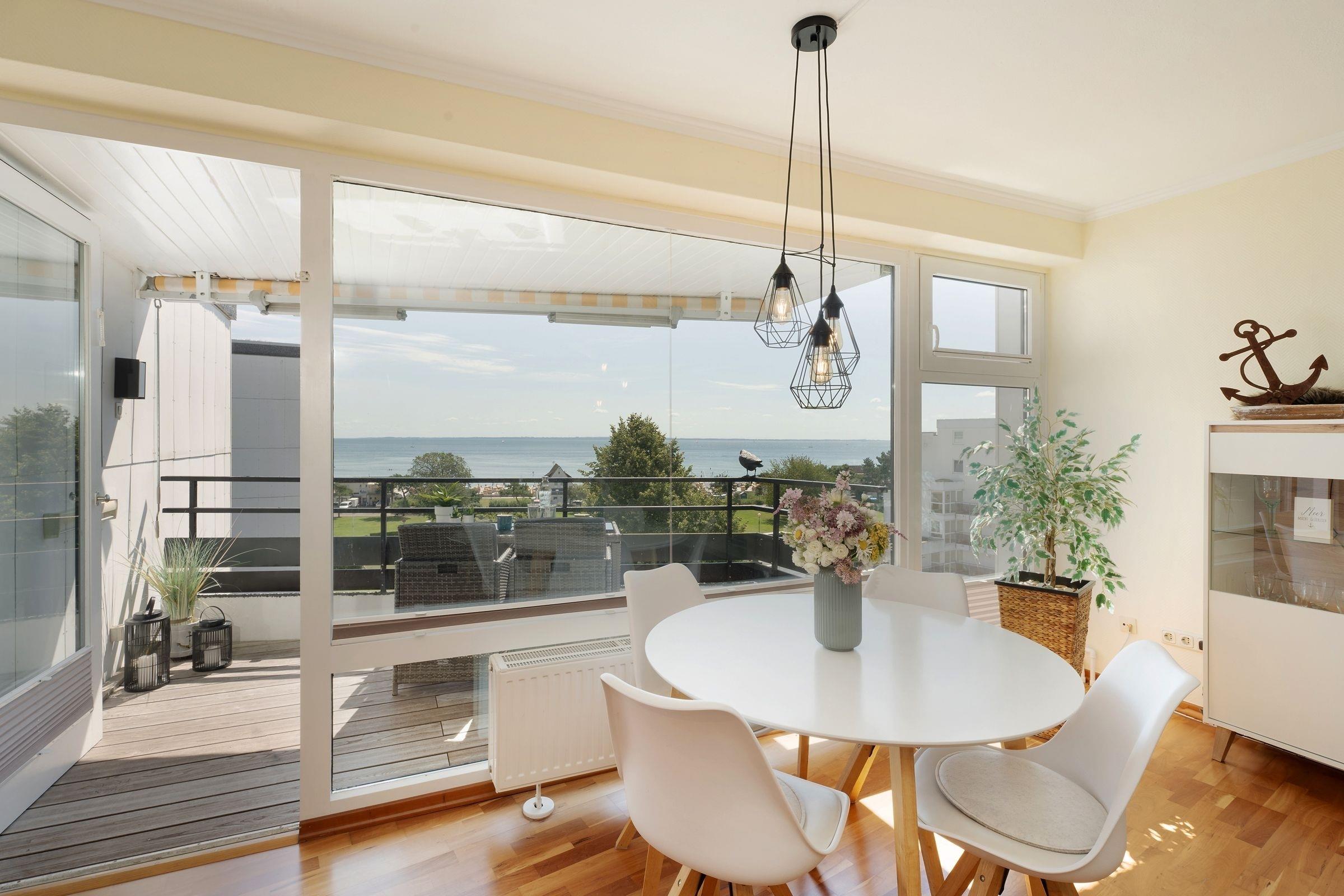 Genießen Sie den einzigartigen Ausblick auf die Ostsee beim Frühstück vom überdachten Balkon aus oder lassen Sie den Tag bei einem Glas Wein vor dem Panoramafenster ausklingen. Der traumhafte Blick auf das Meer lässt den Alltag zu jeder Jahreszeit schnell vergessen ...
