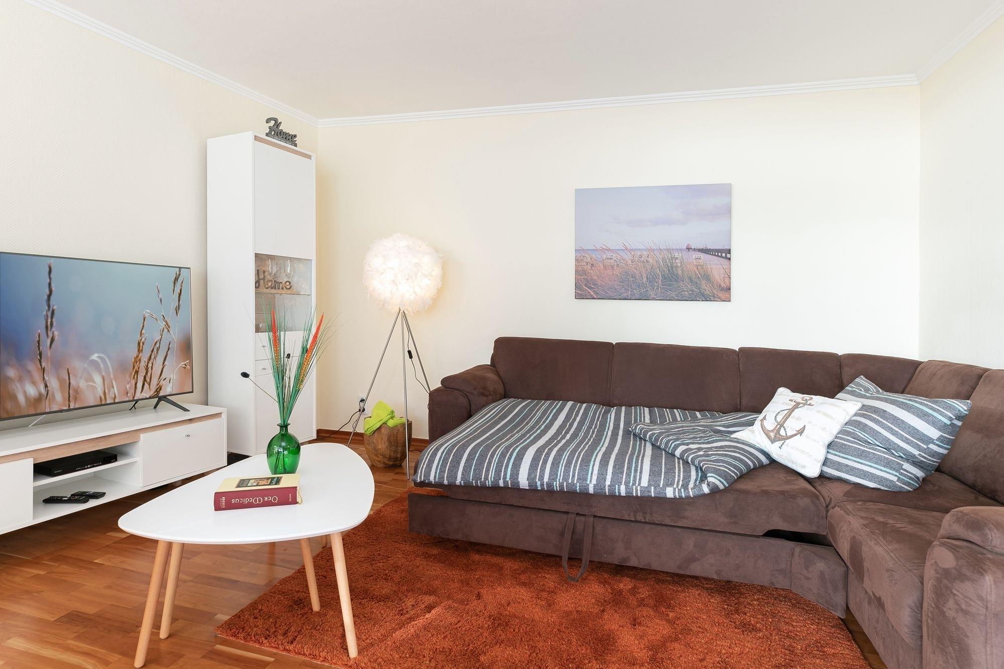 Wohnzimmer: 1 Schlafsofa (160x200 cm), Plissees, TV