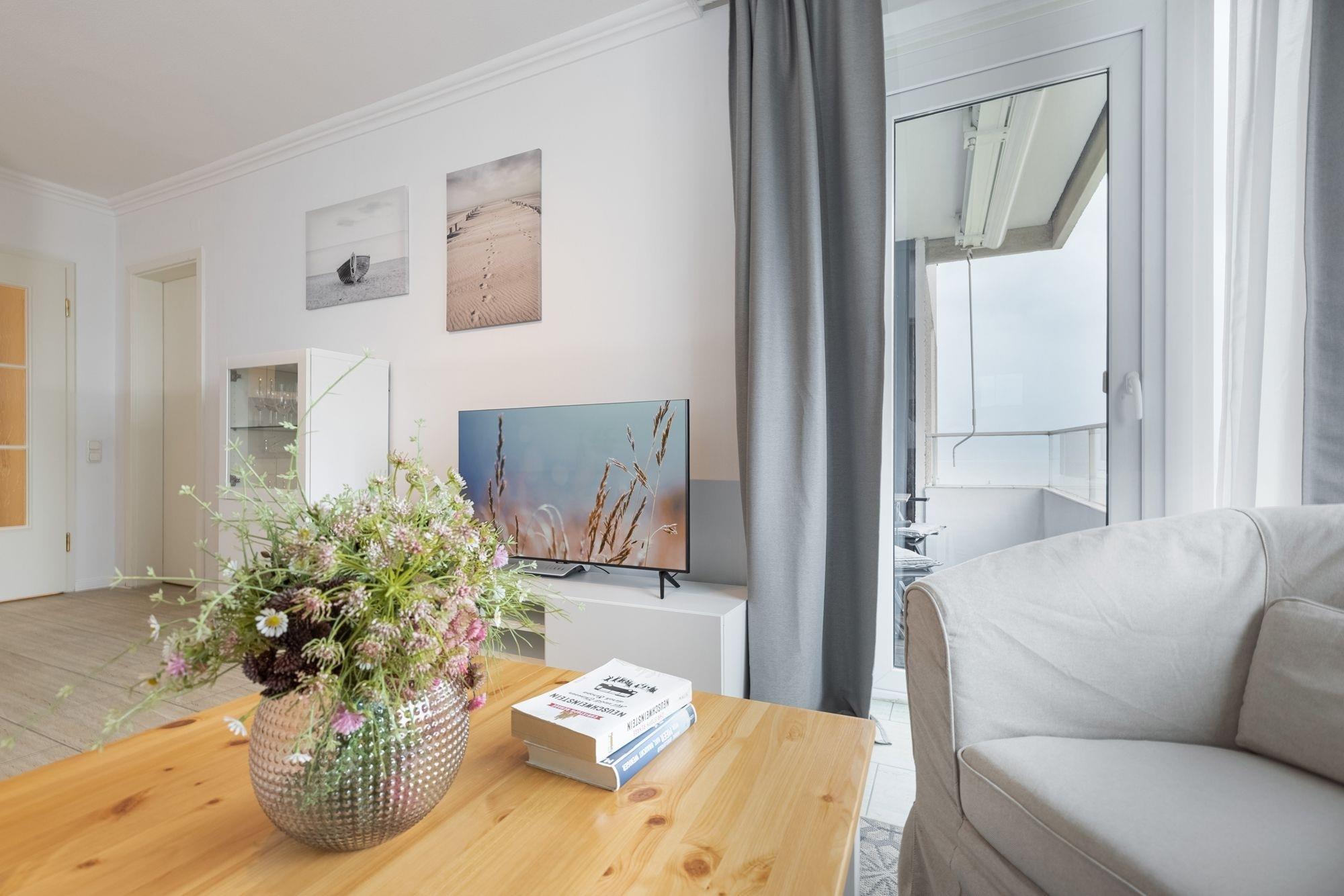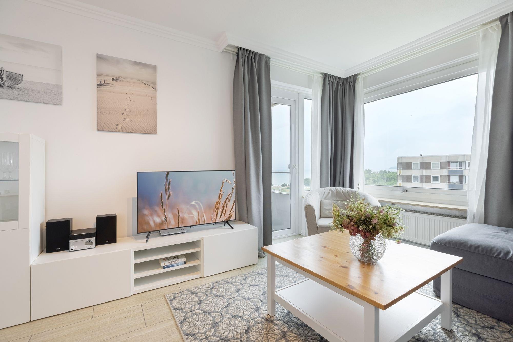 Moderne Ferienwohnung mit Balkon und Meerblick in Grömitz, ideal für erholsame Tage am Ostseestrand.