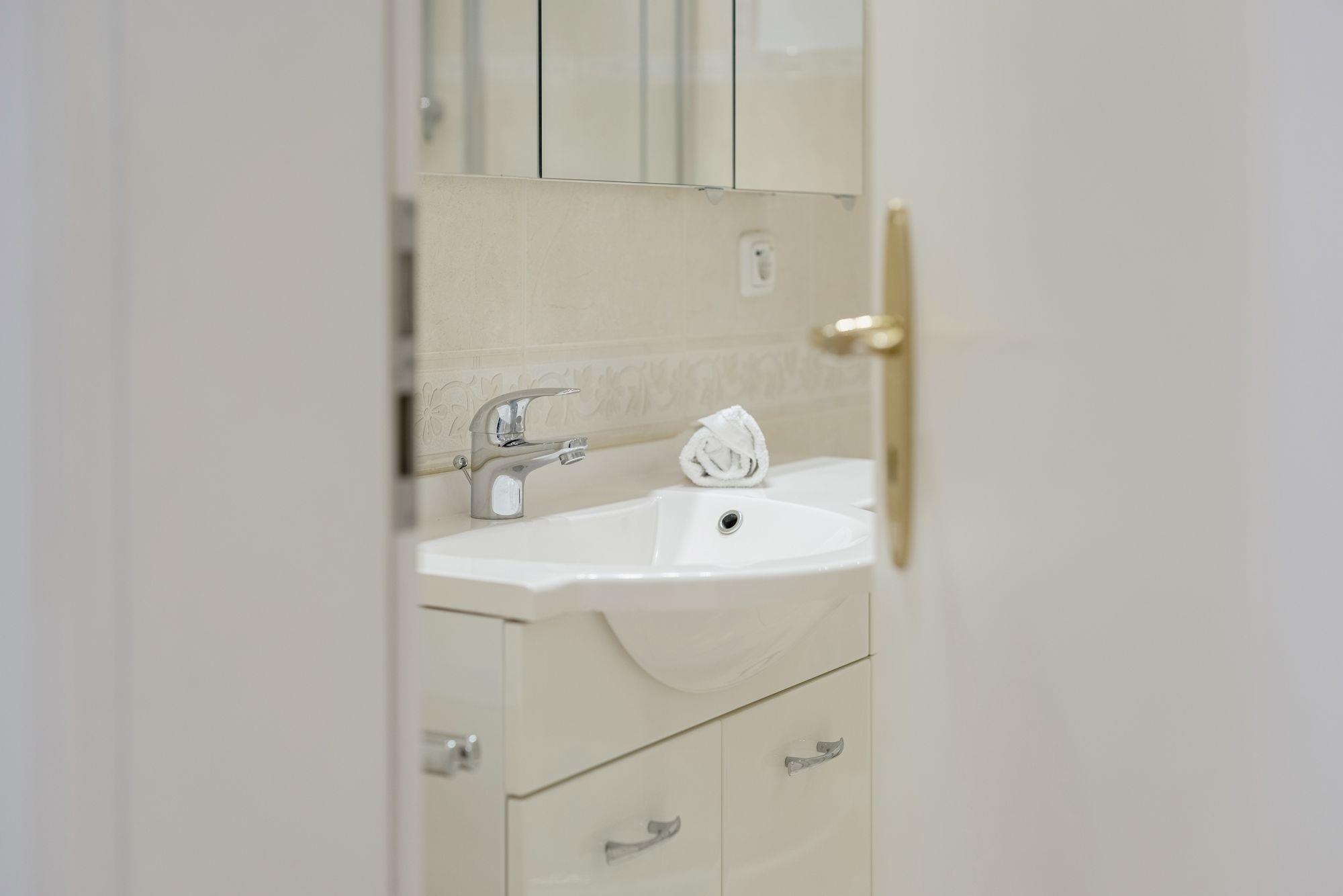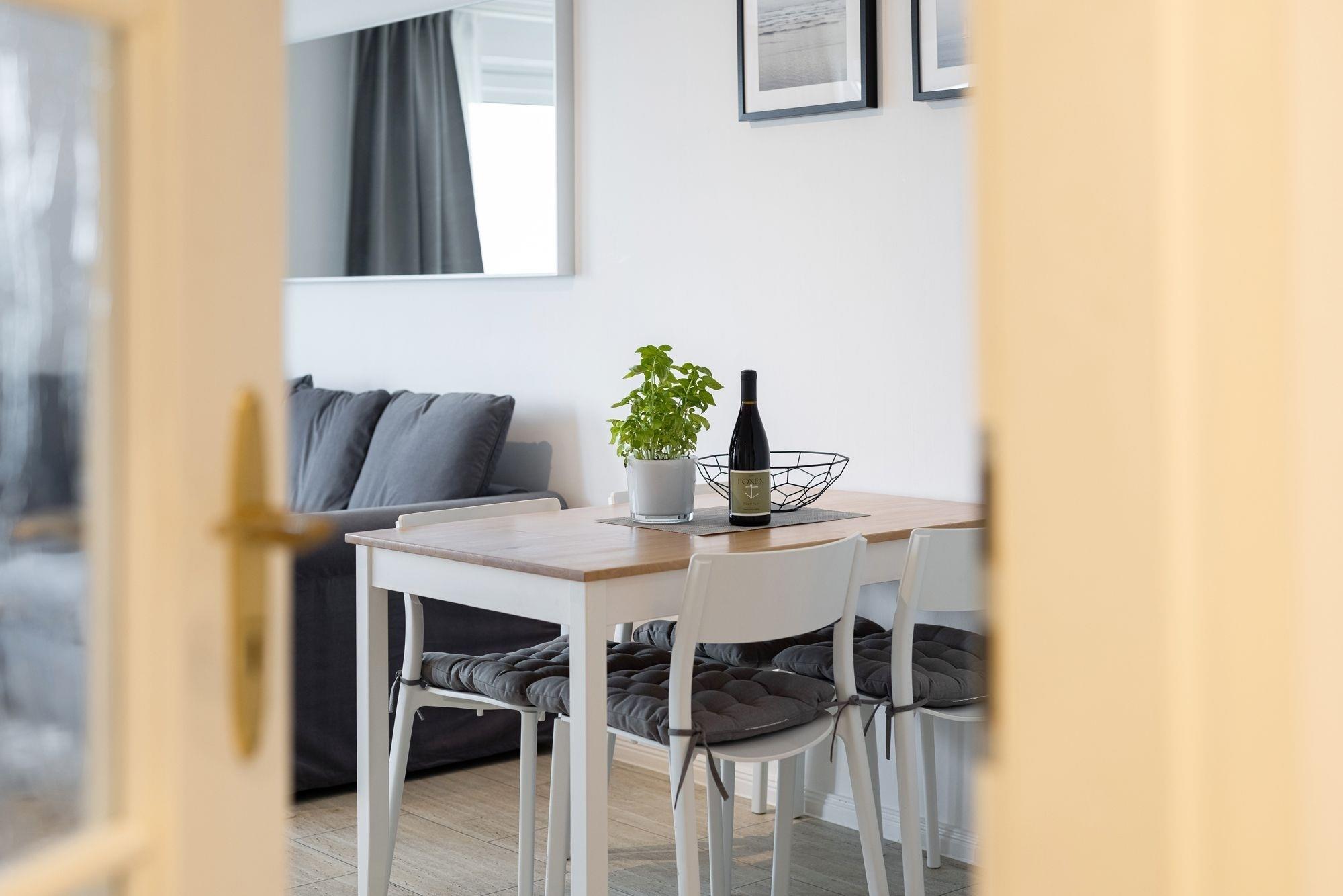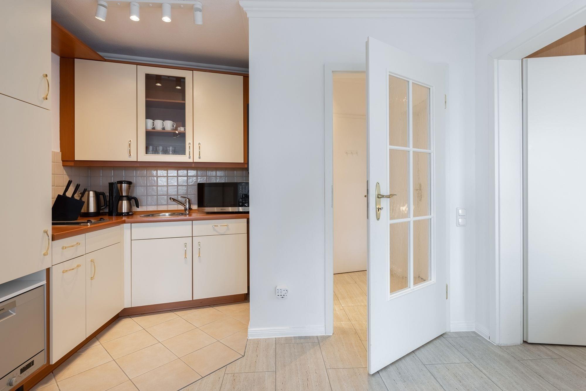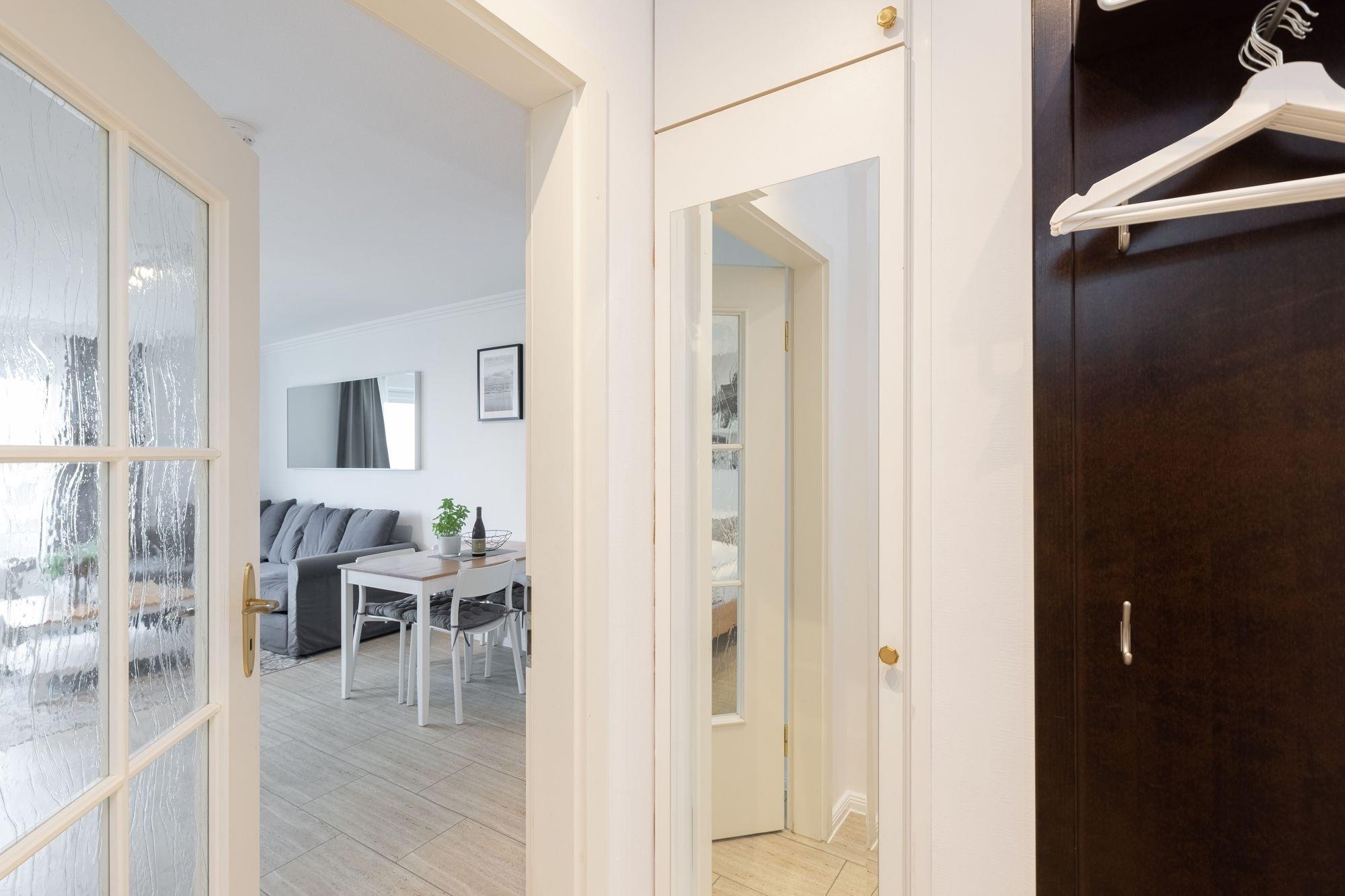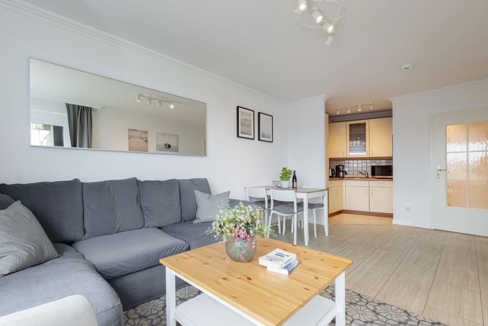 Der Wohnbereich erwartet Sie mit einem Flat-TV, gemütlicher Eckcouch und Essbereich und garantiert Ihnen gemütliche Stunden. Das Sofa wird im Handumdrehen in einen komfortablen Schlafplatz (140x200 cm) verwandelt. Der niedliche Balkon punktet mit seinem seitlichen Ausblick auf unsere wunderschöne Ostsee. Hier können Sie bei Meeresrauschen ein spannendes Buch lesen und die Abende relaxt ausklingen lassen. Über den kostenlosen WLAN-Anschluss bleiben Sie auch im Urlaub erreichbar. Sollten Sie nach einem langen Strandtag keinen Elan für einen Restaurantbesuch haben, können Sie sich in der kleinen Küche mühelos selbst bekochen. Im Schlafzimmer mit Kleiderschrank verspricht das große Doppelbett (2x 90x200 cm) angenehme Nächte. Im geschmackvollen Bad mit Eckdusche und Fön starten Sie erfrischt in den Tag.