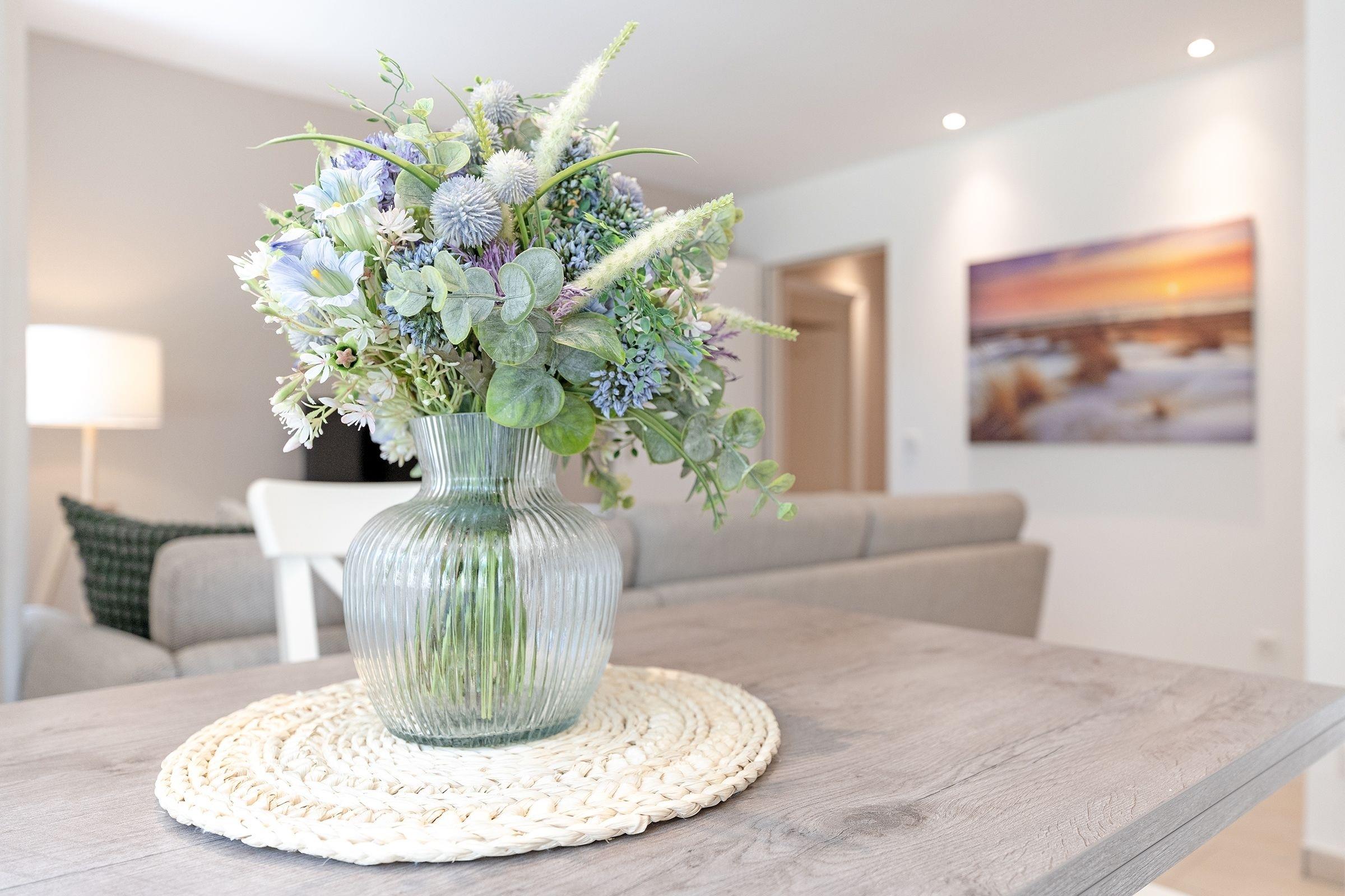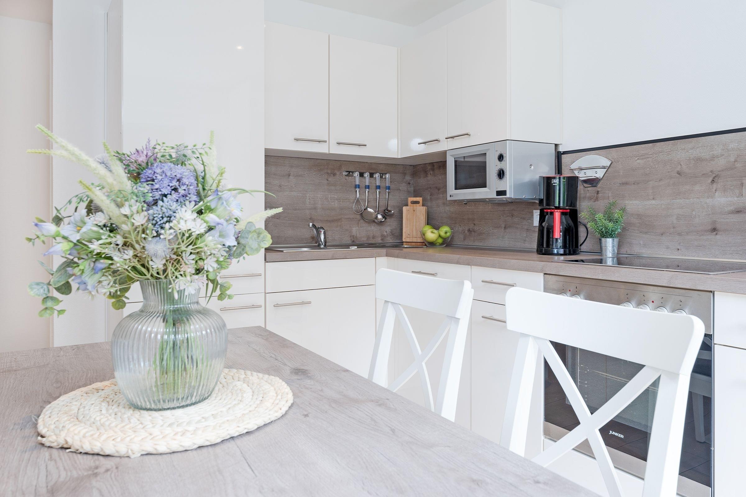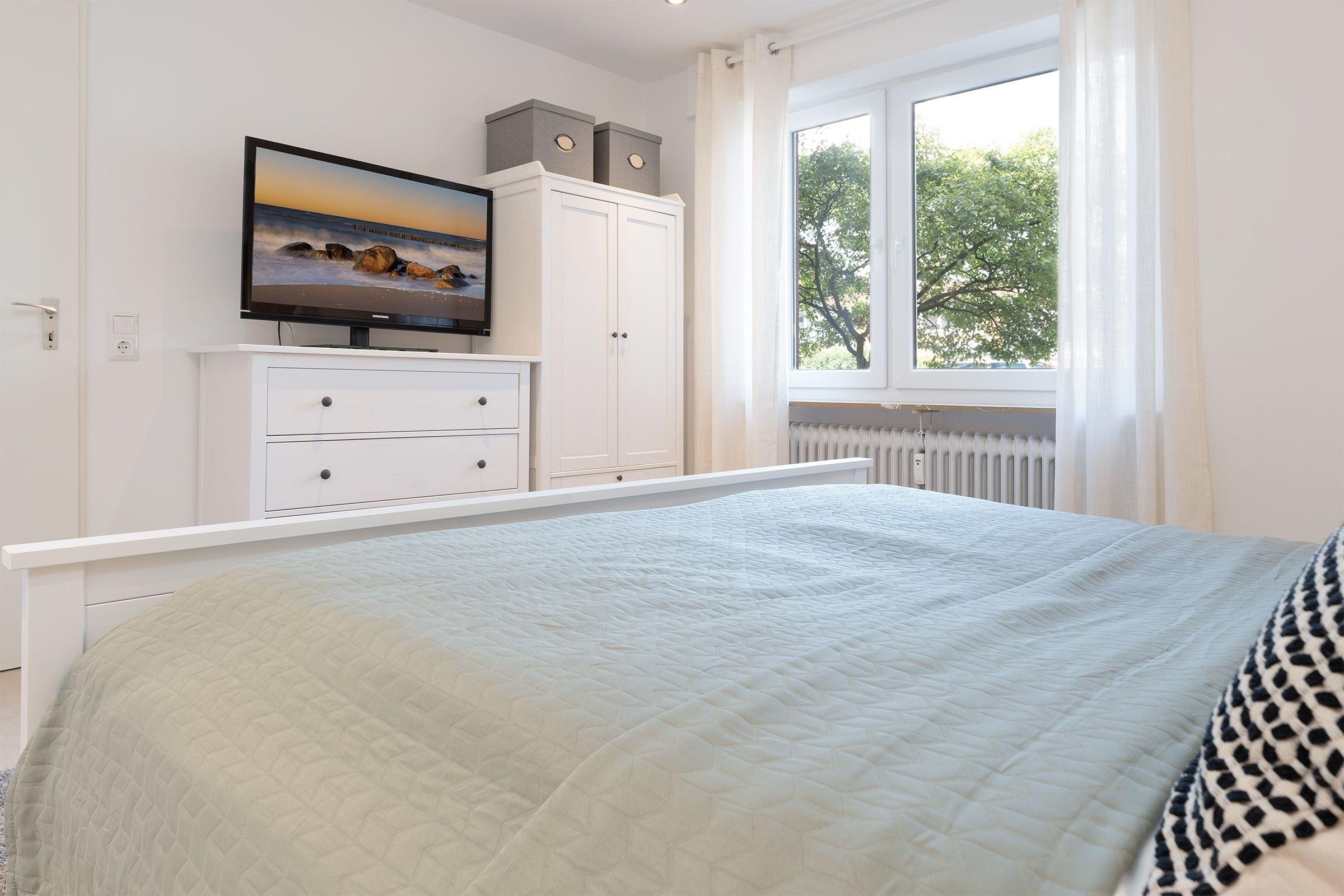 Herzlich willkommen in der Wohnung Küstenkind - hier trifft Moderne auf guten Geschmack. Der helle und großzügige Wohn-Essraum mit bequemer Couch und 43-Flachbildfernseher sowie integrierter, sehr gut ausgestatteter Küche lädt zu geselligen Abenden ein. Von hier gelangen Sie auf den Balkon mit Südwest-Ausrichtung. Lassen Sie den Urlaubstag gemütlich bei einem Glas Wein ausklingen, während Ihnen die frische Meeresluft um die Nase weht. Die beiden separaten Schlafzimmer verfügen jeweils über ein Doppelbett (2x 90x200 cm bzw. Boxspringbett mit 140x200 cm) sowie einen Kleiderschrank bzw. eine Kommode. In beiden Schlafzimmern befindet sich zudem ein 32-Flachbildfernseher. Das moderne Duschbad ist hell gefliest.