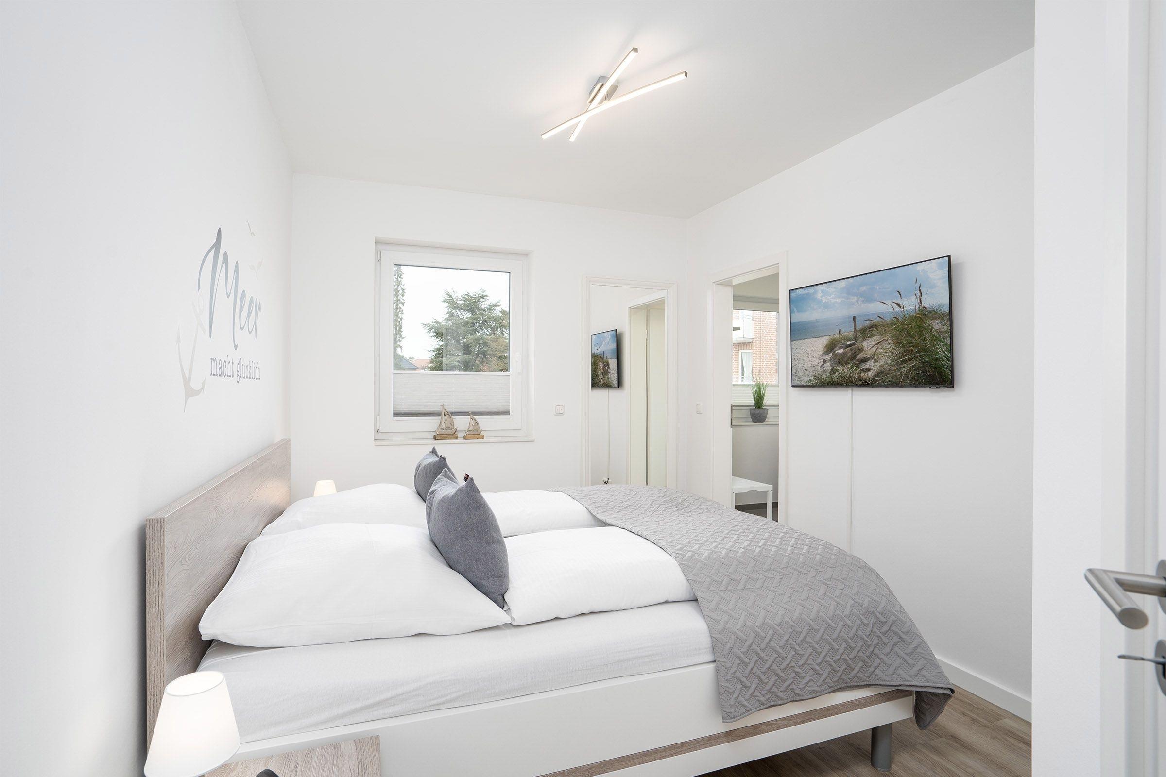 Der lichtdurchflutete Wohn- und Essbereich erwartet Sie mit einem komfortablen Sofa, einem Flachbildfernseher und Zugang zum Balkon. Die voll ausgestattete Küche grenzt offen an den Wohnbereich und bietet Ihnen Annehmlichkeiten wie z. B. einen Backofen in komfortabler Arbeitshöhe, eine Mikrowelle, Kühlschrank, Geschirrspüler sowie eine Cafissimo-Kapselmaschine für den besonderen Kaffeegenuss. In den zwei separaten Schlafzimmern erwarten Sie ein Doppelbett (2x 90x200 cm) bzw. zwei Einzelbetten (je 90x200 cm, eins davon mit Rausfallschutz). Alle Fenster lassen sich durch Außenrollos angenehm abdunkeln, außerdem wurde an allen Fenstern und an der Balkontür jeweils Fliegengitter angebracht. Für weiteren Komfort sorgen ein Badezimmer mit WC und Dusche sowie ein größeres Badezimmer mit Doppelwaschbecken, WC und Dusche. Der möblierte Balkon mit Süd-Ausrichtung lädt Sie zu vielen Sonnenstunden ein.
