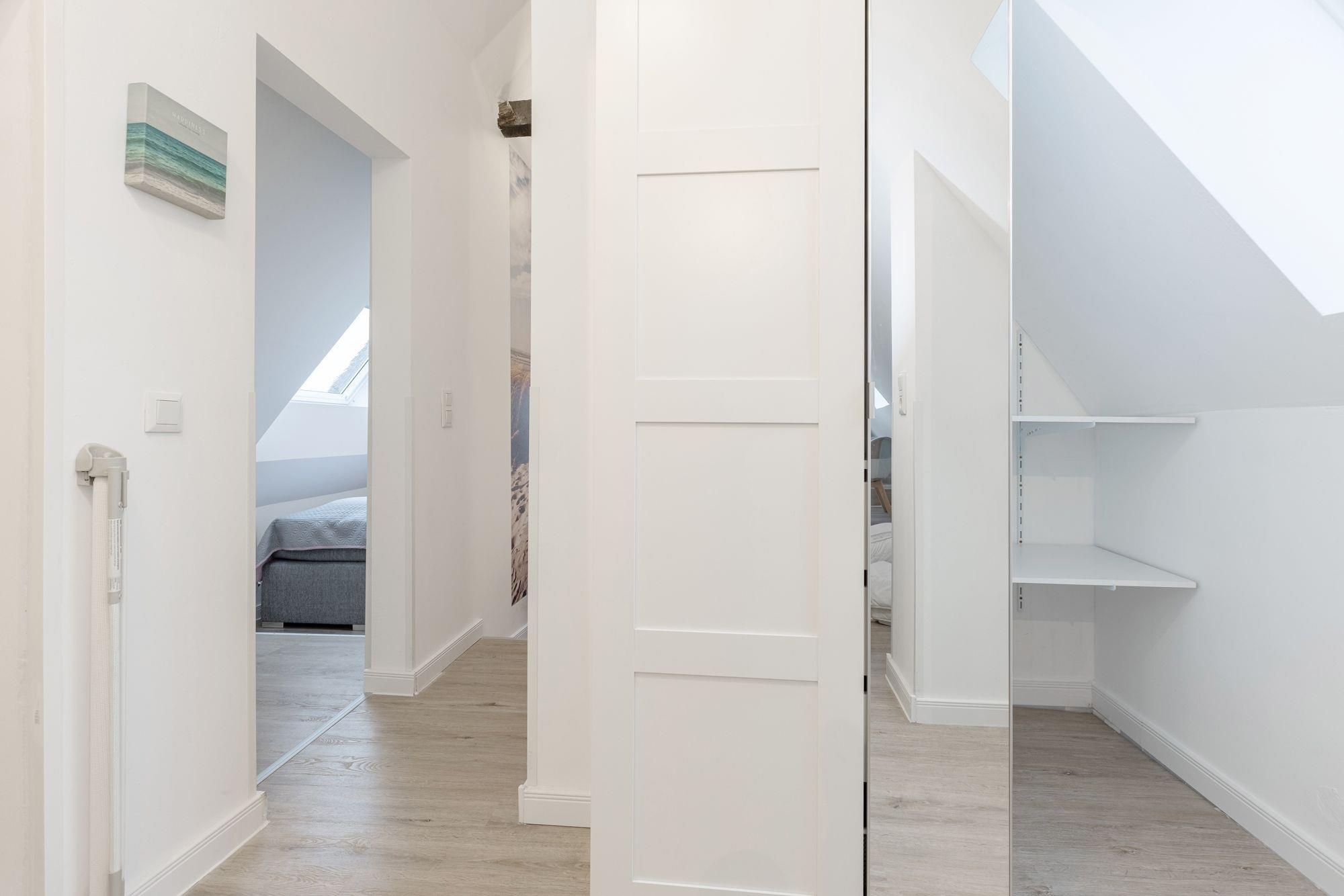Möchten Sie mit der Familie oder mit Freunden gemeinsam verreisen und benötigen mehr Platz? Idealerweise ist eine abschließbare Verbindungstür zwischen den Wohnungen ReetZeit im Erdgeschoss und ReetGlück im 1. Obergeschoss vorhanden.
