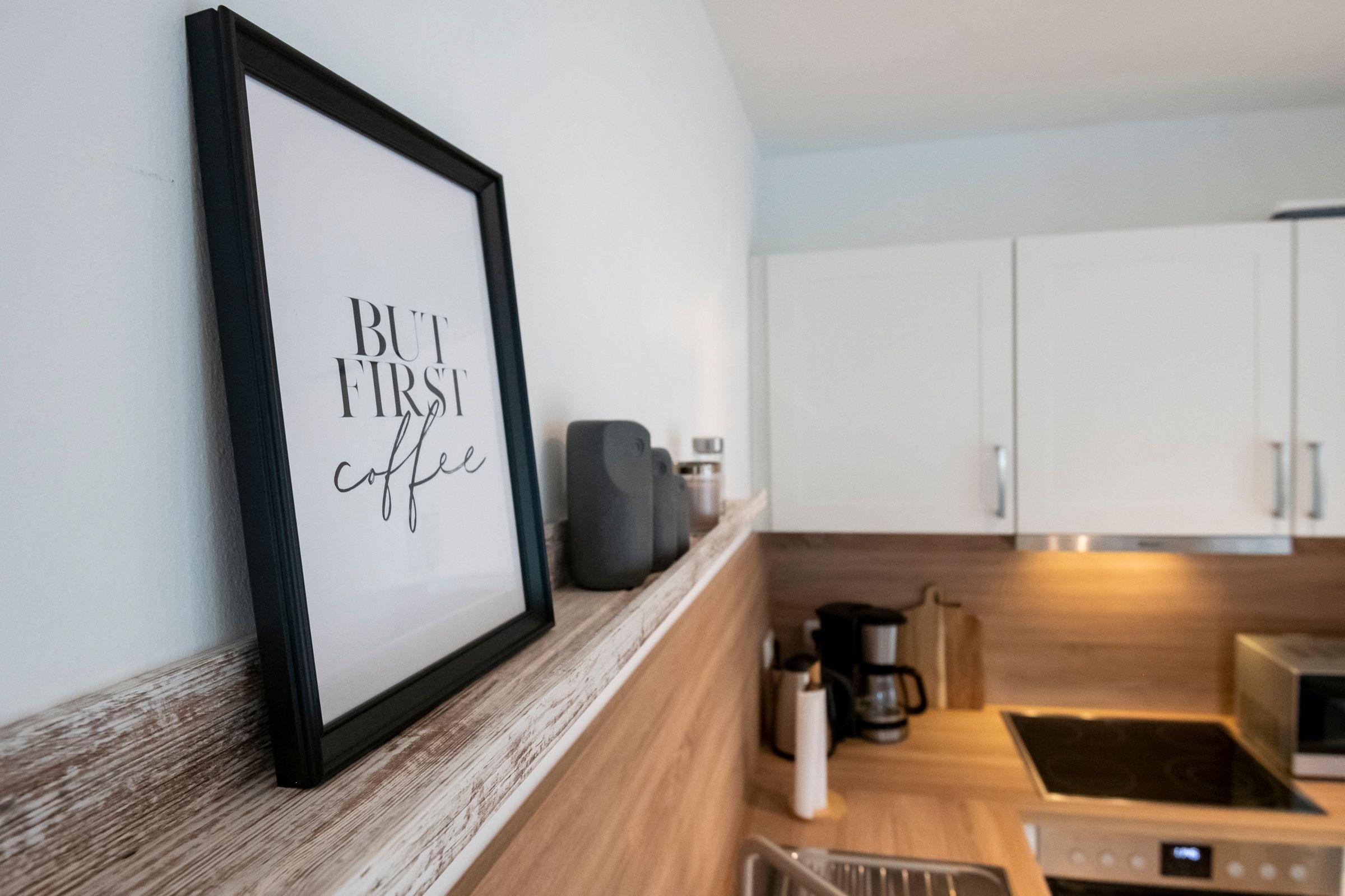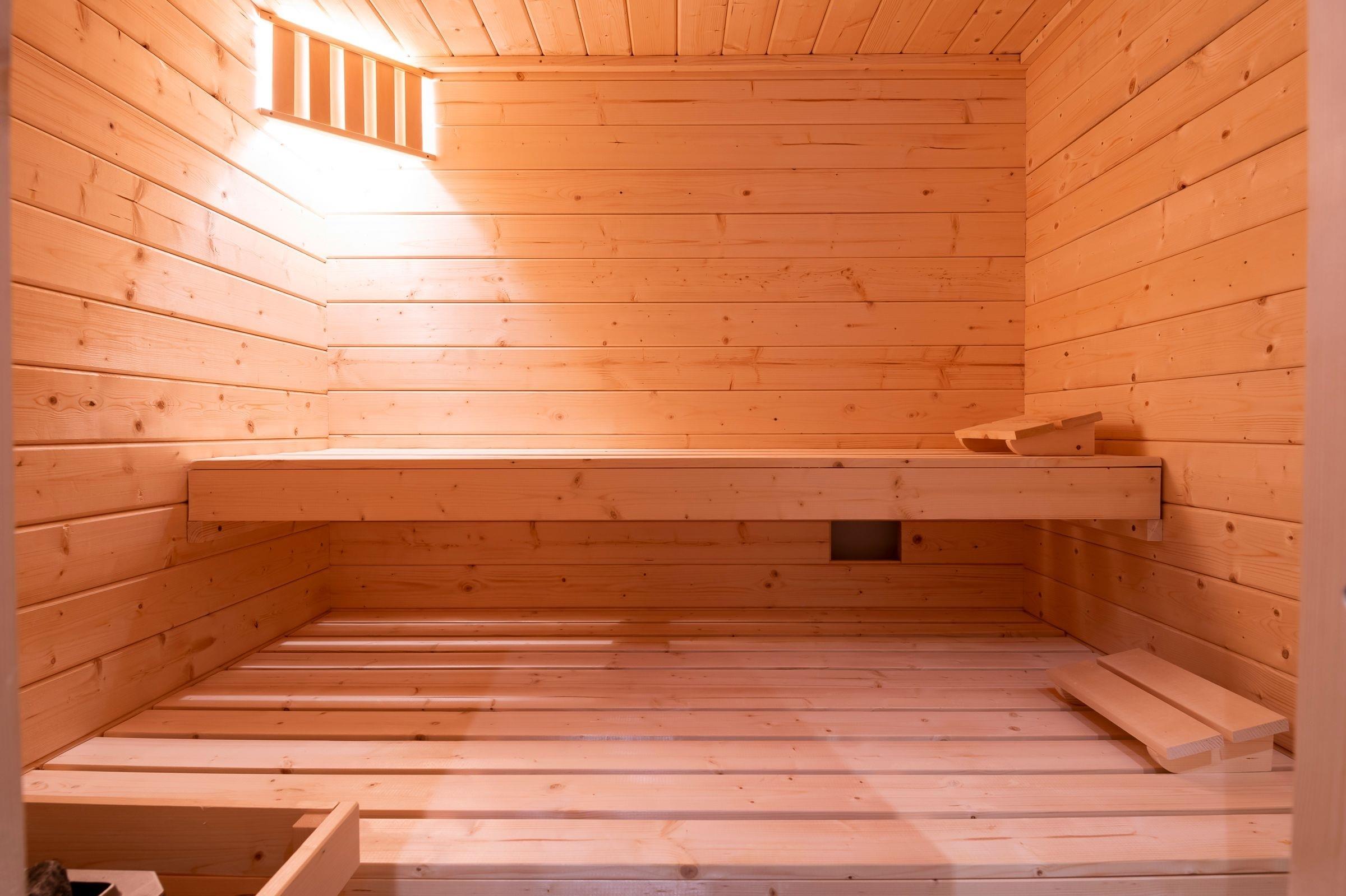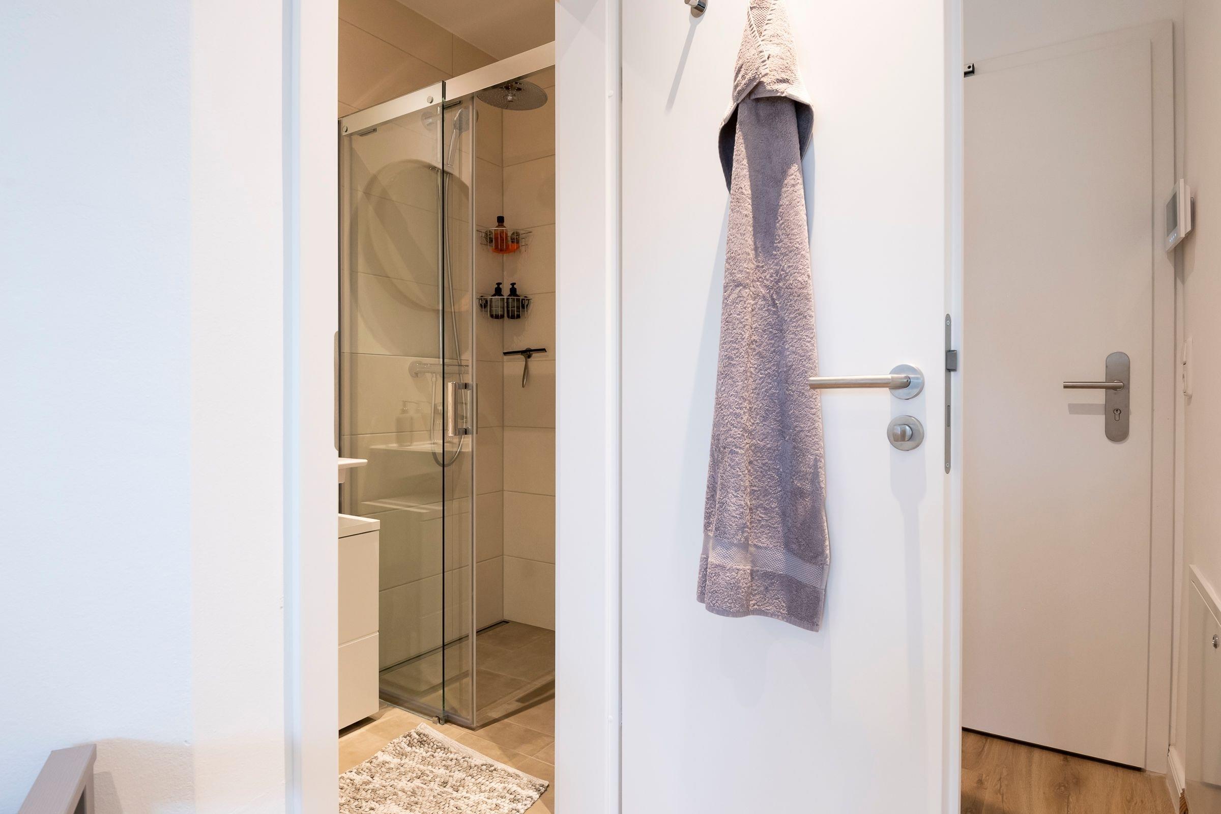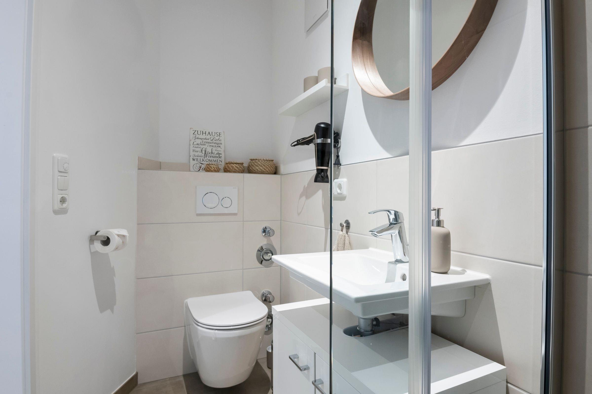 Geradeaus durch den hell und freundlich gestalteten Flur mit Garderobe erreichen Sie das Herzstück dieser Wohnung: den kombinierten Wohn- und Essbereich mit Zugang zum großen, teilüberdachten Balkon mit Süd-West-Ausrichtung. Im Wohnbereich erwartet Sie ein gemütliches Sofa (Liegefläche 140x200 cm), ein Sessel sowie ein Flachbildfernseher. Entspannten Abenden steht hier nichts im Wege! Die angrenzende, offene Küche ist voll ausgestattet und lädt am runden Esstisch zu gemeinsamen Mahlzeiten ein. Das separate Schlafzimmer mit Doppelbett (2x 90x200 cm) ist mit einem Kleiderschrank und einem Fernseher ausgestattet. Auf dieser Ebene befindet sich ein Badezimmer mit WC, Dusche und Waschtisch. Im Souterrain erwartet Sie ein weiteres Zimmer als Rückzugsort mit Sofa, Kleiderschrank und Fernseher. Ein großzügiges Badezimmer mit WC und bodengleicher Dusche sowie eine eigene Sauna (1€ / 20 Minuten) und ein angrenzender Ruheraum mit gemütlichen Schaukelstühlen erwarten Sie ebenfalls im Souterrain.