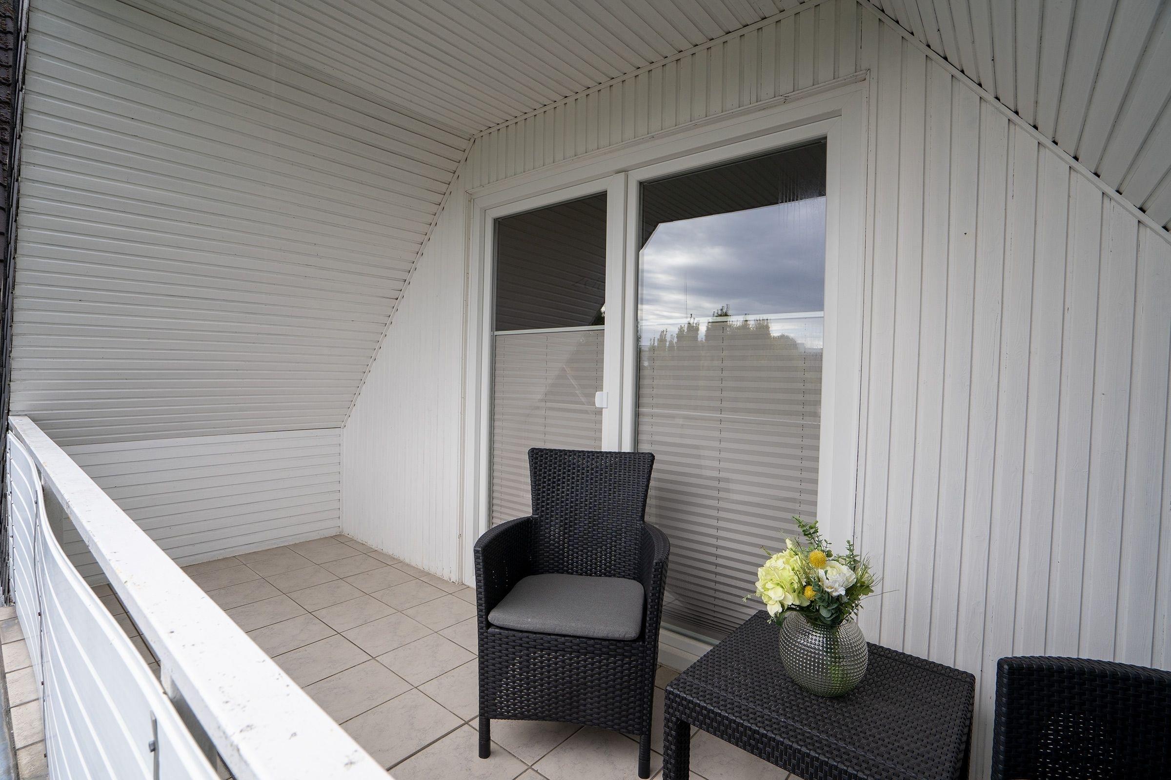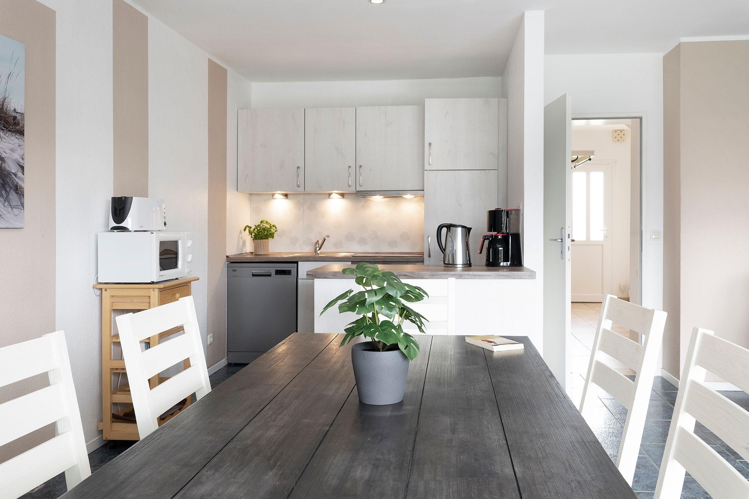 Der geräumige Wohnbereich mit offener Küche bietet genügend Platz für alle Mitreisenden und lädt zu gemeinsamen Spiele- oder TV-Abenden ein. Drei Schlafzimmer und zwei moderne Bäder, eins mit Dusche und das andere mit Badewanne, sorgen für ein Rundumwohlgefühl. Die beiden Schlafzimmer im Obergeschoss verfügen über je ein Doppelbett (2x 90x200cm). Weitere Schlafplätze bietet das Schlafzimmer im Erdgeschoss mit zwei Einzelbetten (je 100x200cm). Vom Schlafzimmer in der 1.Etage gelangen Sie auf den überdachten Balkon. Außerdem verfügt dieses Ferienhaus über eine großzügige Südost-Terrasse mit Gartenmöbeln und Lounge-Bereich, der perfekte Ort, um einen ereignisreichen Urlaubstag bei einem Glas Wein ausklingen zu lassen.