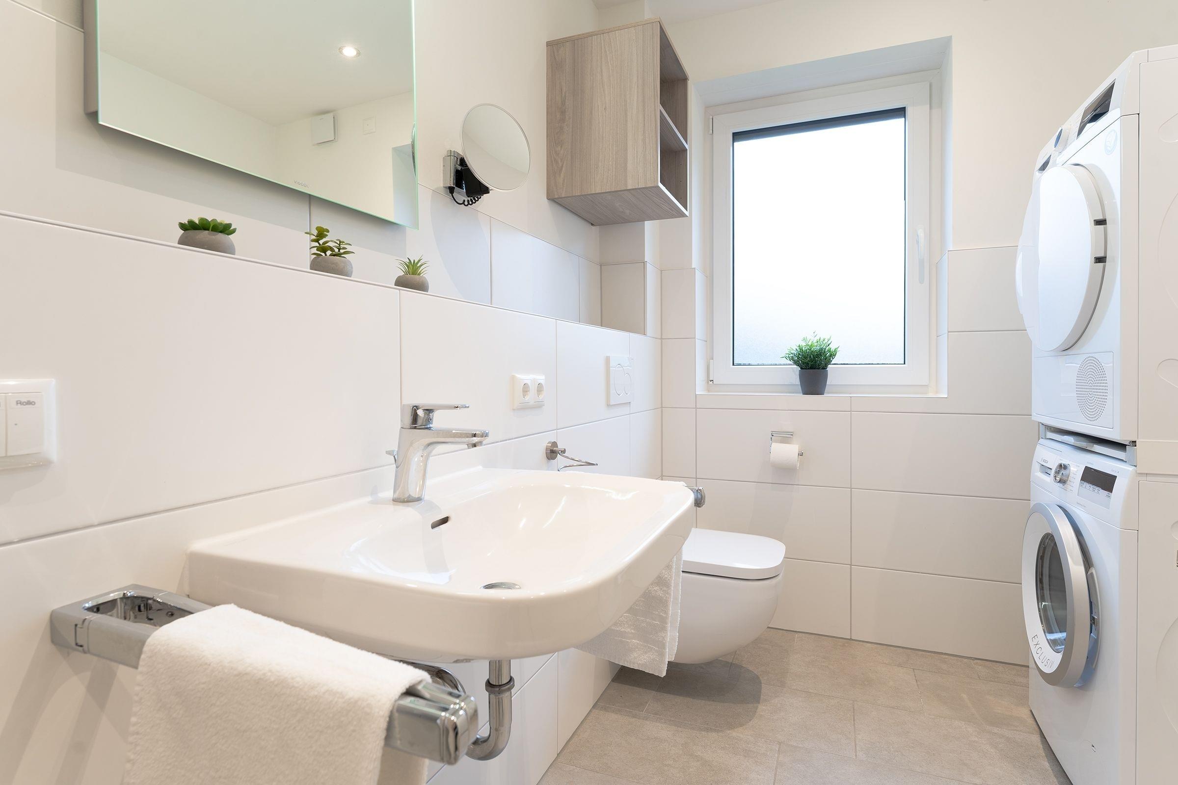 Ein PKW-Außenstellplatz ist für Sie reserviert. Zur privaten Nutzung gibt es im Badezimmer eine Waschmaschine und einen Trockner und für die kleinen Gäste steht ein kostenfreier Kinderhochstuhl zur Verfügung.