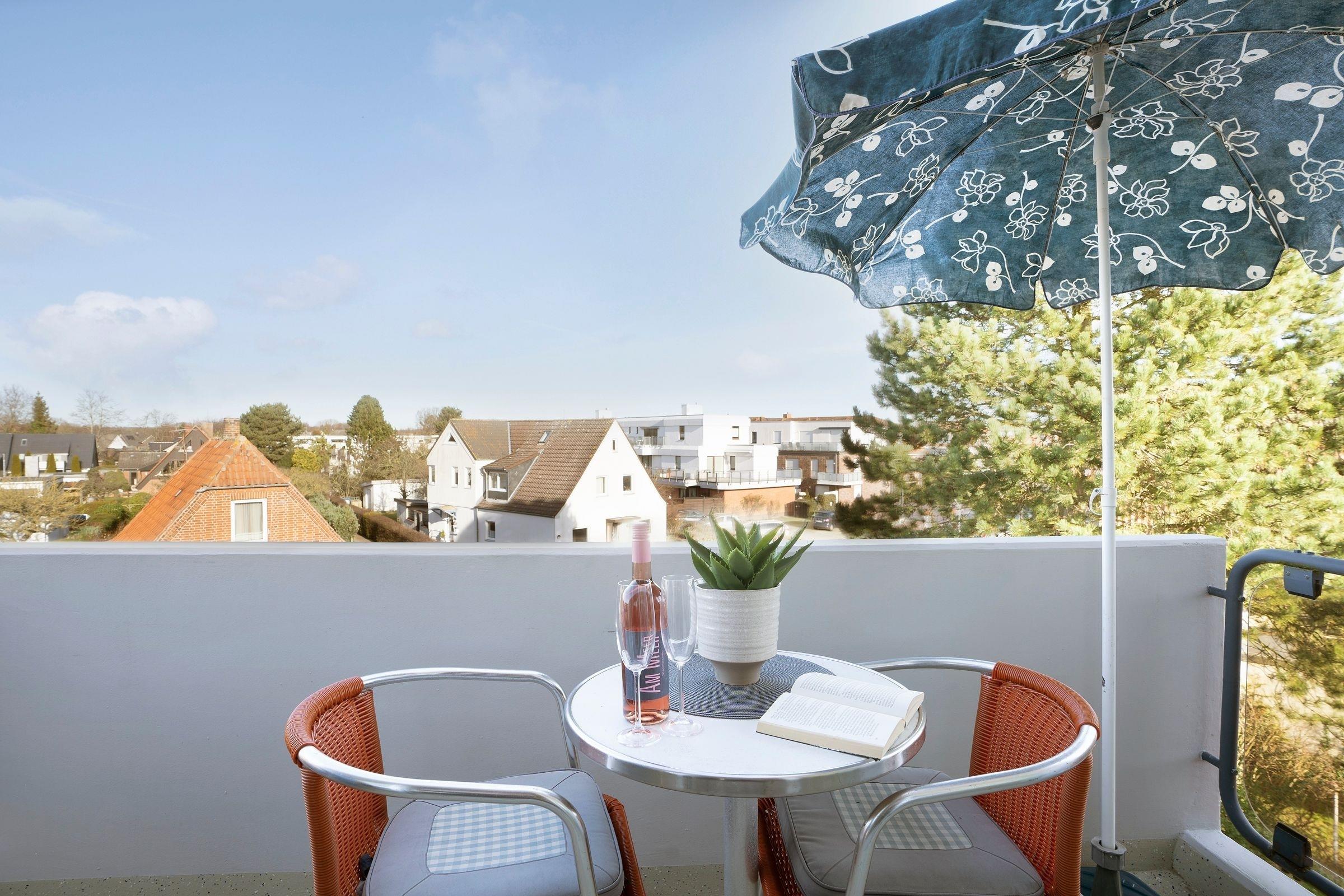 Charmante Ferienwohnung mit Balkon nahe Ostseestrand in Grömitz, ideal für erholsamen Strandurlaub.