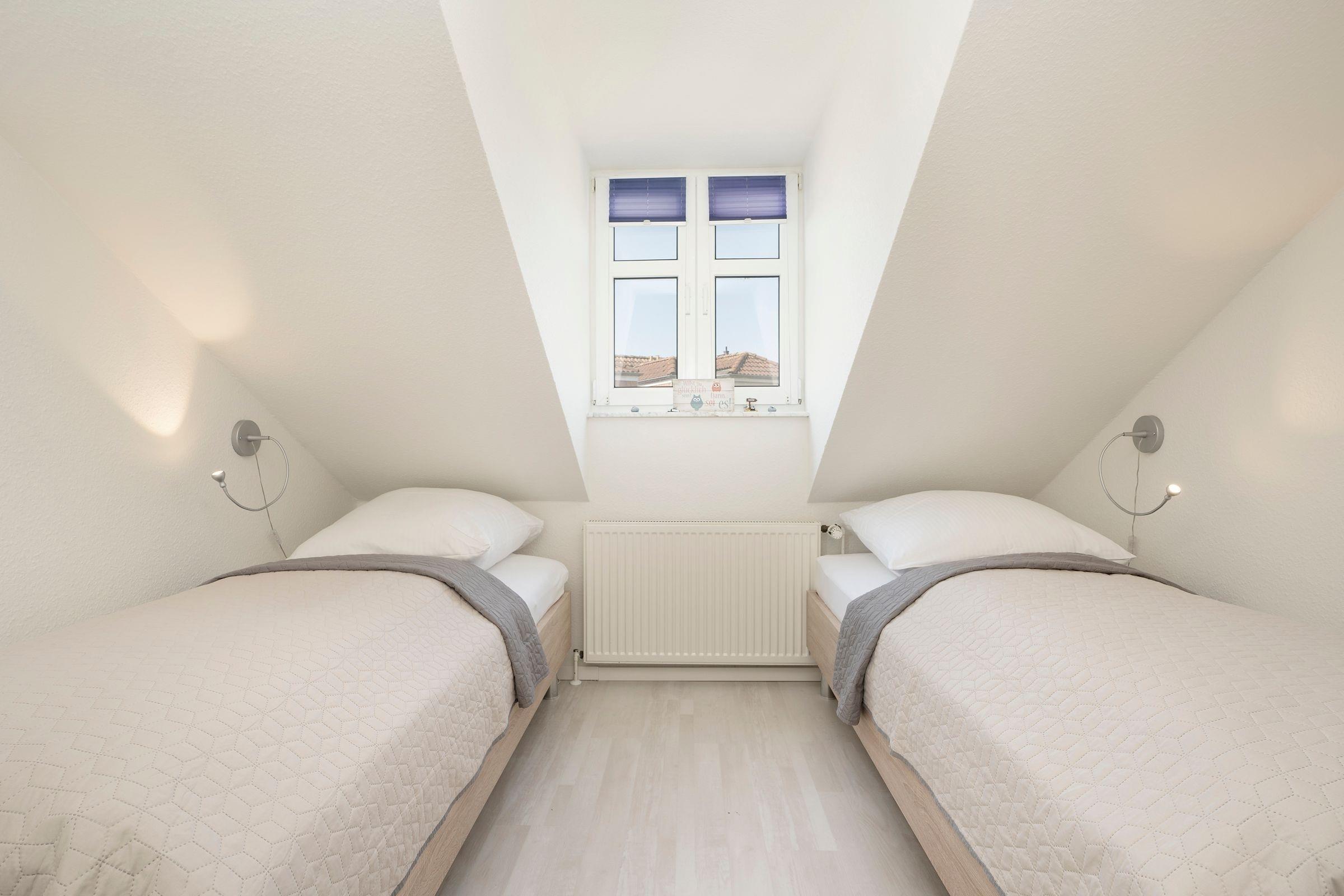 Geruhsame Nächte verbringen Sie in den beiden separaten Schlafzimmern, wovon das eine mit einem Doppelbett (2x 90x200 cm) und das andere mit 2 Einzelbetten (je 90x200 cm) ausgestattet ist. Der neue Urlaubsmorgen beginnt mit einer erfrischenden Dusche im hell gefliesten Tageslichtbad. 2 Fernseher und der vorhandene WLAN-Anschluss runden das Unterhaltungsangebot in dieser Ferienwohnung ab.