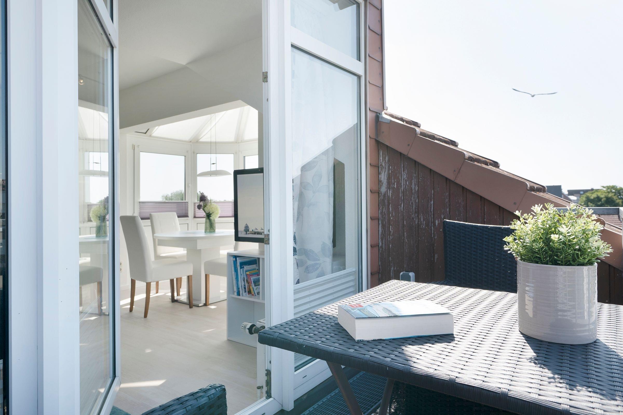 Charmante Dachgeschoss-Ferienwohnung in Grömitz mit Balkon, WLAN und Gemeinschaftsgarten für entspannte Strandtage.
