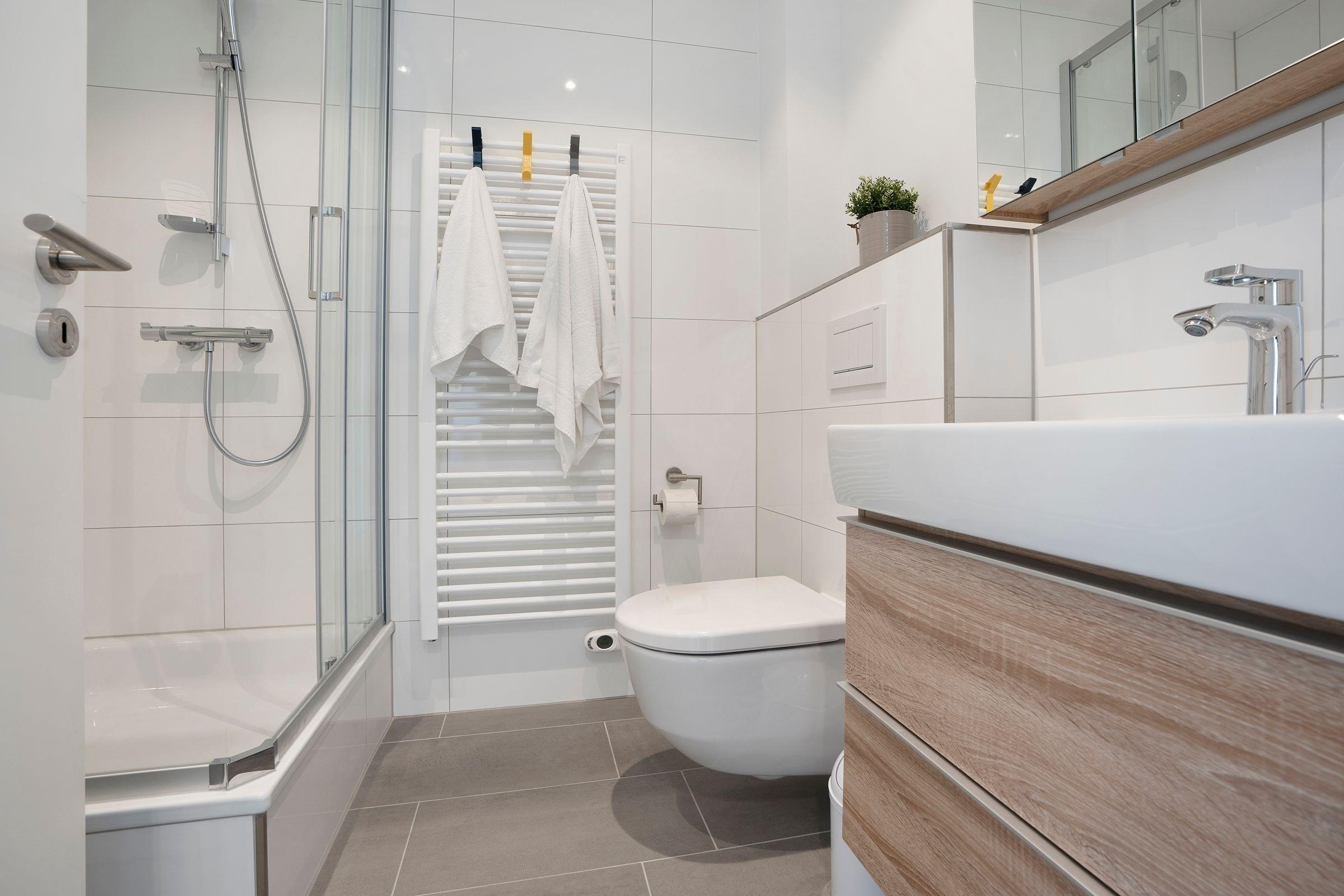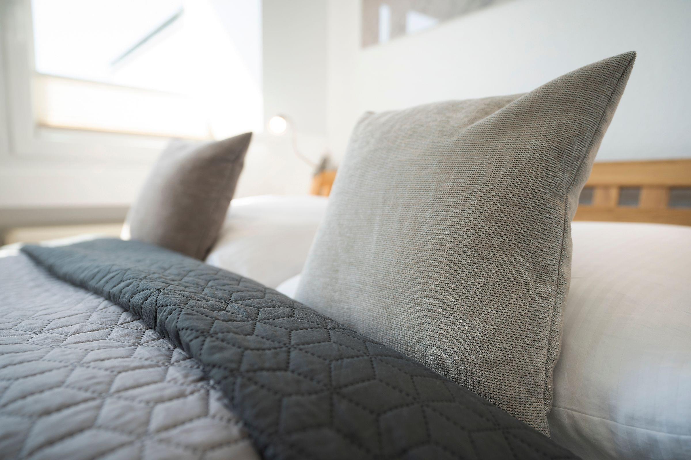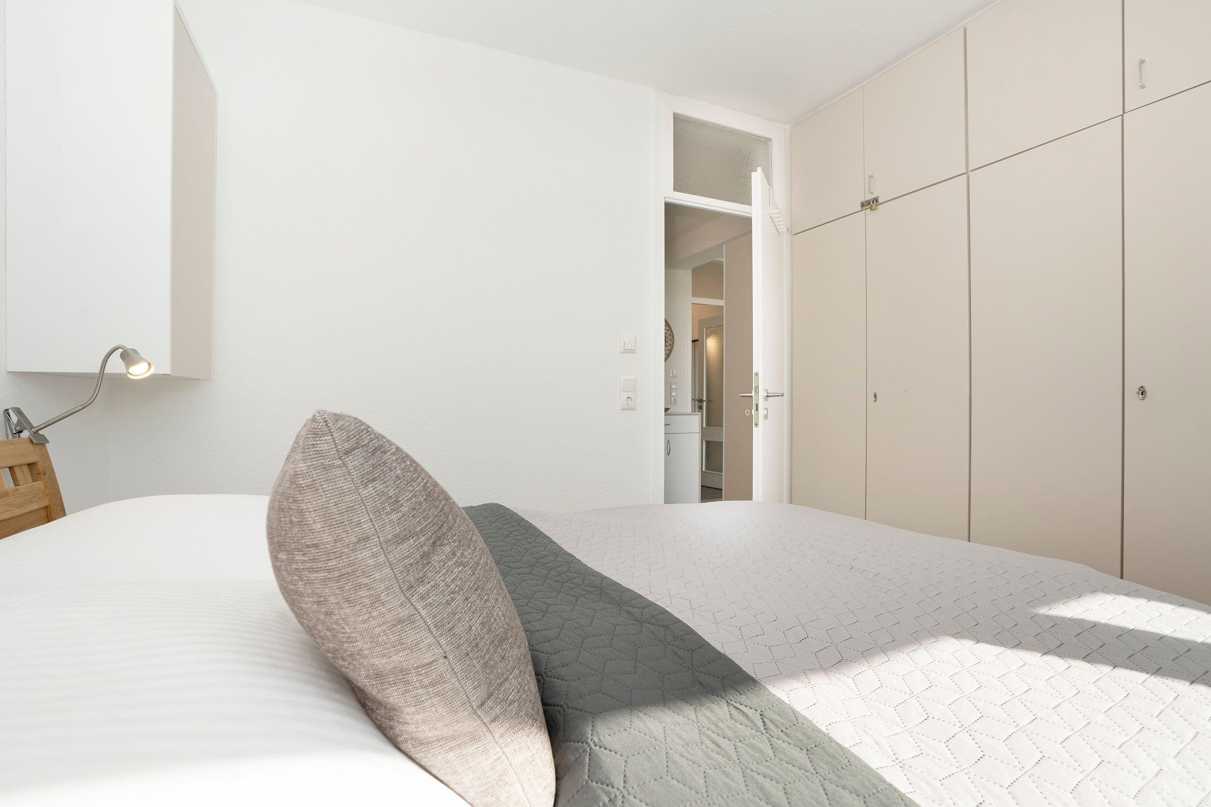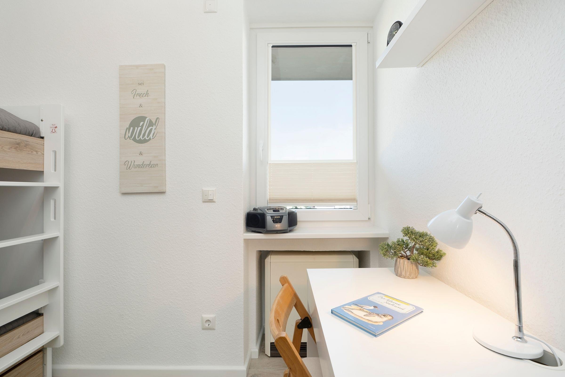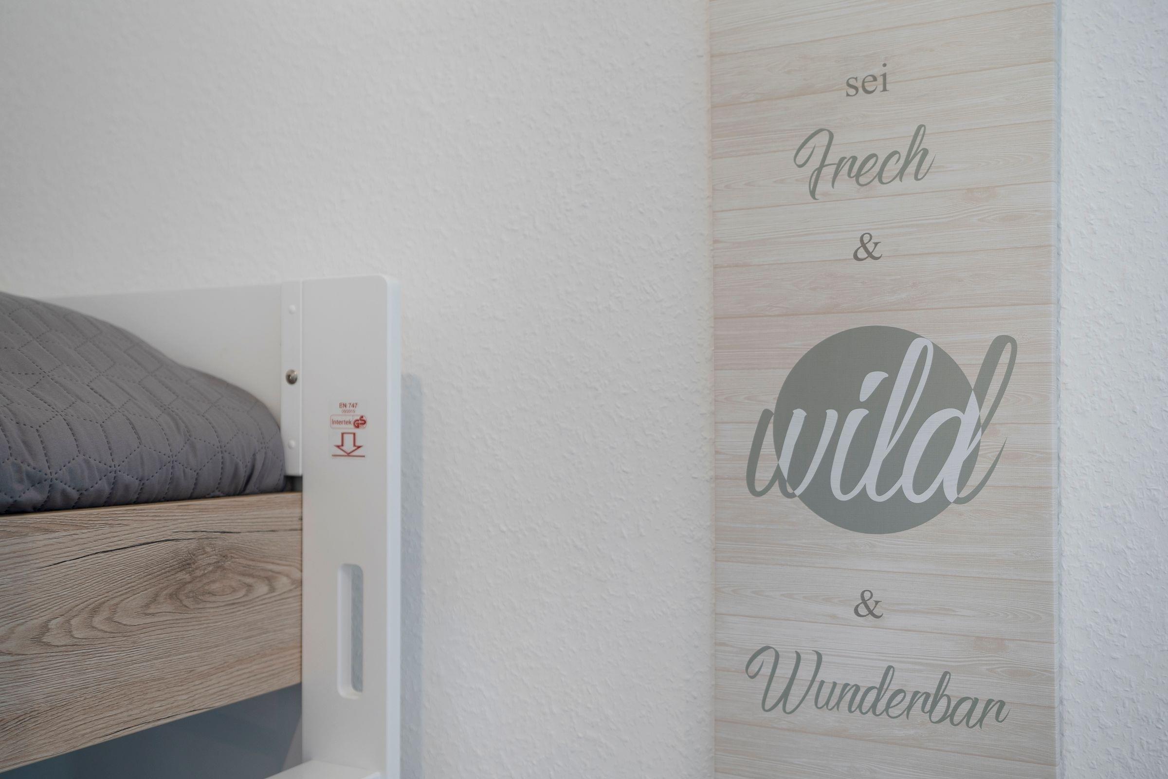 Im größeren der beiden Schlafzimmer befindet sich ein Doppelbett (2x 80x200cm) und ein Kleiderschrank, das Kinderzimmer ist mit einem praktischen Etagenbett (je 90x200 cm) ausgestattet. Das helle Bad empfängt Sie mit Waschtisch, Dusche sowie beheizbarem Handtuchhalter. In der kälteren Jahreszeit sorgt eine Fußbodenheizung (nicht im Schlafzimmer) für angenehme Temperaturen.