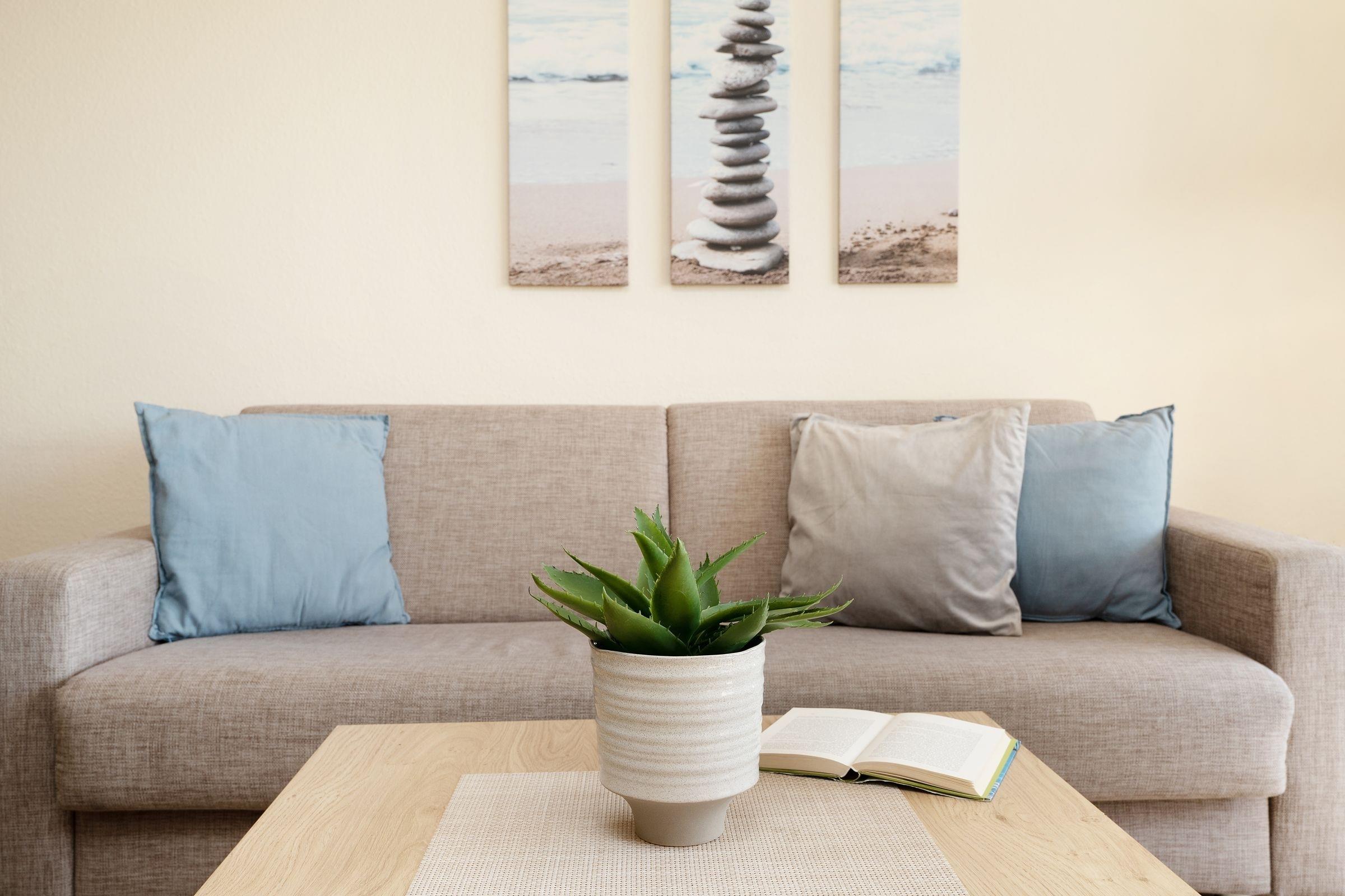 Wohnzimmer: Schlafsofa, Verdunkelung: Vorhänge