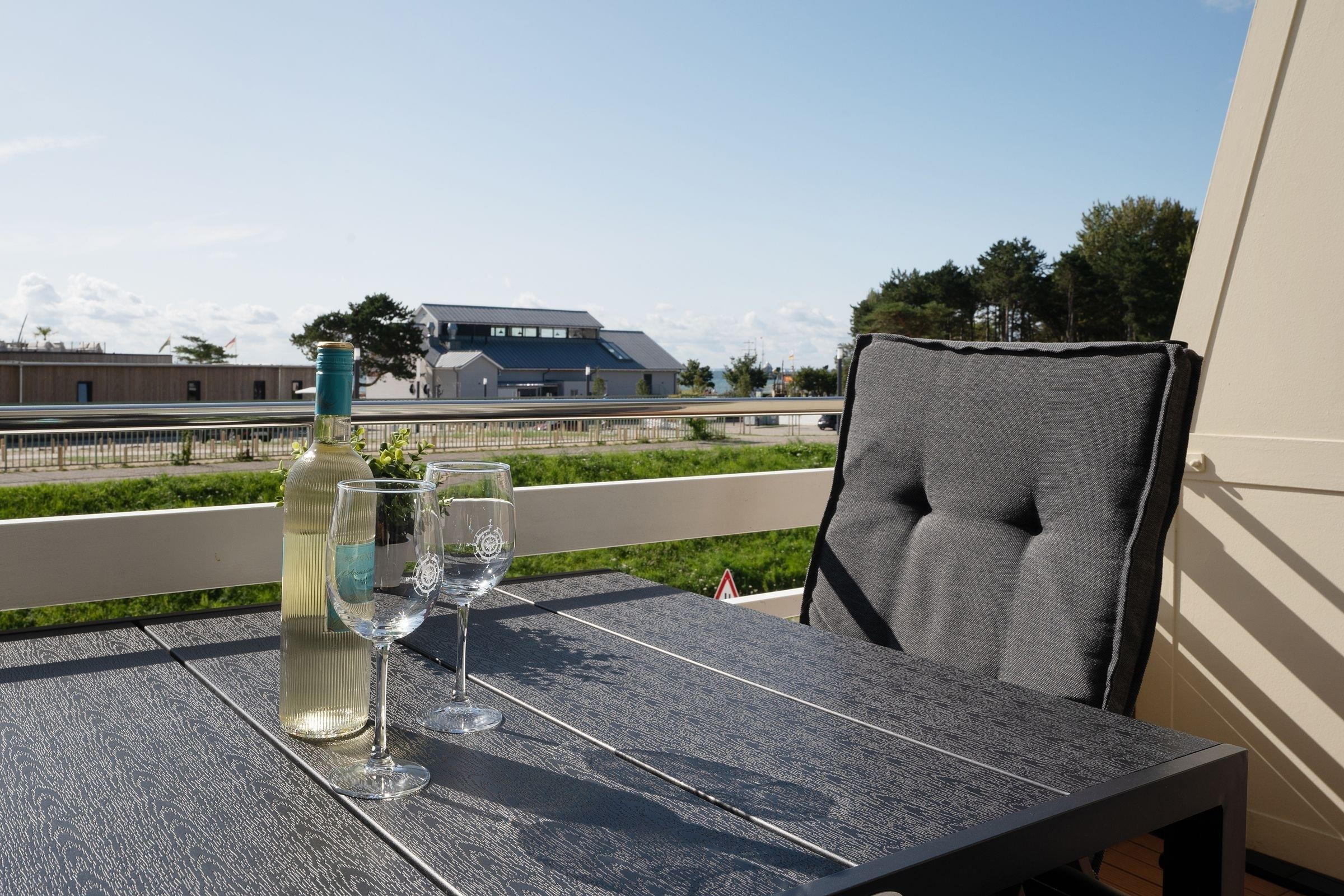 Moderne Ferienwohnung mit Meerblick, Balkon und Fahrstuhl in Grömitz, ideal für entspannte Urlaubstage an der Ostsee.
