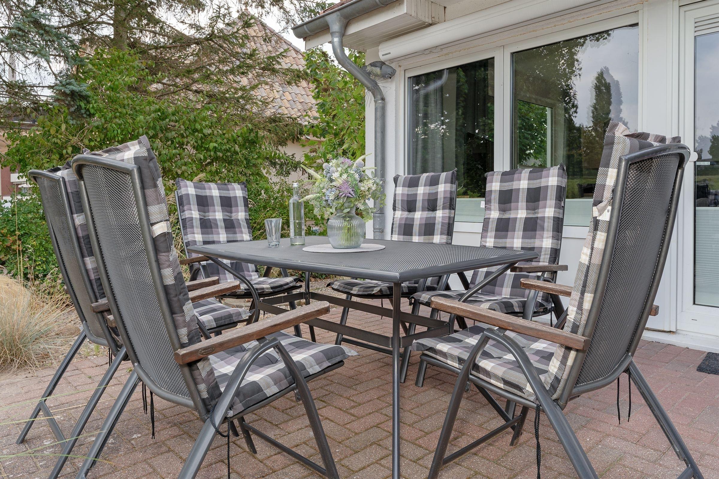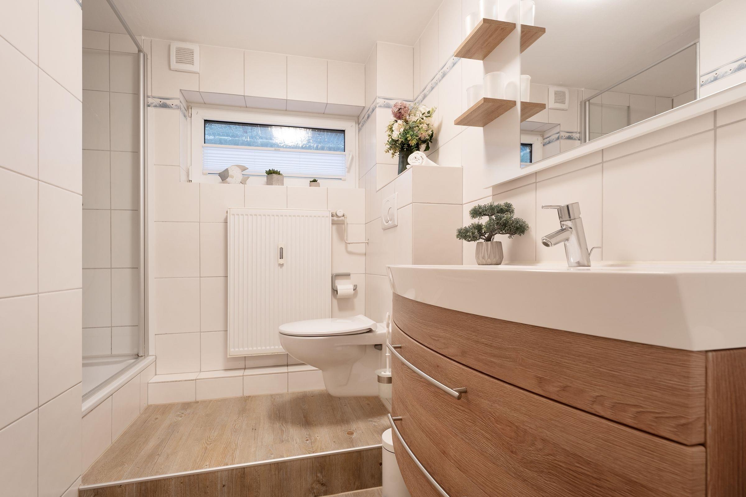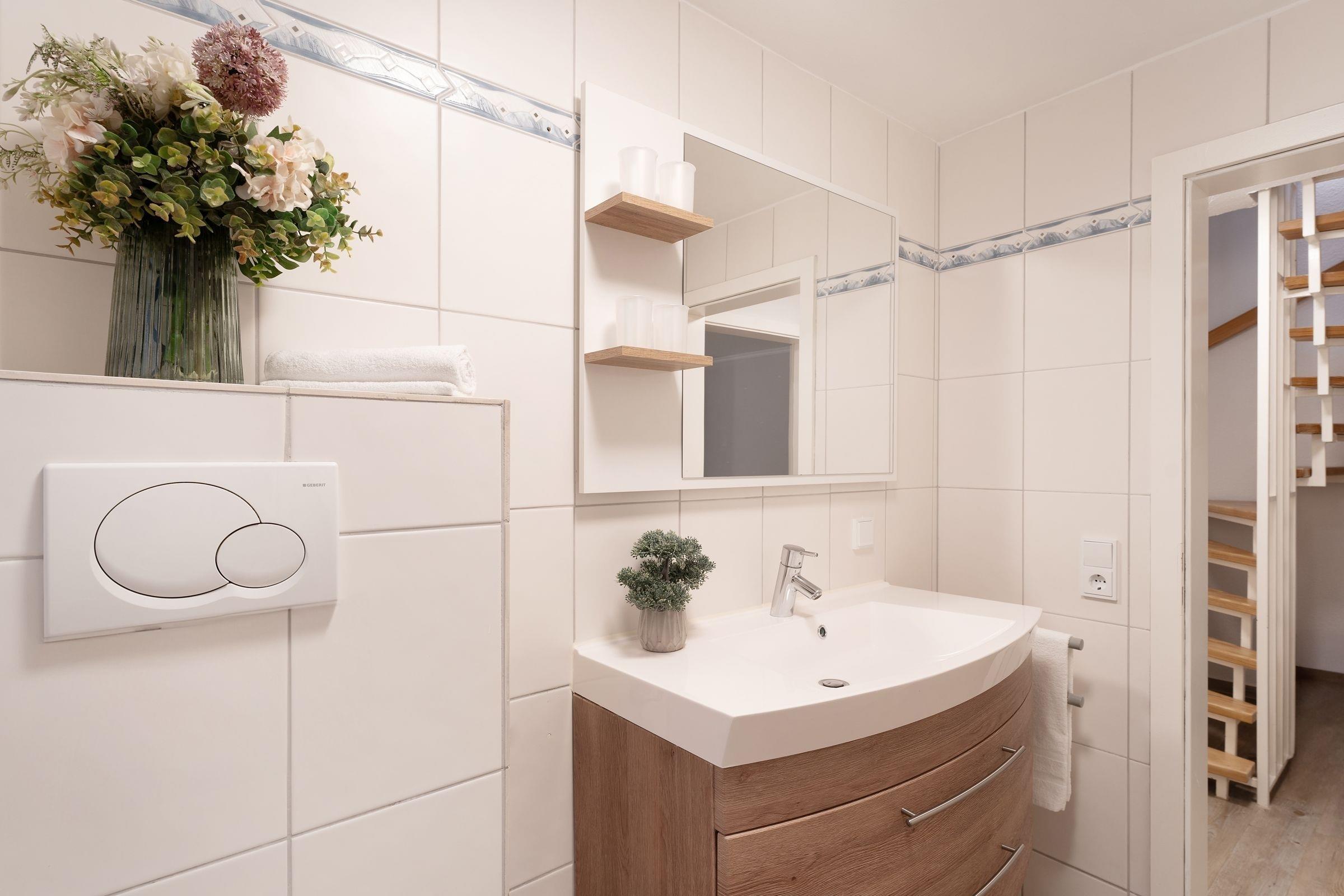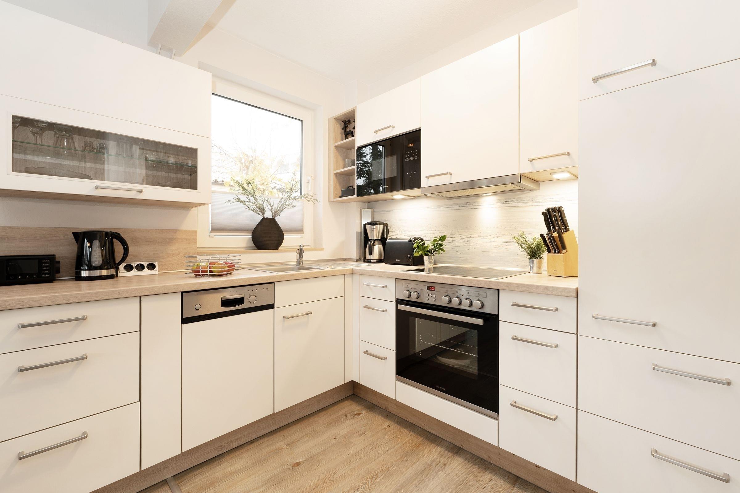 Starten Sie entspannt mit einem leckeren Kaffee in den Urlaubstag, den Sie in der gut ausgestatteten Küche zubereiten können. Die Küchenzeile ist zum Wohnbereich hin offen, sodass Sie sich auch während des Kochens mit Ihren Reisebegleitern unterhalten können. Neben einem komfortablen Wohnzimmerbereich verfügt Ihr Urlaubsdomizil über 3 Schlafzimmer: Eines der Schlafzimmer befindet sich im Souterrain-Bereich und besticht mit einem geräumigen Boxspringbett (180 x 200 cm). In den beiden weiteren, im Souterrain sowie im Erdgeschoss befindlichen Schlafzimmern sorgen jeweils etwas kleinere Boxspringbetten (160 x 200 cm) für einen ruhigen Schlaf. Nach einer erholsamen Nacht können Sie sich ohne Wartezeiten in den zwei Duschbädern für das Frühstück auf der 10 qm großen Terrasse fertig machen. Ein Highlight ist sicher der gemütliche Strandkorb.