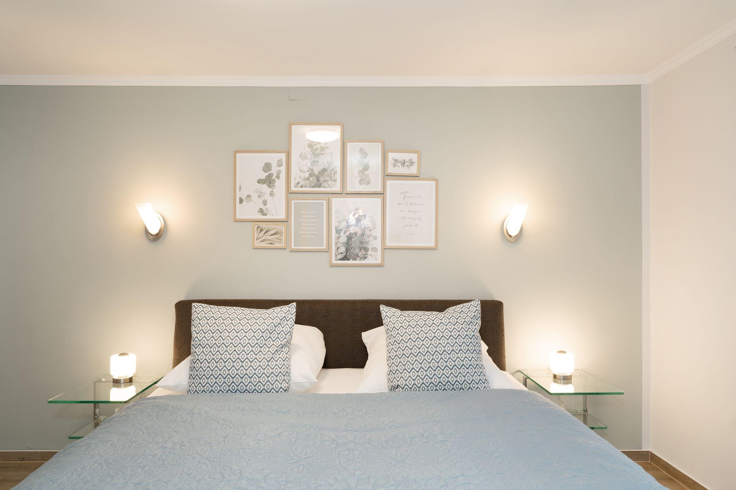 Schlafzimmer 1 (EG): 1 Boxspringbett (160x200 cm), Außenrolläden, TV