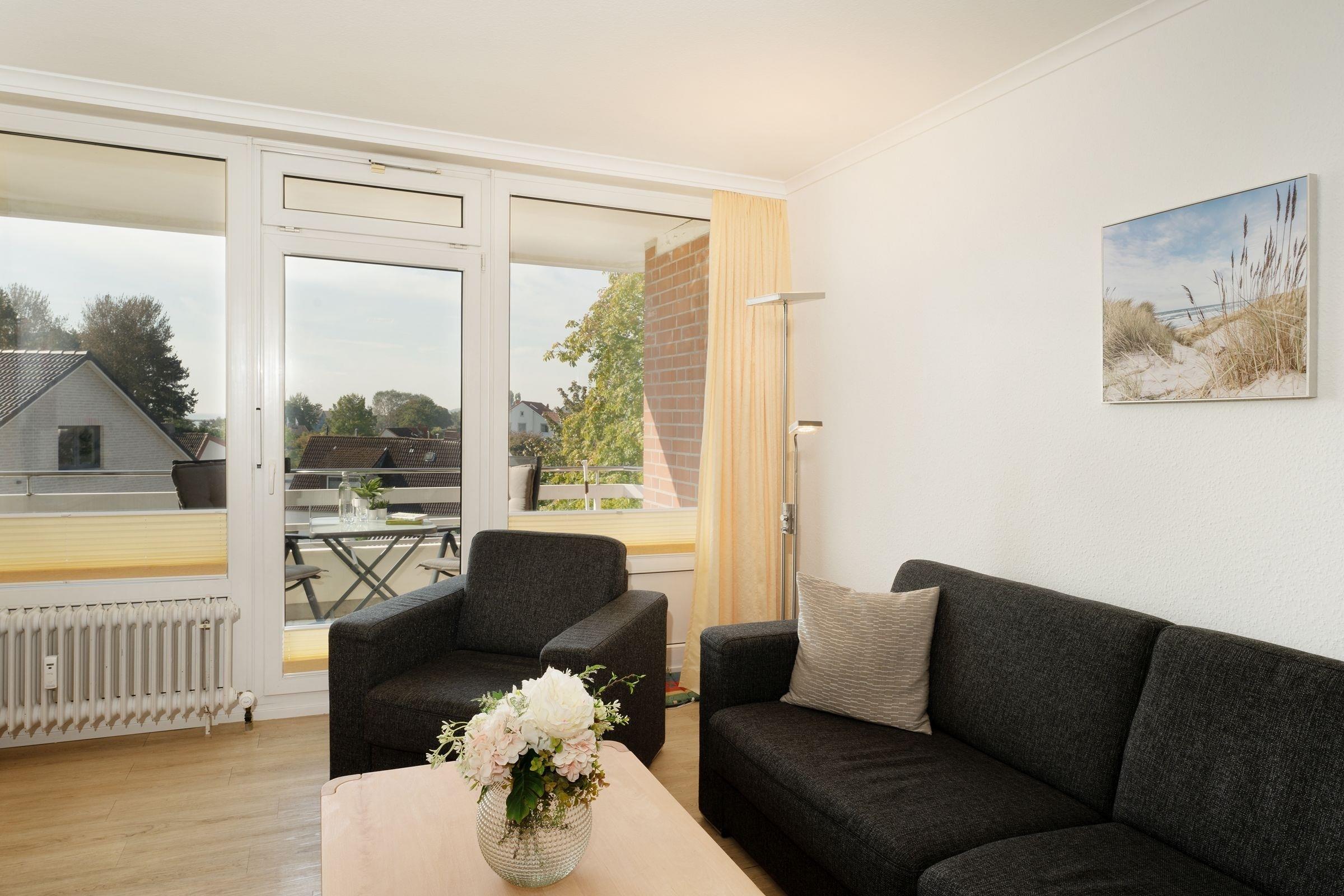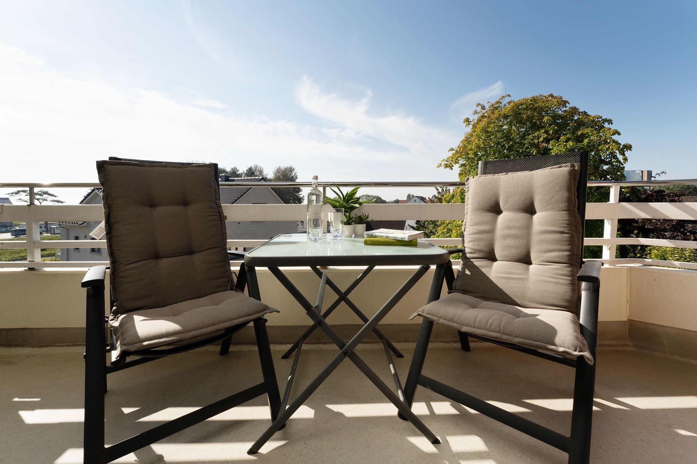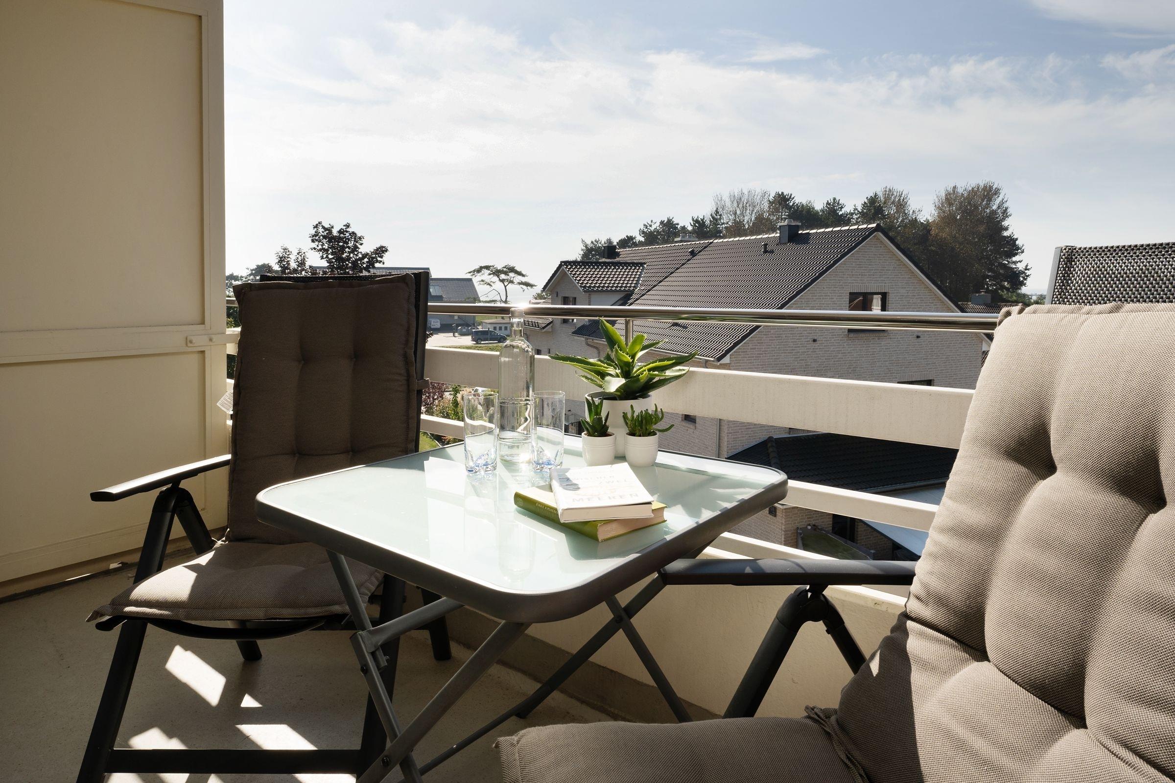 Urlaub in der besten Lage von Grömitz: moderne 2-Zimmer-Ferienwohnung im 3. Stock mit Balkon, Meerblick, Fahrstuhl und einer Wohnfläche von 51 m² für bis zu 4 Personen.