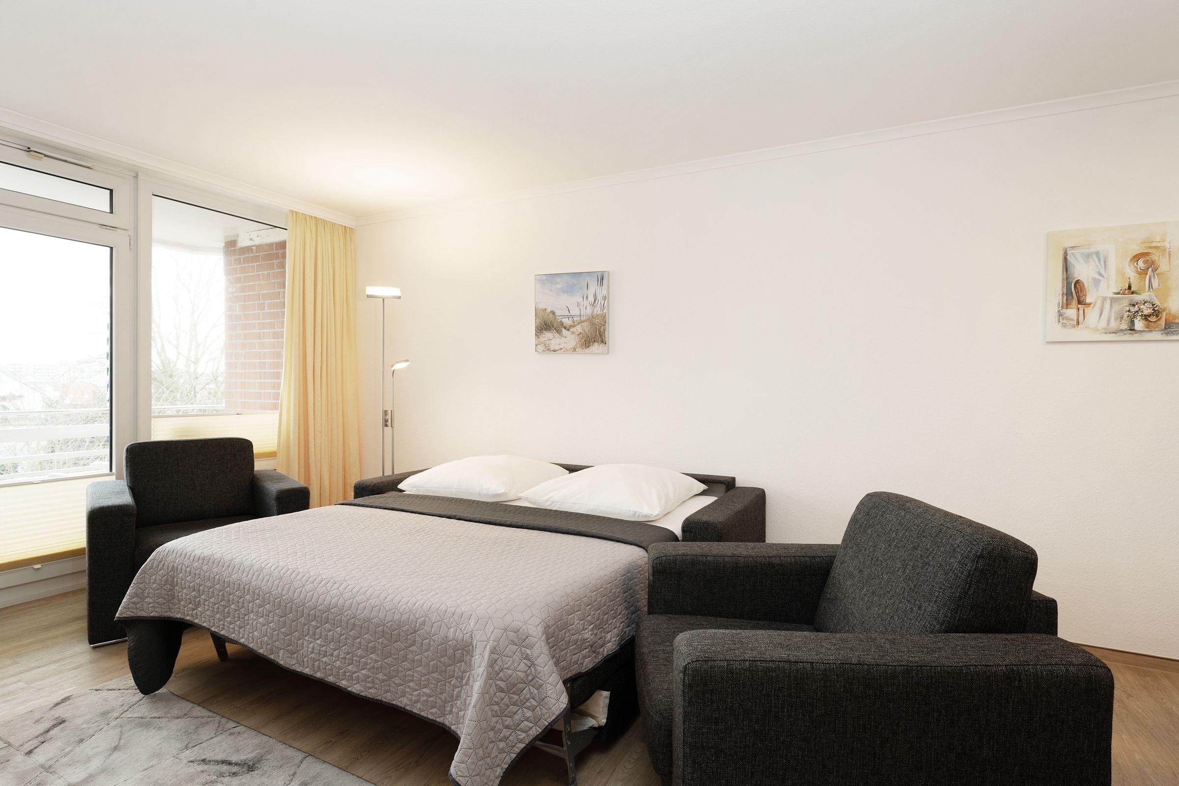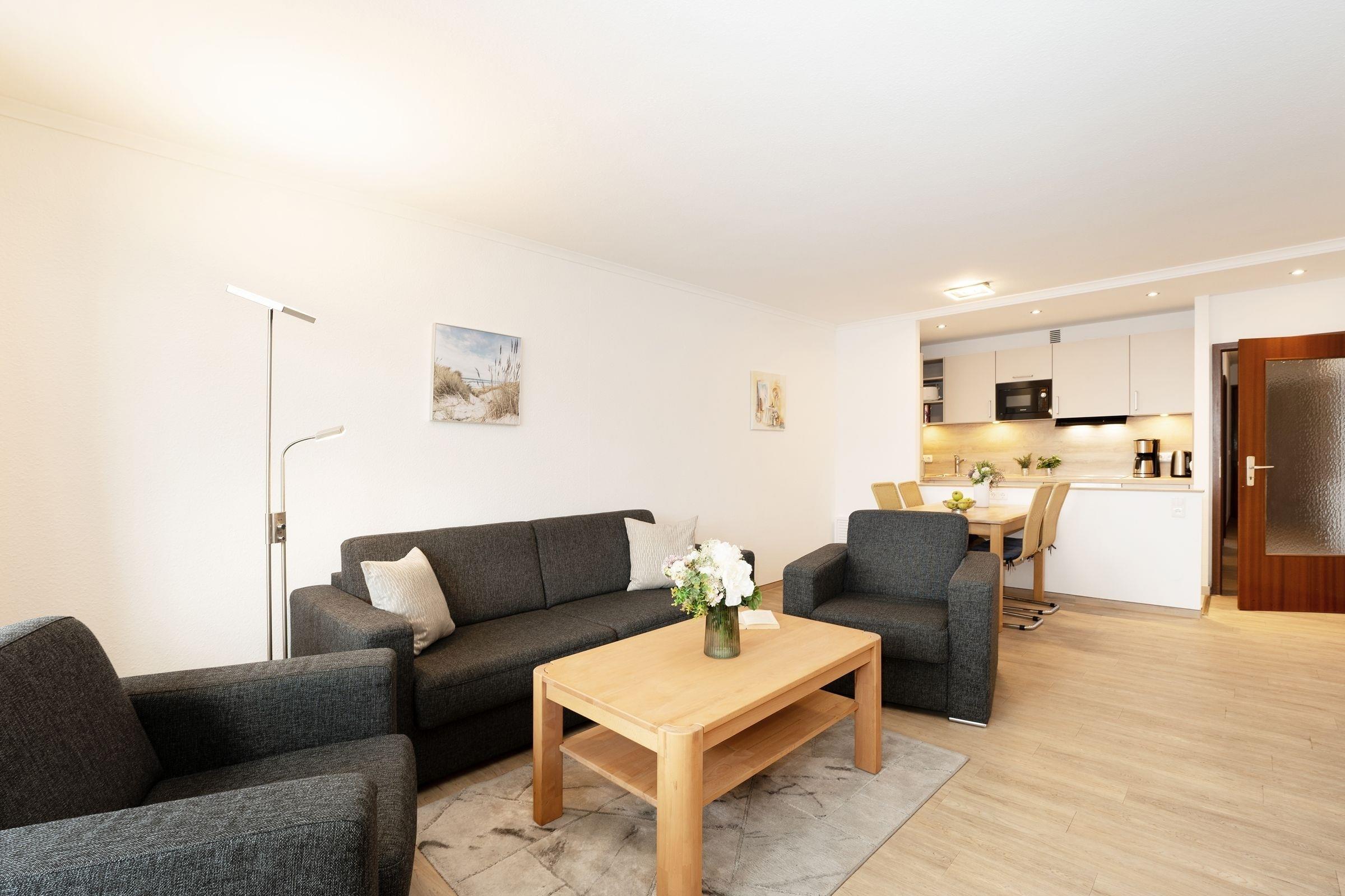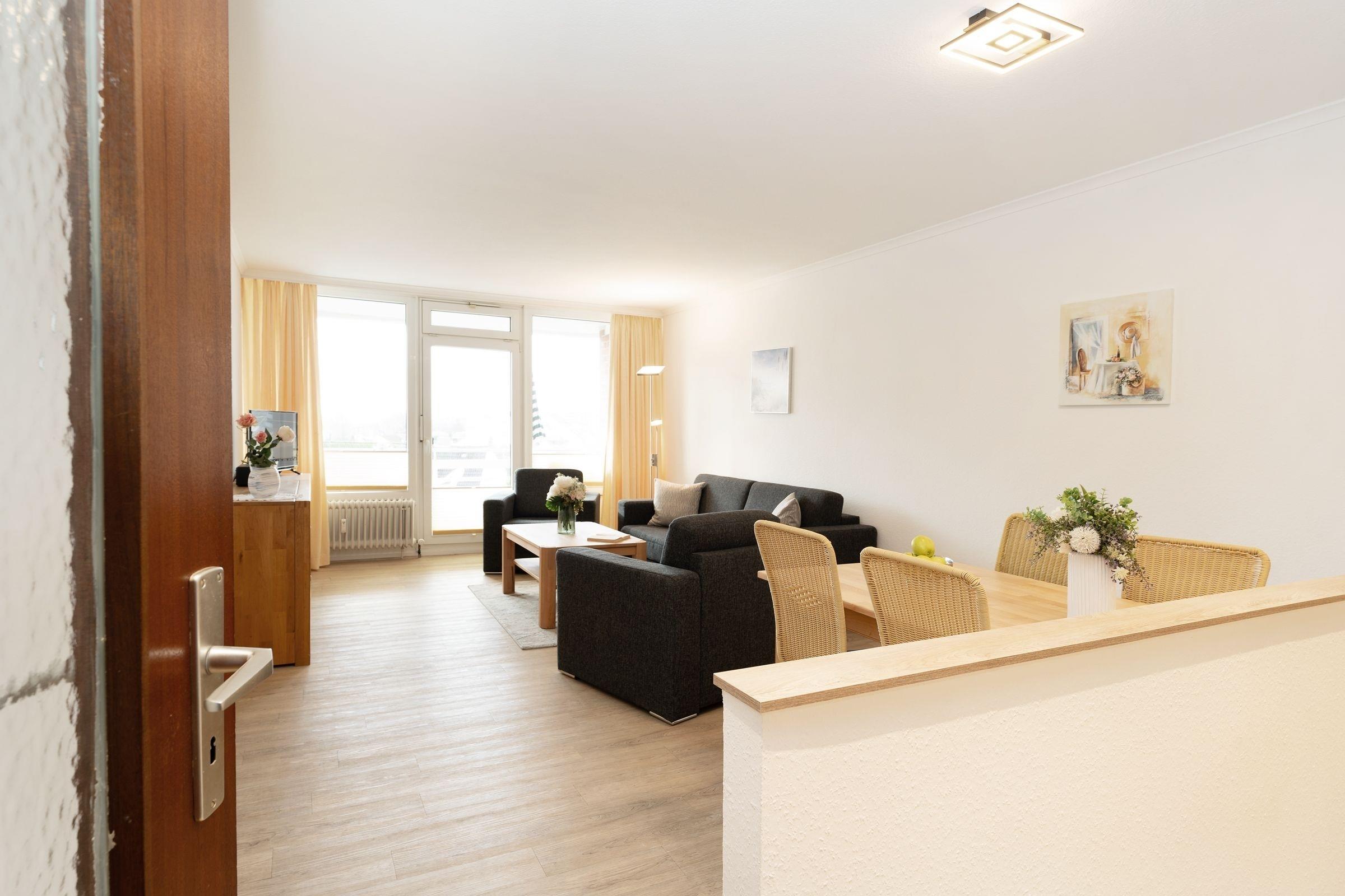 Urlaub in der besten Lage von Grömitz: moderne 2-Zimmer-Ferienwohnung im 3. Stock mit Balkon, Meerblick, Fahrstuhl und einer Wohnfläche von 51 m² für bis zu 4 Personen.