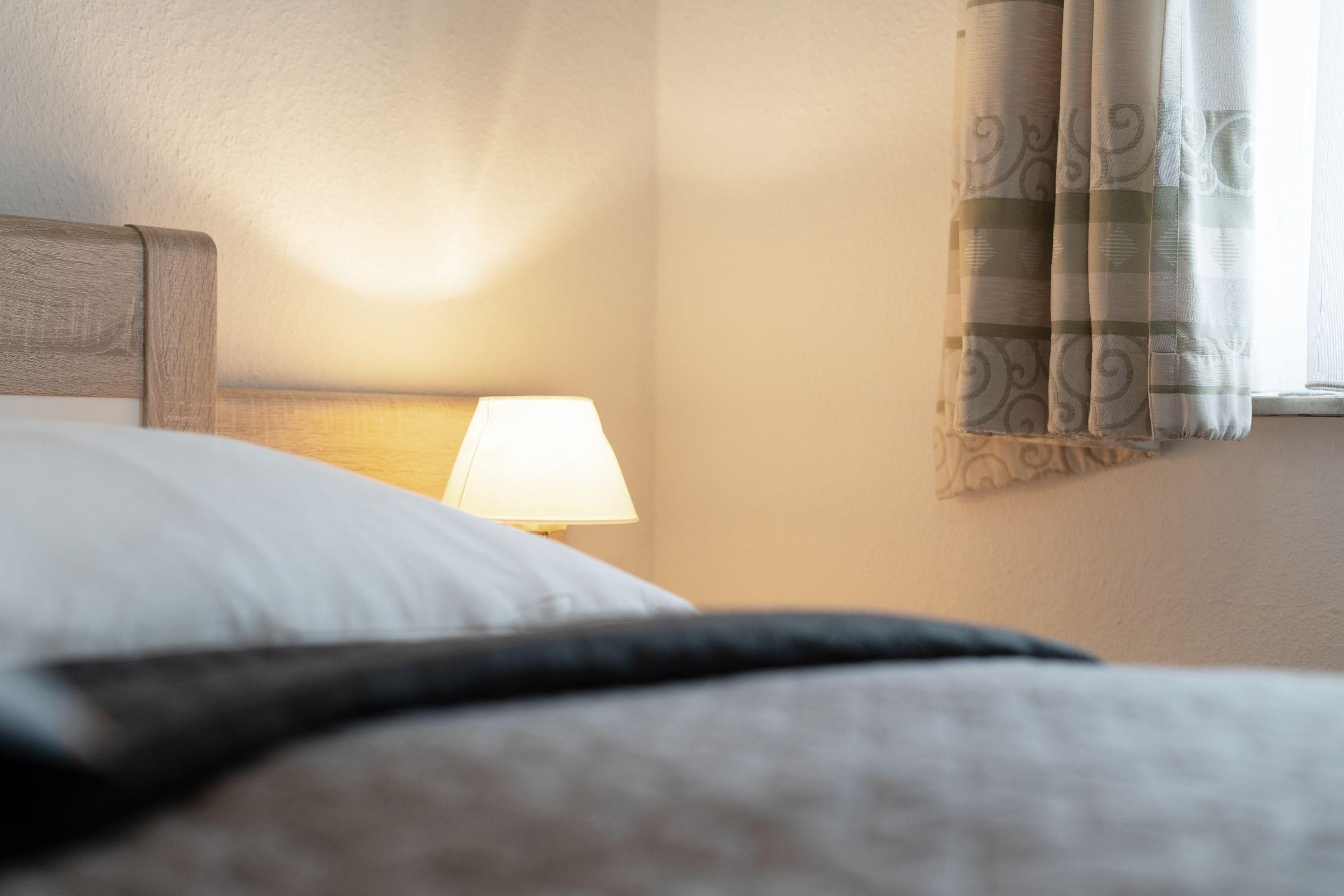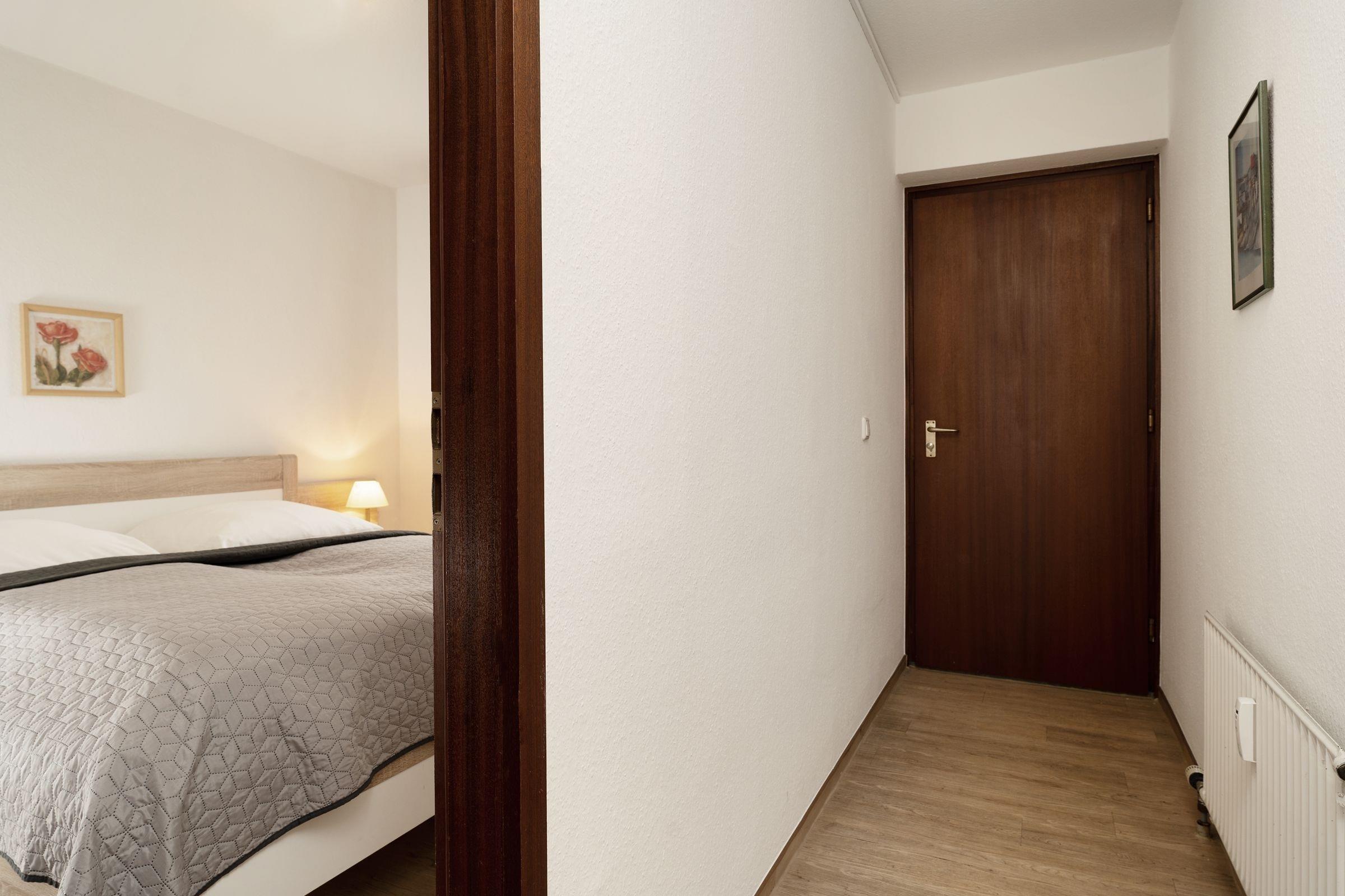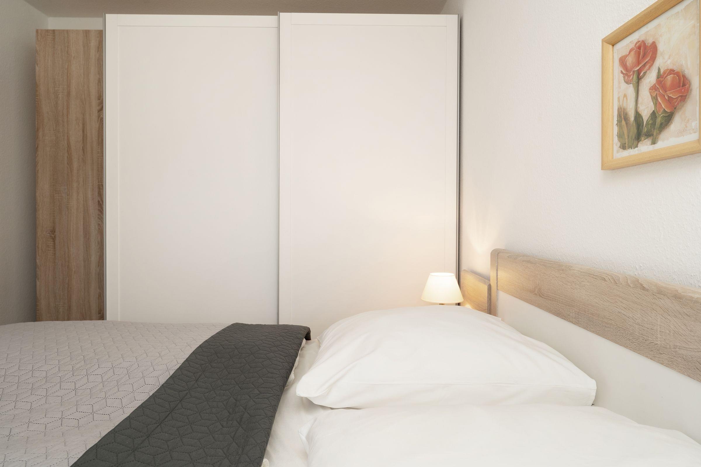 Schlafzimmer: Doppelbett (2x 90x200 cm), Kleiderschrank, TV, Verdunklungsmöglichkeit: Vorhänge, kein Platz für Babybett vorhanden