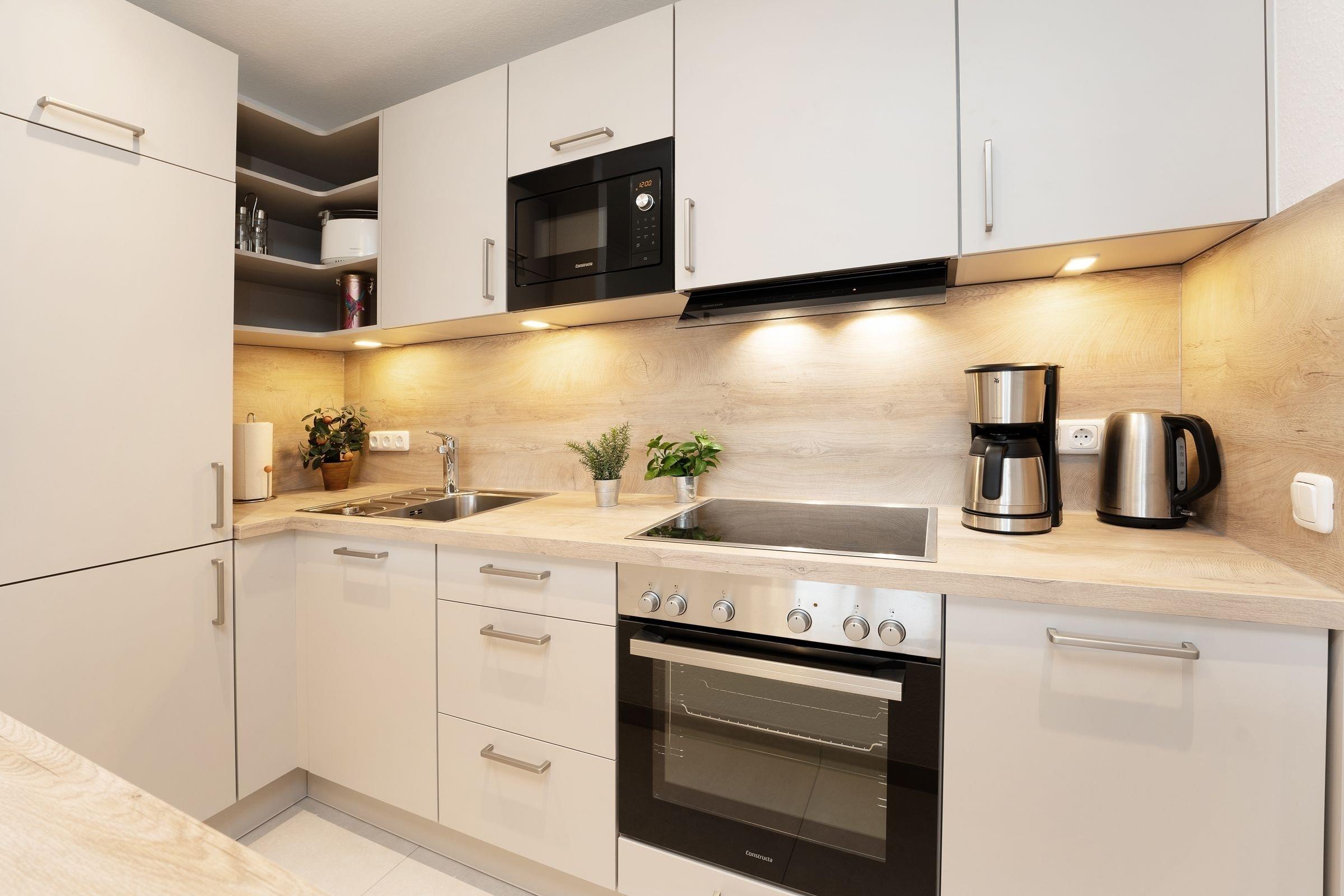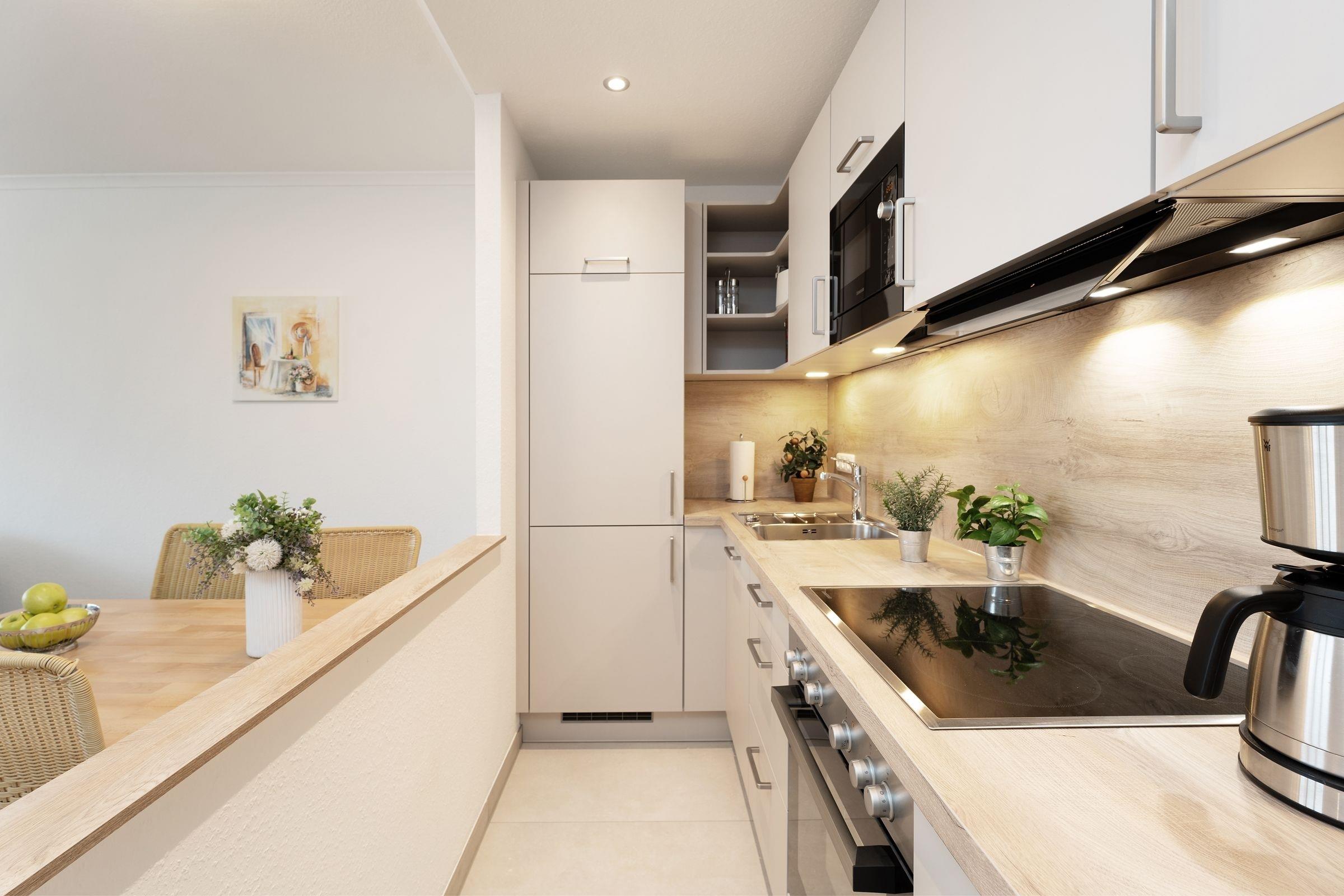Eine echte Wohlfühl-Oase in der 1. Reihe erwartet Sie hier – der Ostseestrand ist nur rund 100 Meter entfernt. Das Ferienobjekt mit dem passenden Namen Ostseezauber befindet sich in der gepflegten Ferienwohnanlage Belvedere. Kommen Sie herein und machen Sie es sich im geschmackvoll eingerichteten Wohnbereich gemütlich – oder genießen Sie Ihre Auszeit auf dem überdachten, möblierten Balkon. Beim Blick aufs Meer können Sie Ihren Alltag erst einmal hinter sich lassen und sich verschiedene Ausflüge entlang der Küste überlegen. Für die Selbstversorgung steht Ihnen die zum Wohnbereich hin offene, gut ausgestattete Küche mit Spülmaschine zur Verfügung. Nach einem erlebnisreichen Urlaubstag finden Sie Ihre Nachtruhe auf dem bequemen Schlafsofa (170x200 cm) im Wohnzimmer oder im Doppelbett (2x 90x200 cm) im Schlafzimmer. Hier befinden sich auch ein zusätzliches TV-Gerät. Das innenliegende Duschbad verfügt über einen Föhn, einen Kosmetikspiegel sowie einen Handtuchwärmer.