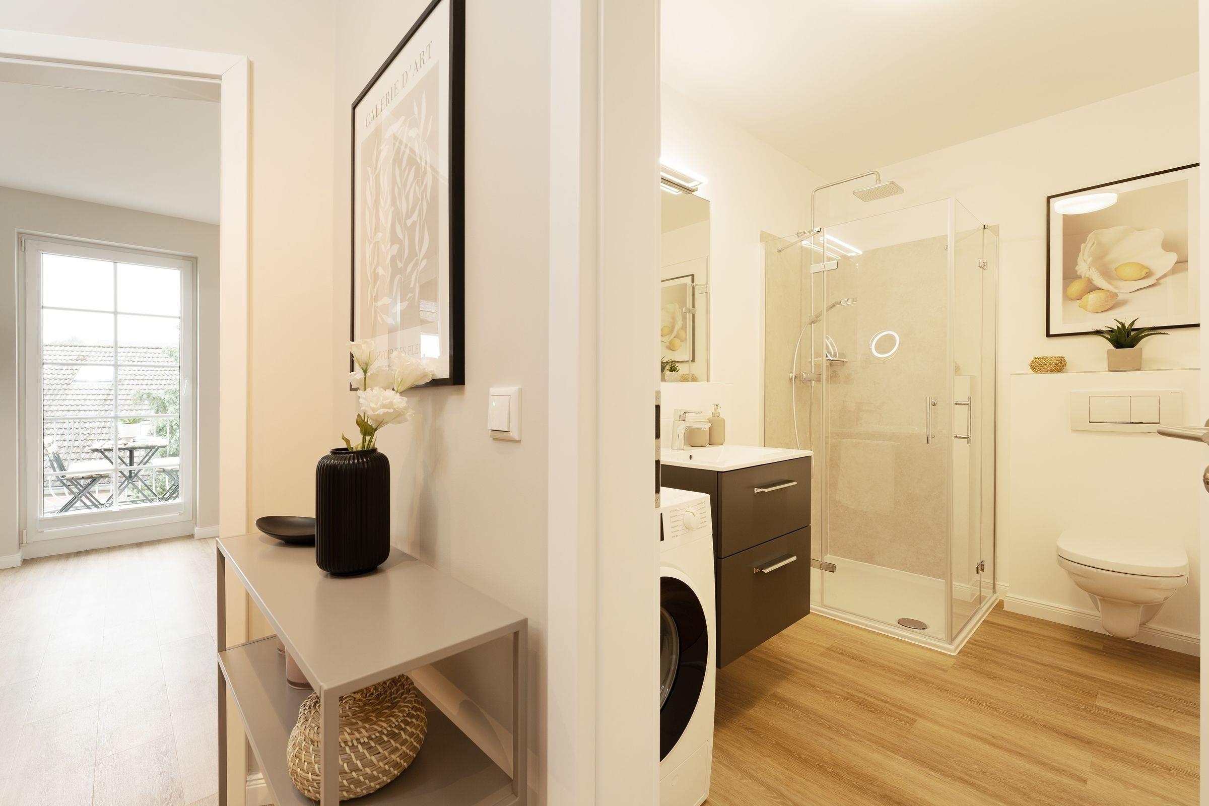 Diese schöne Ferienwohnung befindet sich in der gepflegten Wohnanlage Commodore und begrüßt Sie mit einem liebevoll eingerichteten Wohnbereich. Für die persönliche Unterhaltung sorgt ein Smart-TV (Streamingdienste zur Selbstanmeldung) sowie ein Bluetooth-Audiogerät. Der kleine, möblierte Balkon ist nach Nord-West ausgerichtet und verspricht ein gemütliches Beisammensein in der Abendsonne. Leckere Speisen dazu können Sie wunderbar in der separaten Küche zaubern. Die gute Ausstattung mit Annehmlichkeiten wie Nespresso-Maschine und Geschirrspüler wird Sie sicher erfreuen. Nächtigen können Sie im bequemen Doppelbett (180x200 cm) im Schlafzimmer. Hier befindet sich auch ein zusätzliches TV-Gerät. Oder auf dem Schlafsofa (ca. 160x197 cm) im Wohnzimmer. Das innenliegende Bad verfügt über eine bodengleiche Dusche, Föhn, Kosmetikspiegel und Handtuchwärmer.