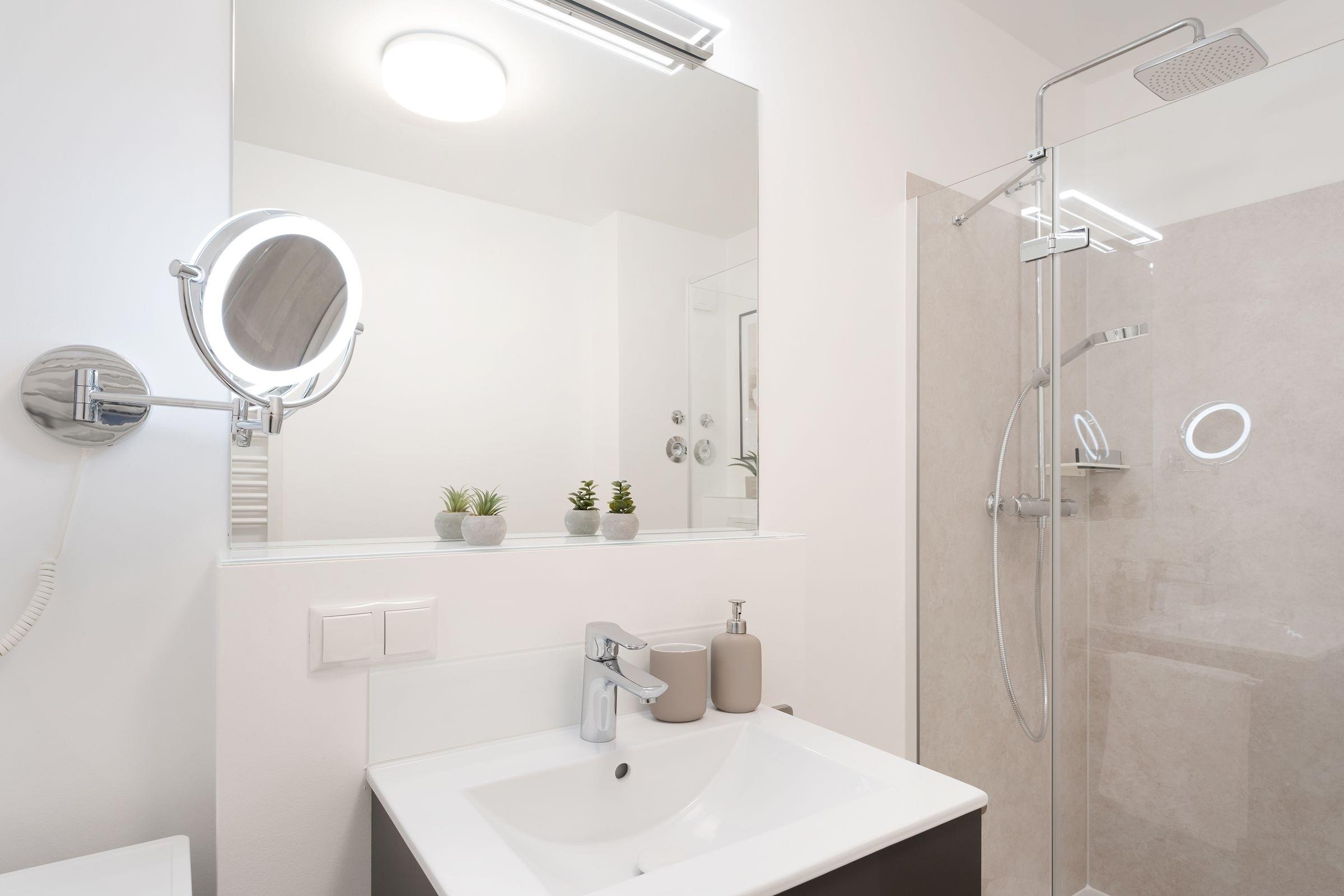 Ein PKW-Tiefgaragenstellplatz ist für Sie reserviert. Im Badezimmer steht Ihnen eine eigene Waschmaschine zur Verfügung. WLAN ist inklusive.