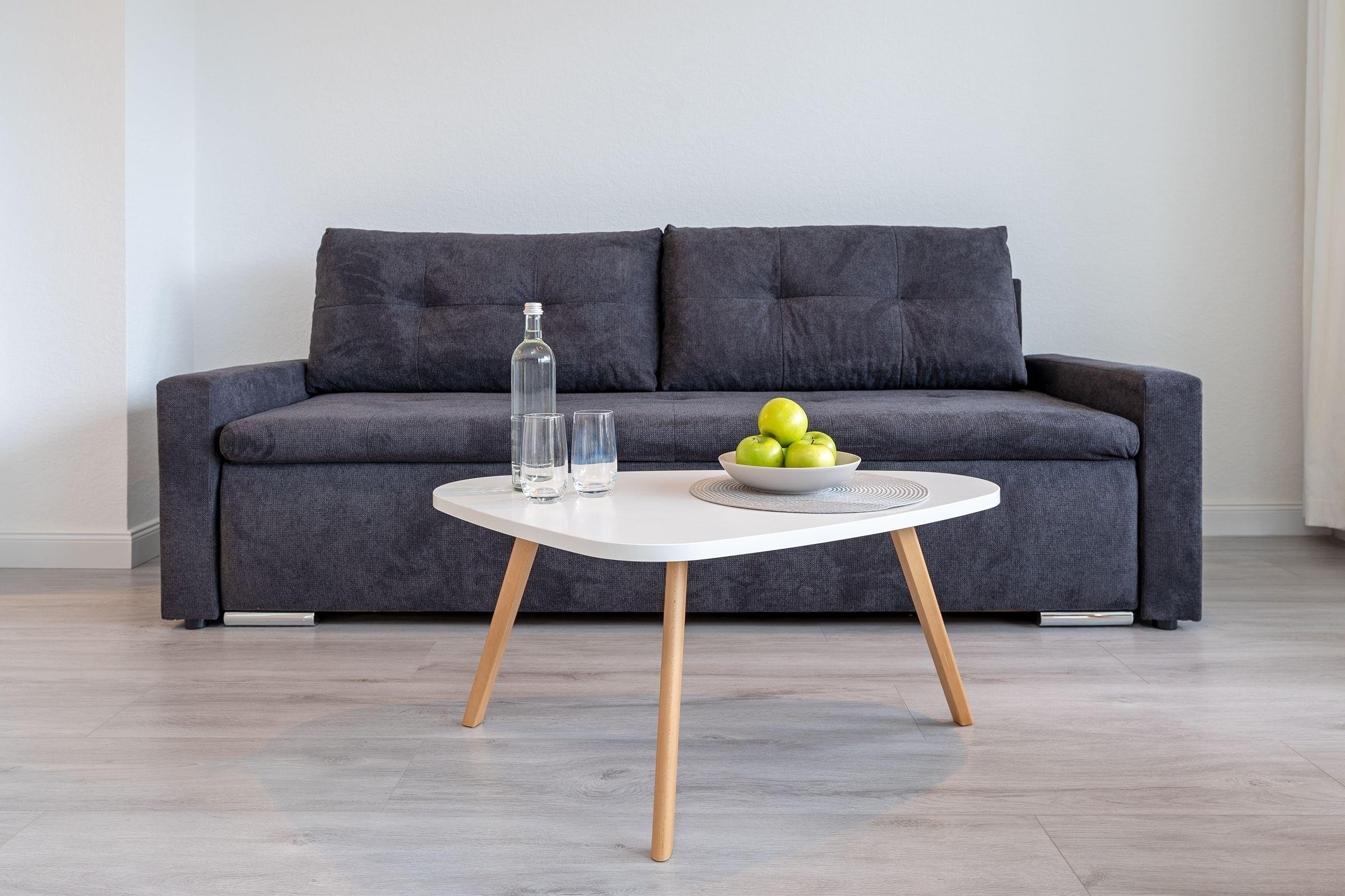 Wohnzimmer: 1 Schlafsofa (160x200 cm), TV, Verdunkelung: Gardine, Platz für Babybett vorhanden