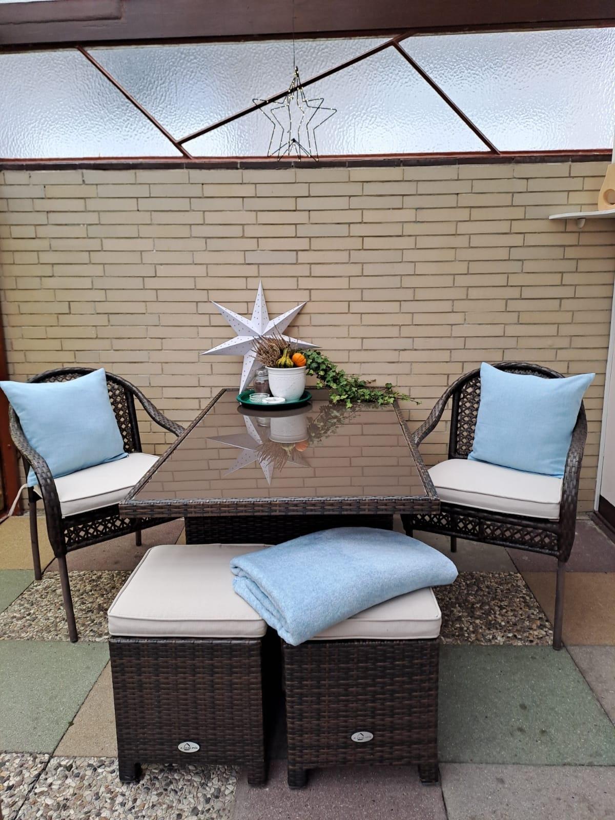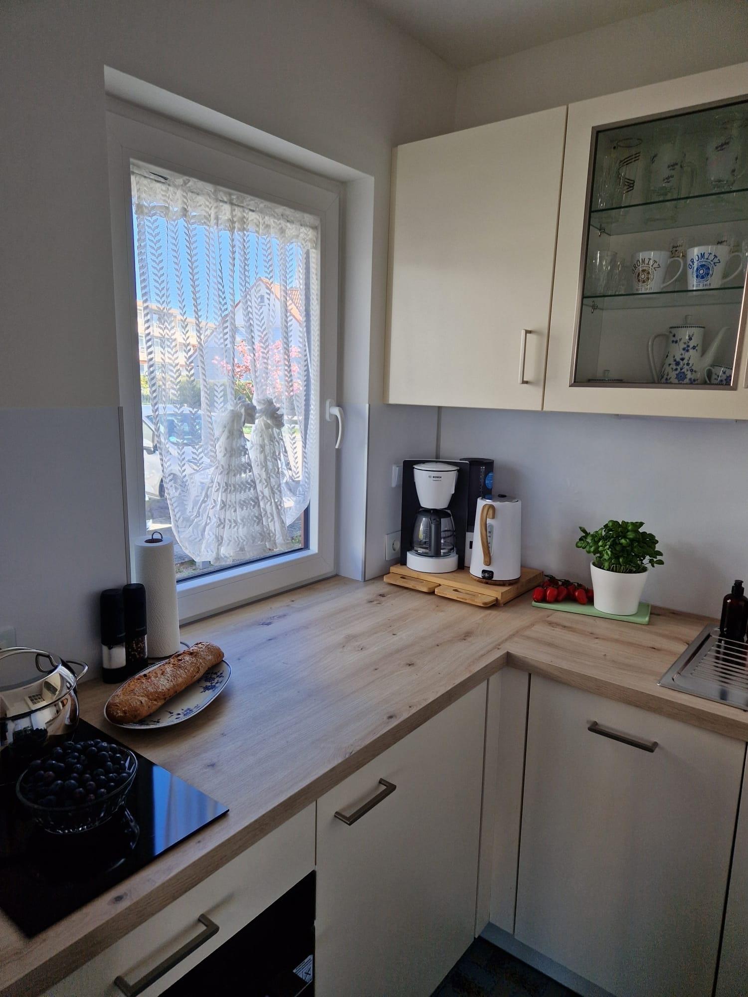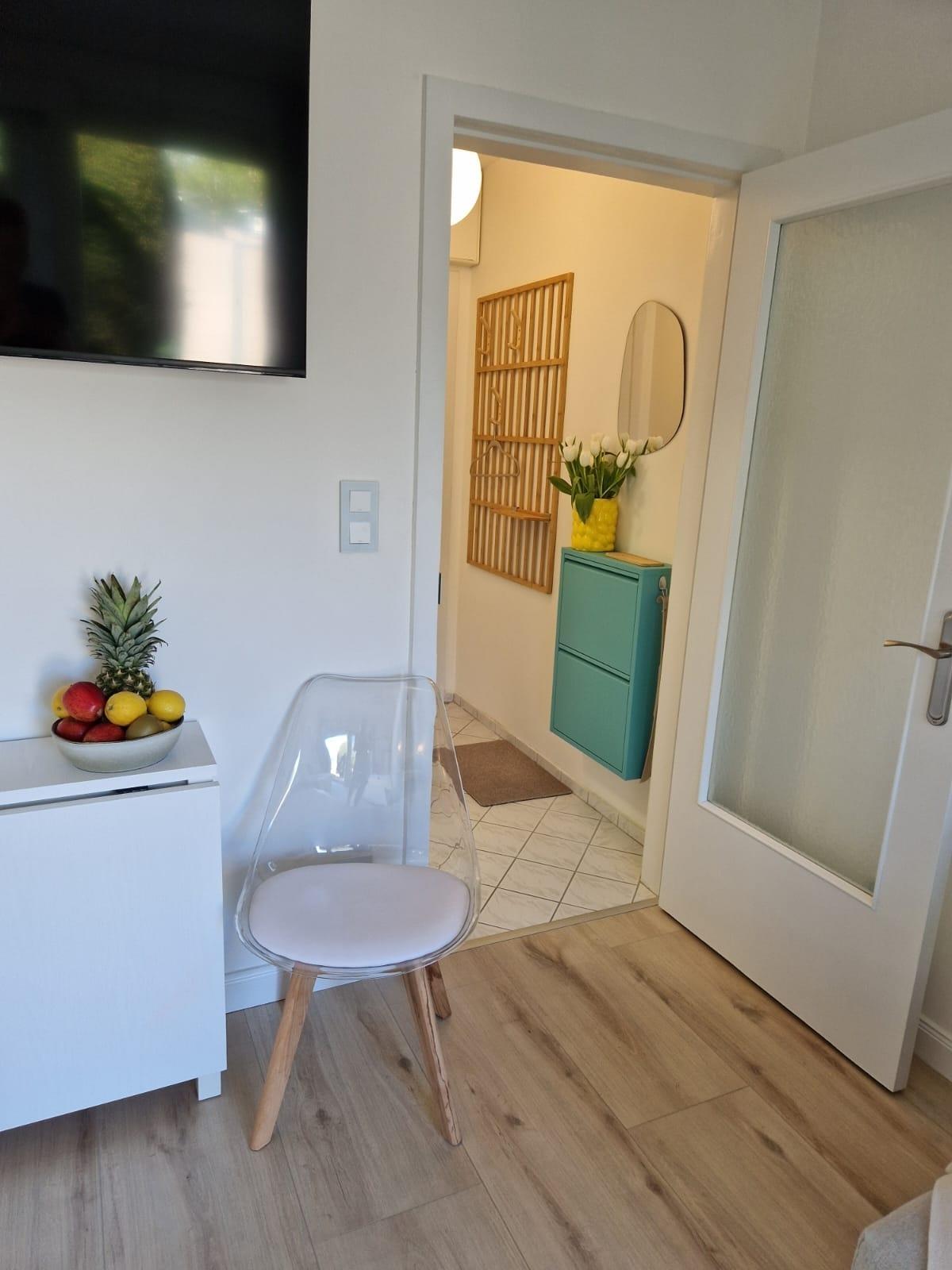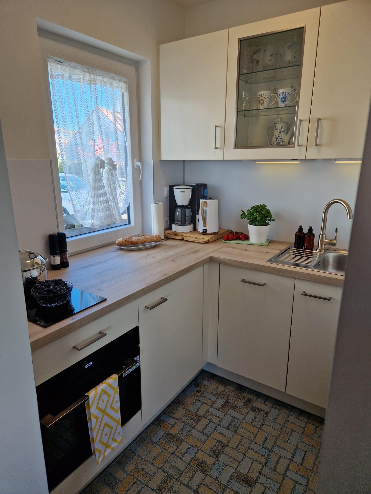 Die stilvoll eingerichtete 1-Zimmer-Ferienwohnung befindet sich im Erdgeschoss und bietet Platz für max. 3 Personen. Die Wohnfläche der ca. 26 m² großen Unterkunft verteilt sich auf ein Wohn-/Schlafzimmer sowie auf eine separate Küche, dem Badezimmer und einem Flur. Das Wohn- / Schlafzimmer ist mit einem Doppelbett 160 x 200 cm und einem gemütlichen Sofa ausgestattet, das man auch zum Bett ausziehen kann (Schlafgröße 140 x 190 cm) , auch ein Kleiderschrank und der Esstisch finden hier Platz. Vom Hauptraum aus, gelangt man auch in den traumhaften und geschmackvoll gestalteten Garten (280 m2), dem Bereich zum Relaxen und der Überdachten Terrasse (7 m2) mit gemütlichen Loungemöbeln. Die separate Küche ist u.a. mit 2 Kochfeldern, Backofen, Kühlschrank, Gefrierfach, Mikrowelle, Toaster und Kaffeemaschine ausgestattet.