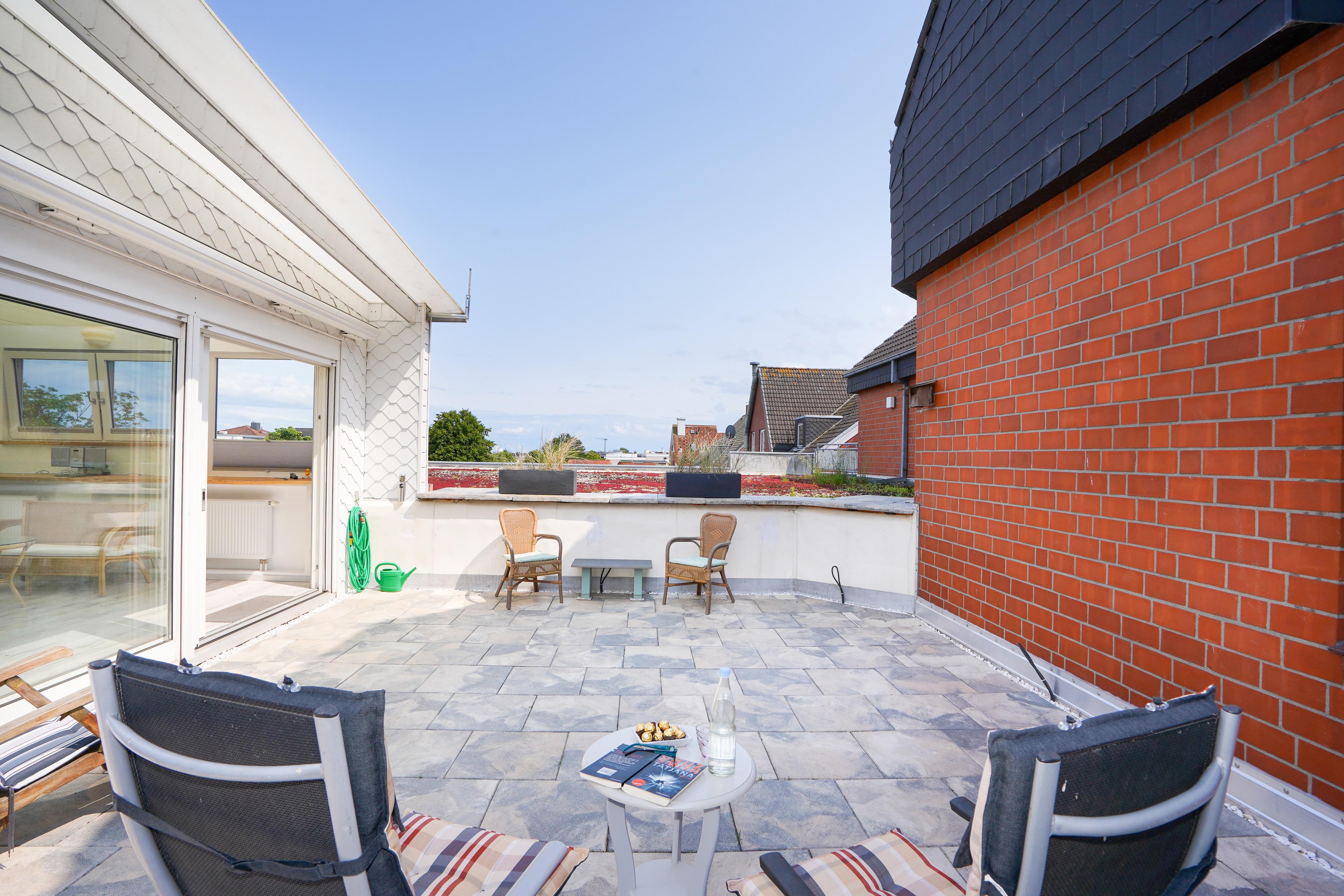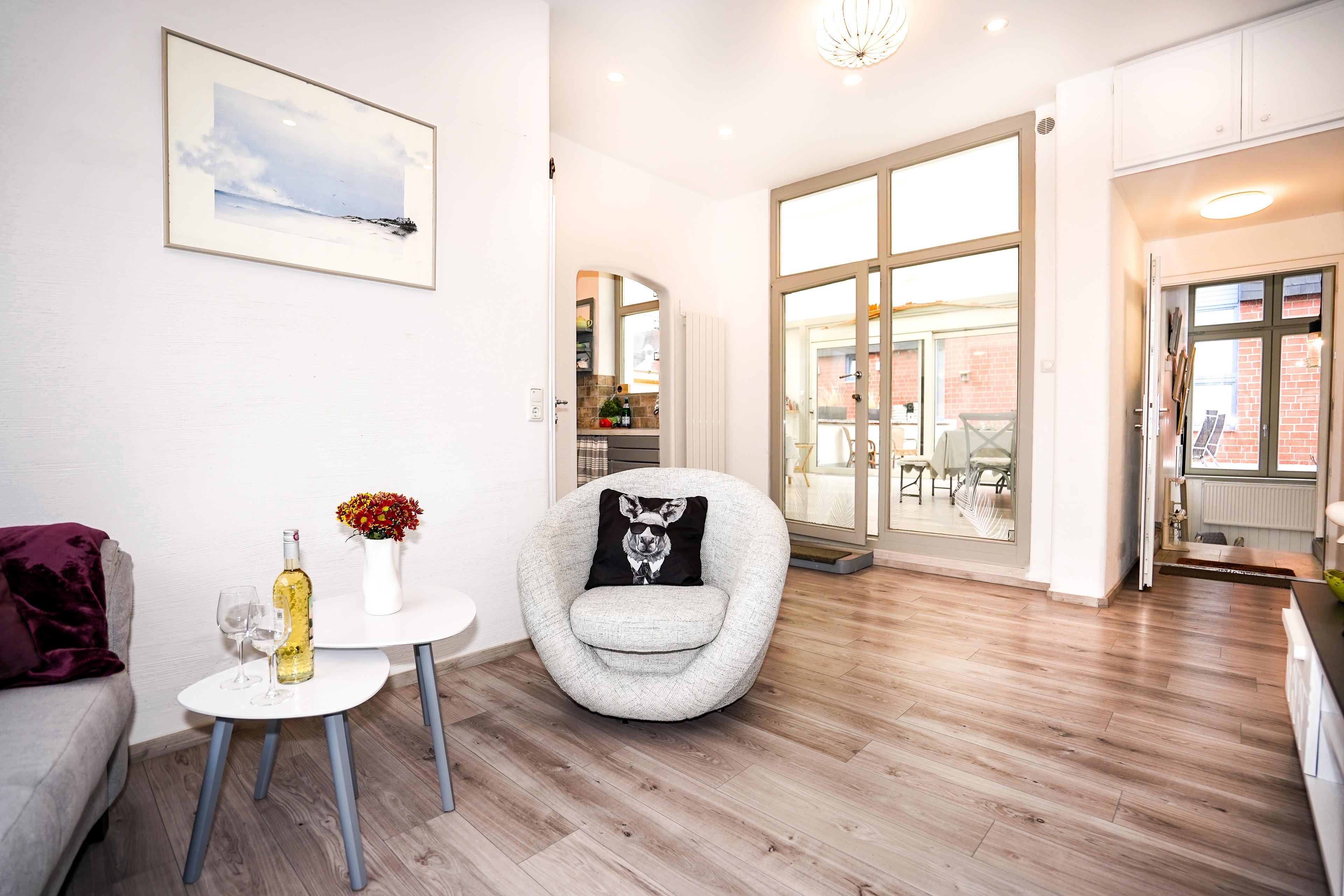 Ein Highlight der Ferienwohnung ist der großzügige, lichtdurchflutete Wintergarten, der auf eine private Terrasse (ca. 30qm) führt. Hier können Sie die Sonne entspannen und die frische Luft genießen. Der Wintergarten ist ausgestattet mit einer stabilen Wirtshaus Garnitur in Wohnqualität. Terrassenmöbel sind vorhanden. Zusätzlich bietet die Wohnung einen kostenfreien Stellplatz sowie einen Fahrradkeller (über die Tiefgarage zu erreichen) für Ihre Räder. Ein Treppenlift sorgt für barrierefreien Zugang – so können Sie Ihren Aufenthalt in vollen Zügen genießen.