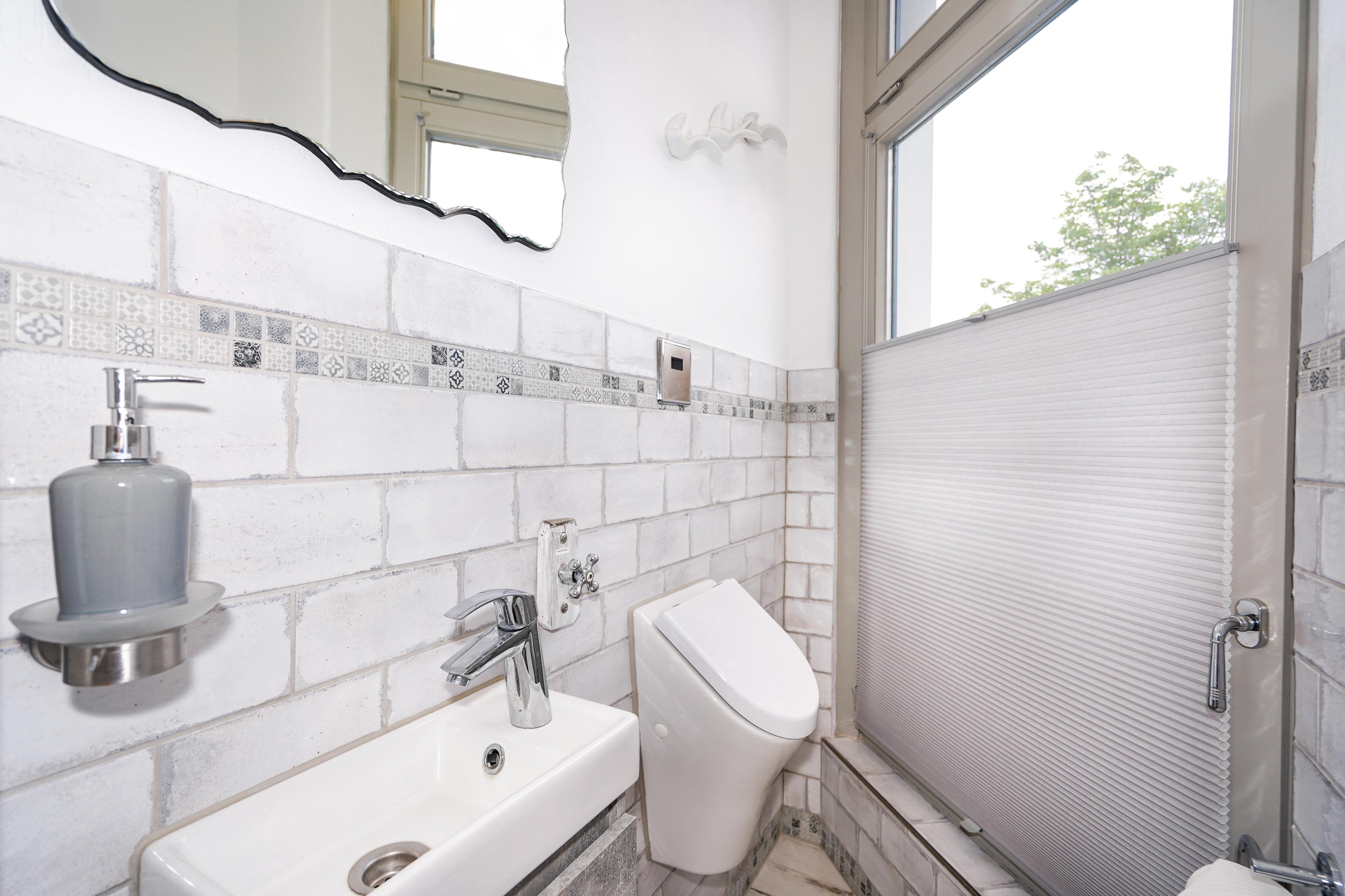 Für die praktische Nutzung steht Ihnen ein kleines Gäste-WC zur Verfügung, während das angrenzende Duschbad mit Fenster zusätzlichen Komfort bietet. Die separate, voll ausgestattete Küche lässt keine Wünsche offen. Sie verfügt über moderne Geräte wie einen Backofen, eine Mikrowelle und einen Geschirrspüler – alles, was Sie brauchen, um leckere Mahlzeiten zuzubereiten.