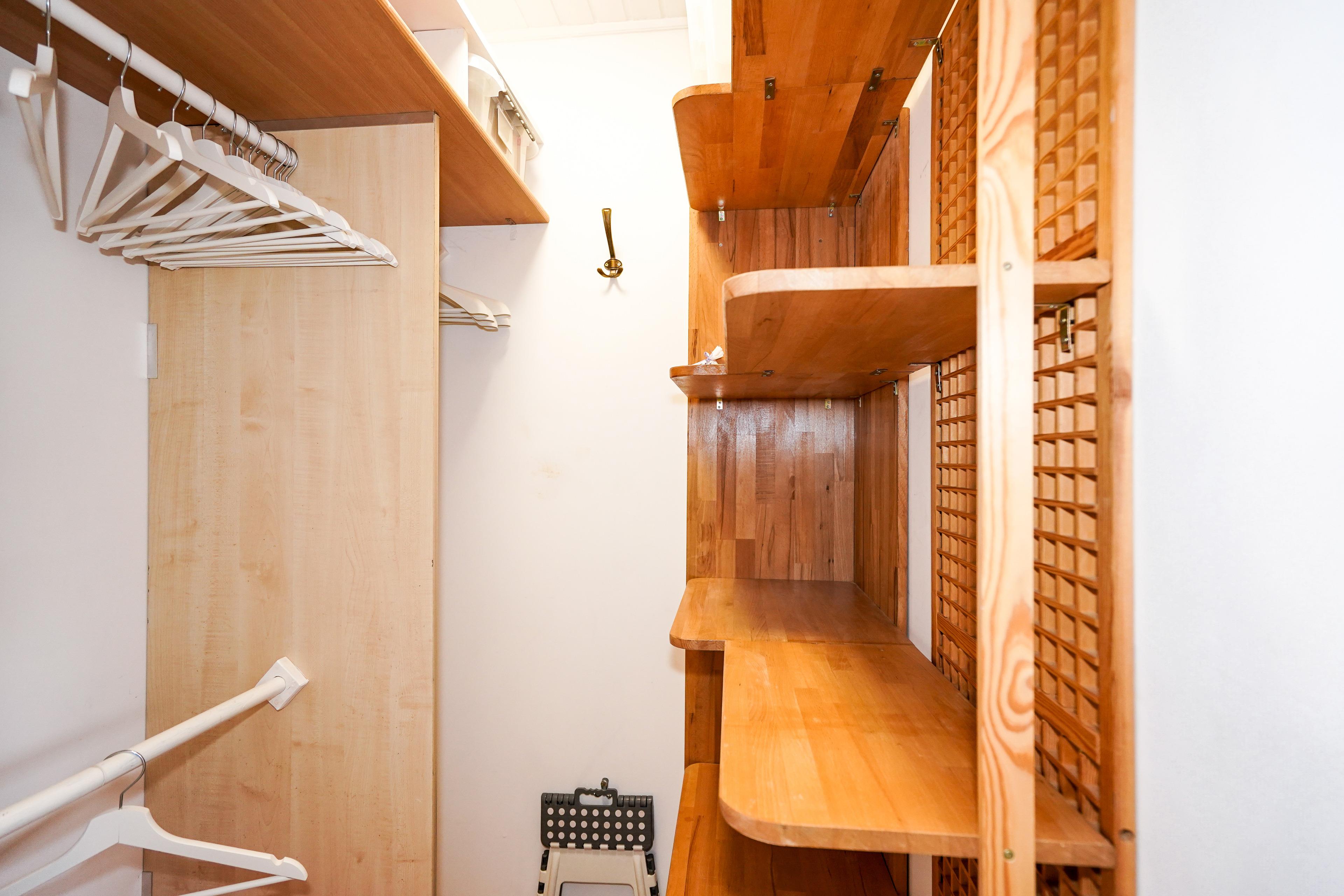 Das zweite Schlafzimmer ist mit einem praktischen Tandembett (2x90x200cm) ausgestattet, ideal für Freunde oder Familienmitglieder. Hier finden Sie ebenfalls einen Kleiderschrank, einen Fernseher und einen kleinen Fensteraustritt, der eine angenehme Atmosphäre schafft. Auch dieses Zimmer verfügt über Verdunkelungsmöglichkeiten.