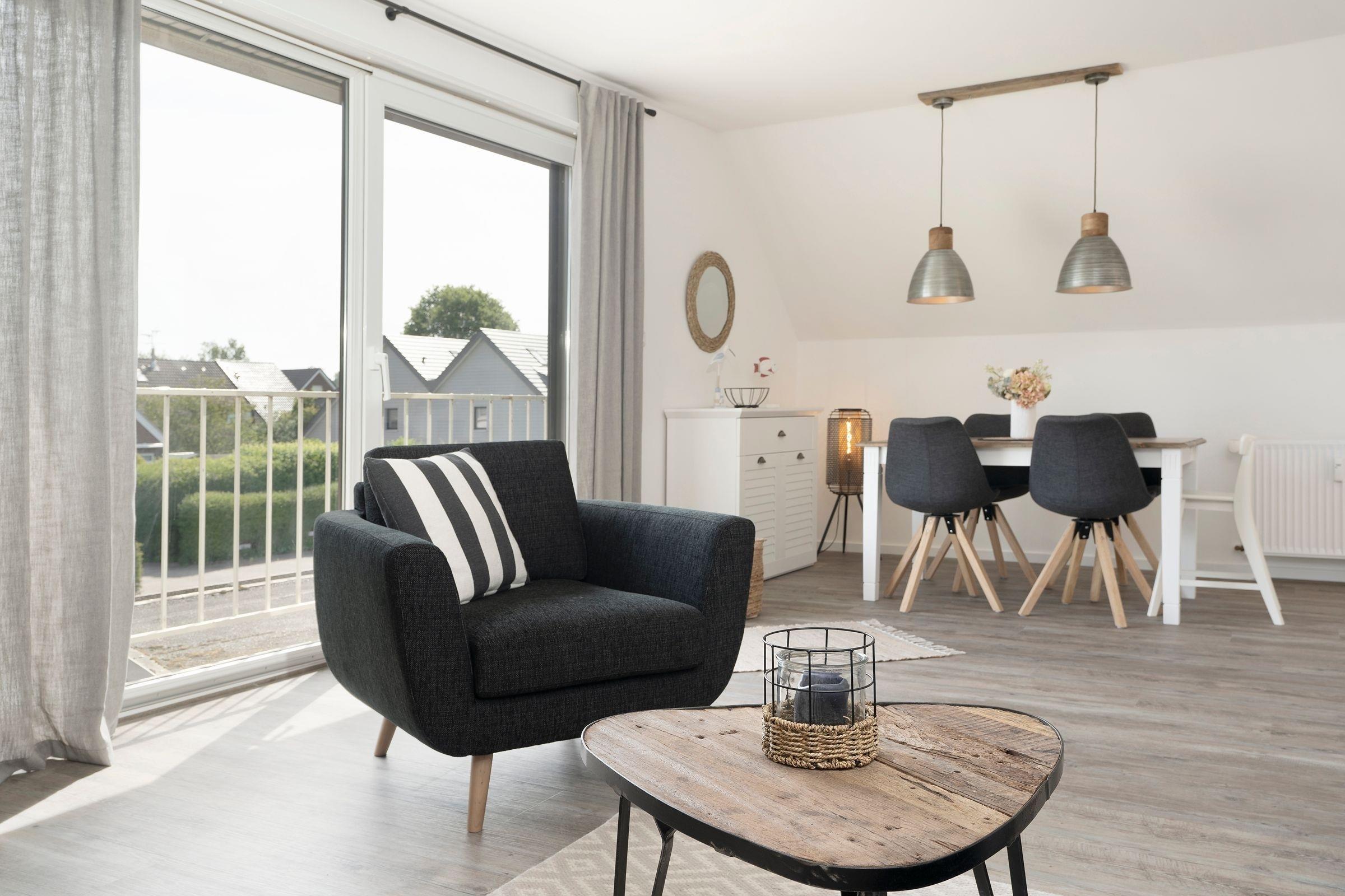 Kinderfreundliche 3-Zimmer-Ferienwohnung im 1. Stock mit 2 Schlafzimmern, Terrasse und Gemeinschaftsgarten in bester Lage von Grömitz. Auf ca. 60 m² Wohnfläche können sich bis zu 4 Personen wunderbar erholen.
