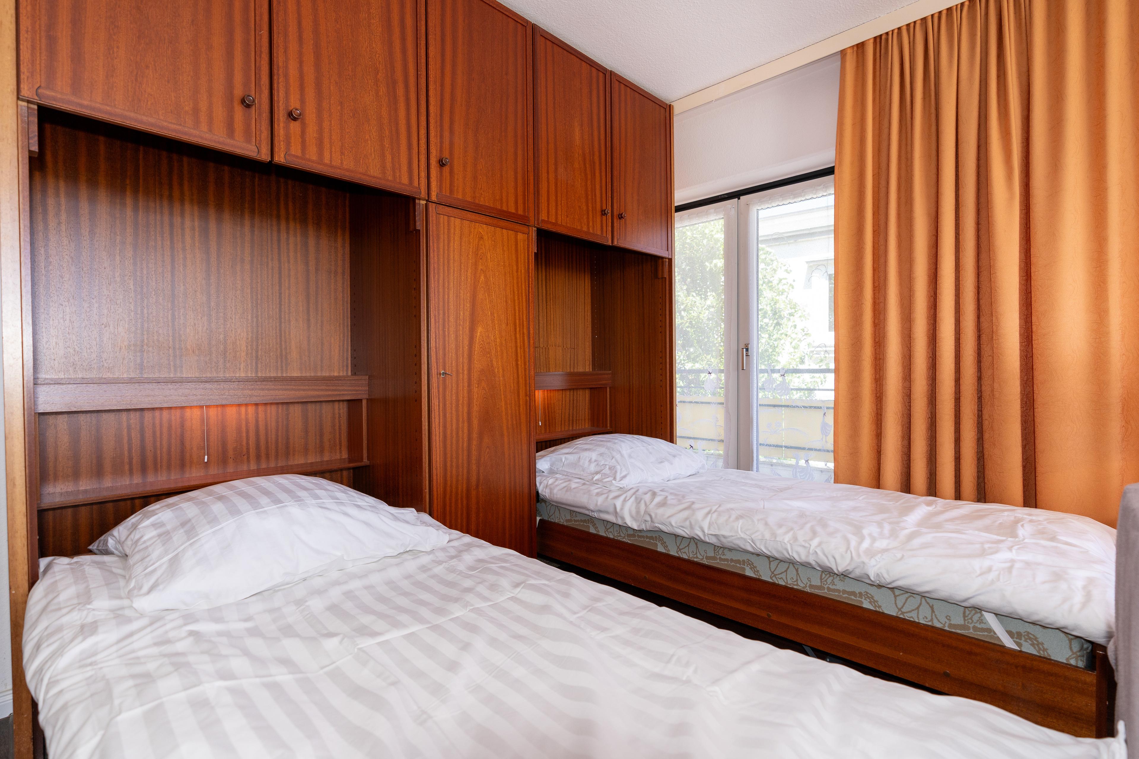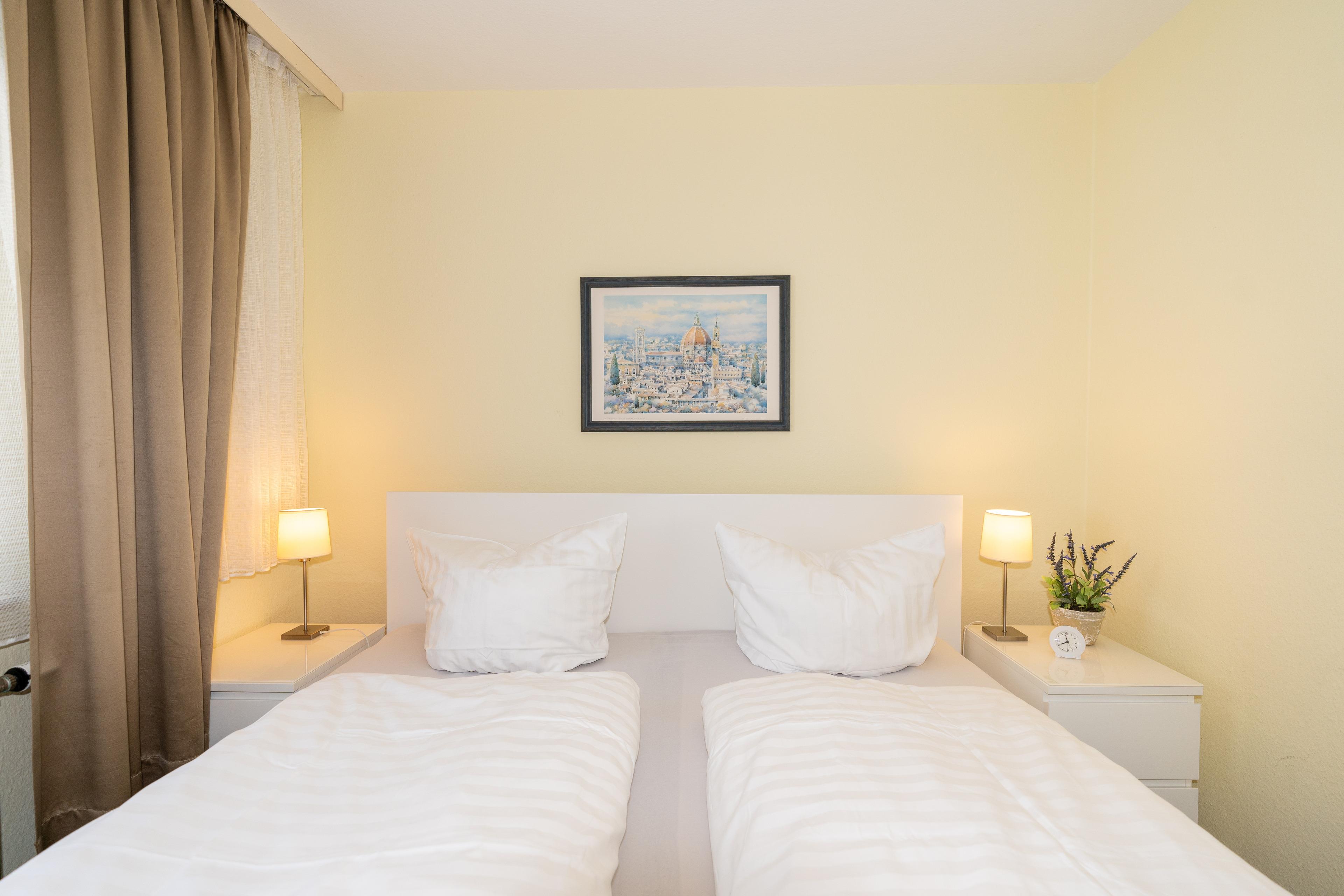 Für erholsame Nächte sorgt das separate Schlafzimmer, das mit einem gemütlichen Doppelbett (2 x 90 x 200 cm) und zwei Nachttischen ausgestattet ist. Ihre Urlaubsutensilien finden in einem geräumigen Kleiderschrank im Flur Platz.