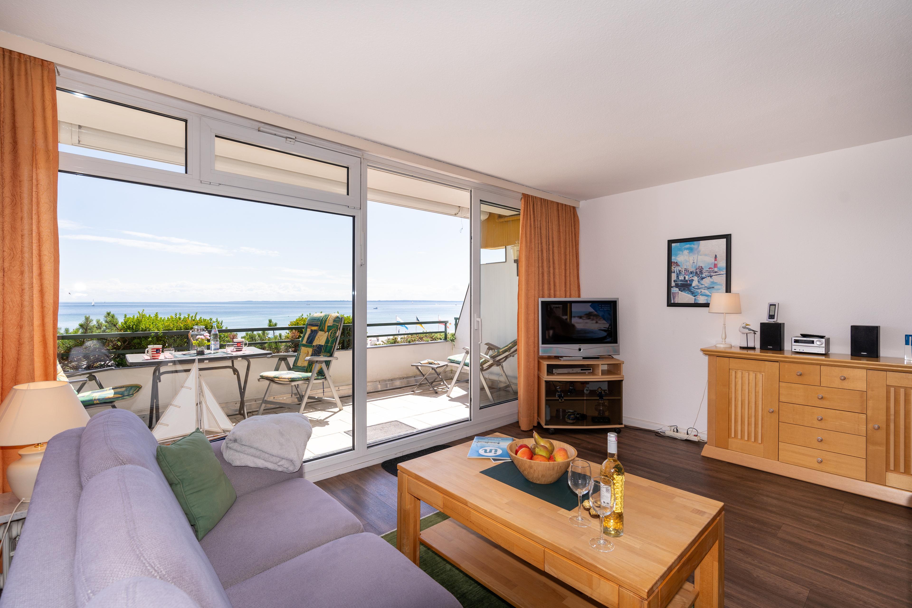 Genießen Sie Meerblick und Komfort in dieser 65m² großen Ferienwohnung direkt am Strand von Grömitz.