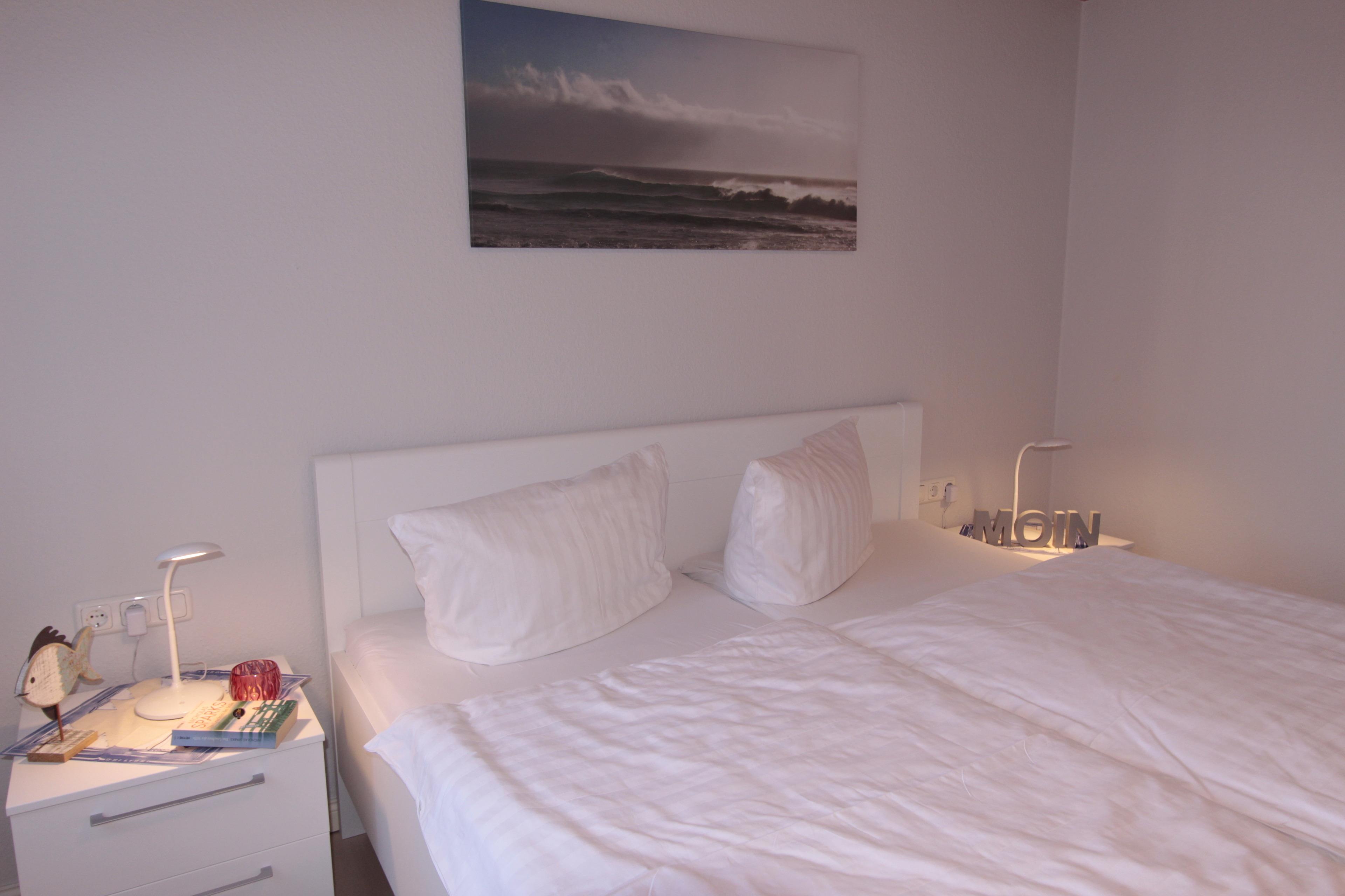 Die Wohnung hat drei Schlafzimmer, hiervon zwei Einzelzimmer und ein Doppelzimmer. Die Räume sind mit ausreichend Stauraum ausgestattet (Kommoden, Kleiderschrank).