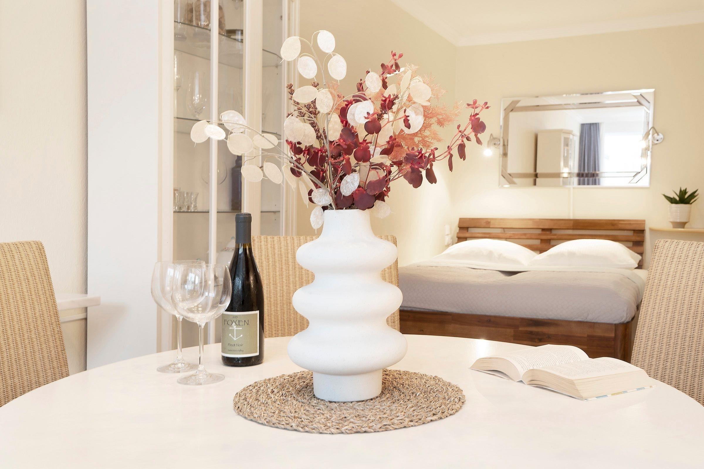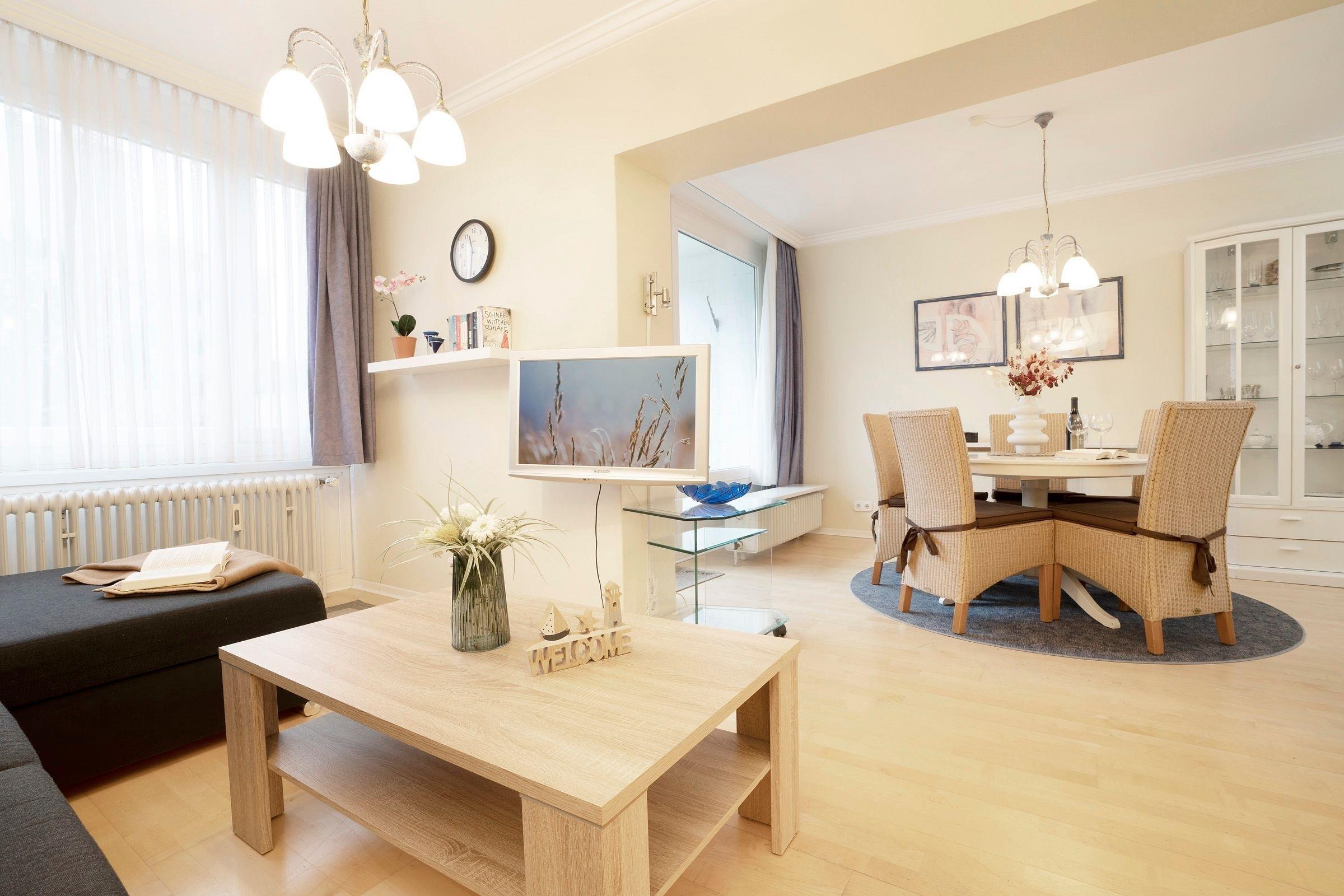 Helle Ferienwohnung mit Balkon, Sauna und Meerblick in Grömitz, nur wenige Schritte von der Ostsee entfernt.