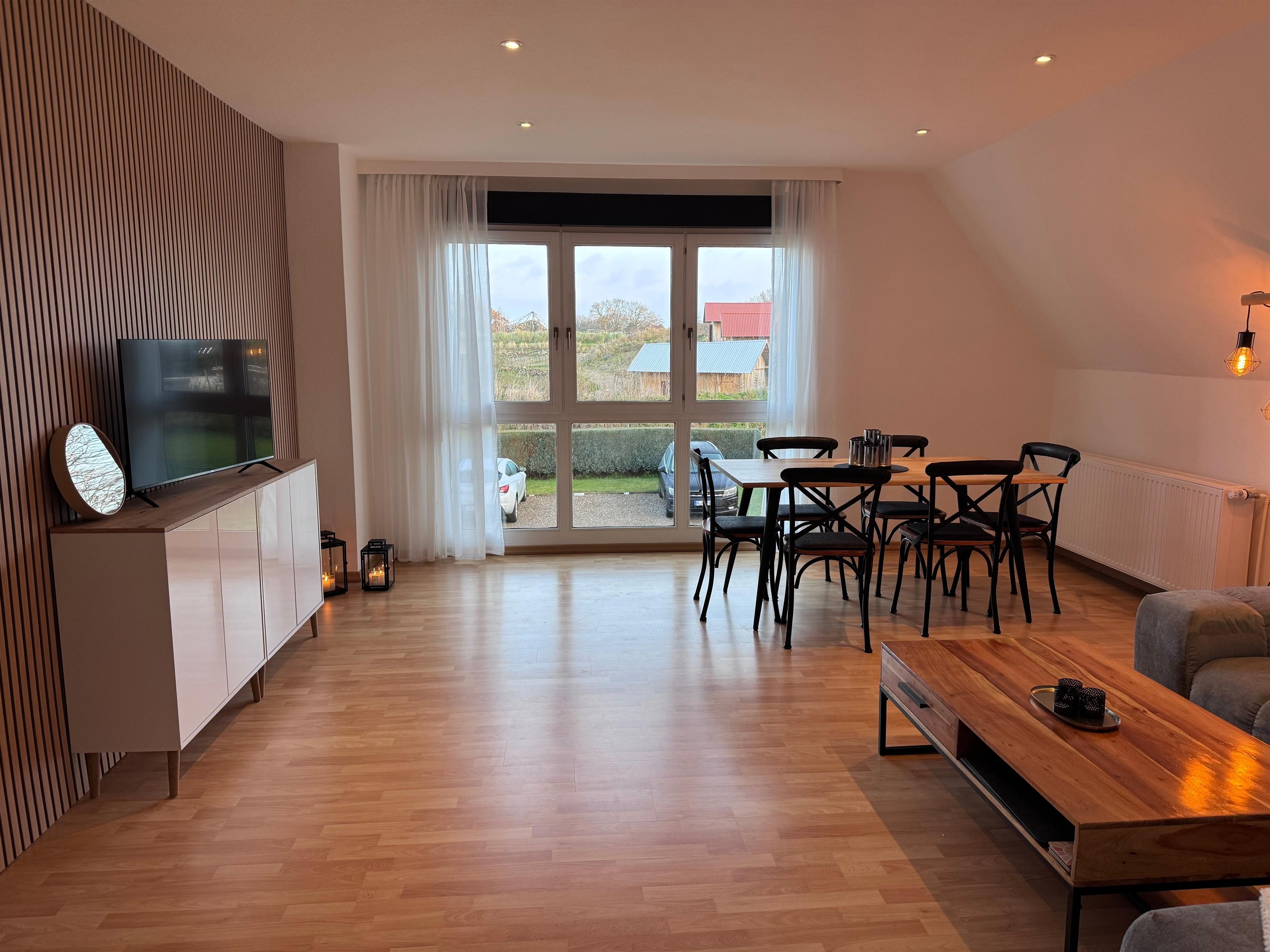 Genießen Sie Ihren Urlaub in einer modernen, etwa 71 m² großen 2,5-Zimmer-Wohnung in der ersten Etage eines kleinen Mehrfamilienhauses, die Ende 2025 komplett renoviert wurde.