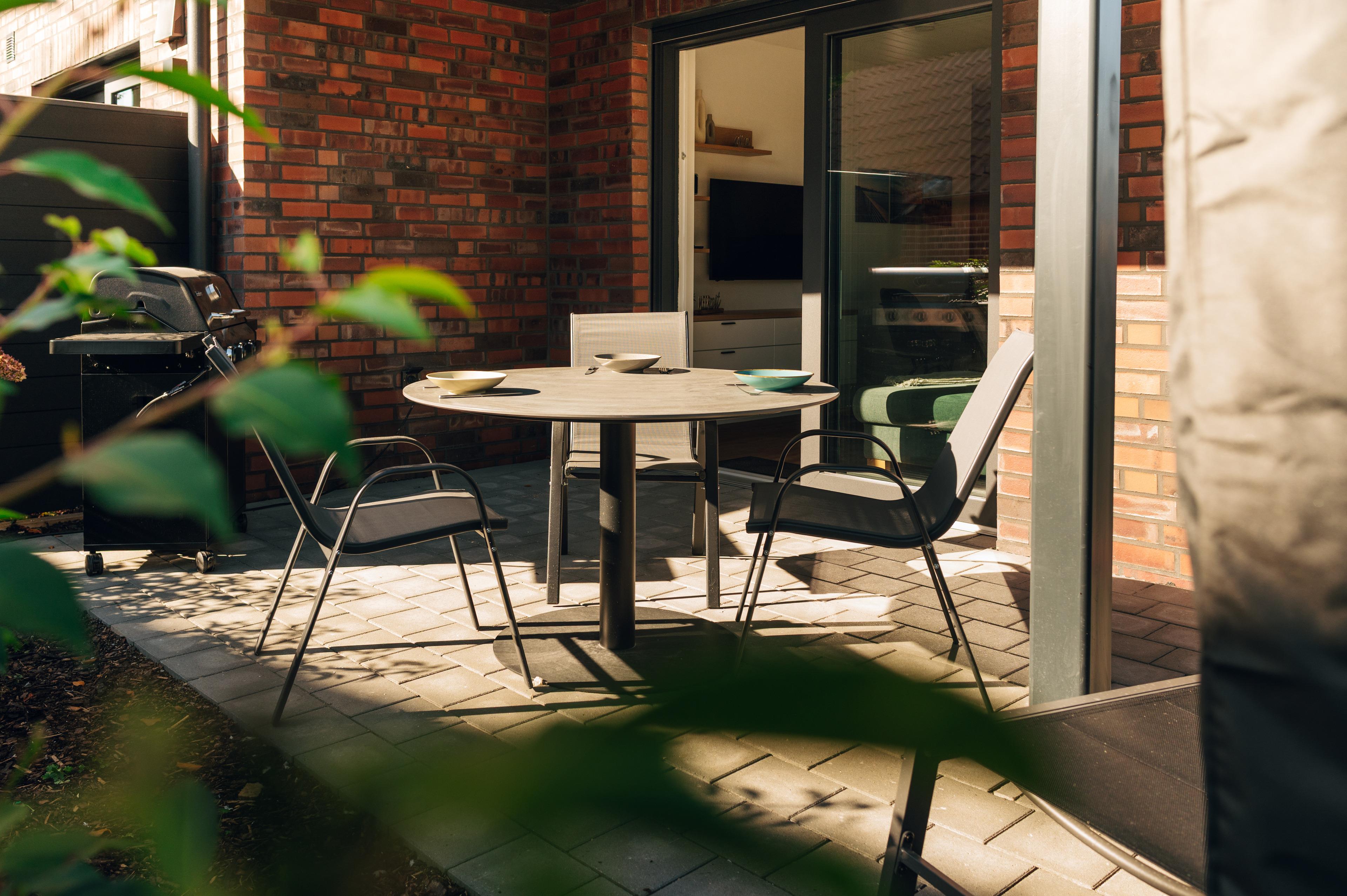 Nach einem Tag am Strand, nur etwa 500 Meter entfernt, lässt du den Abend bei einem Glas Wein auf der Terrasse ausklingen und spürst: Hier darfst du einfach sein.